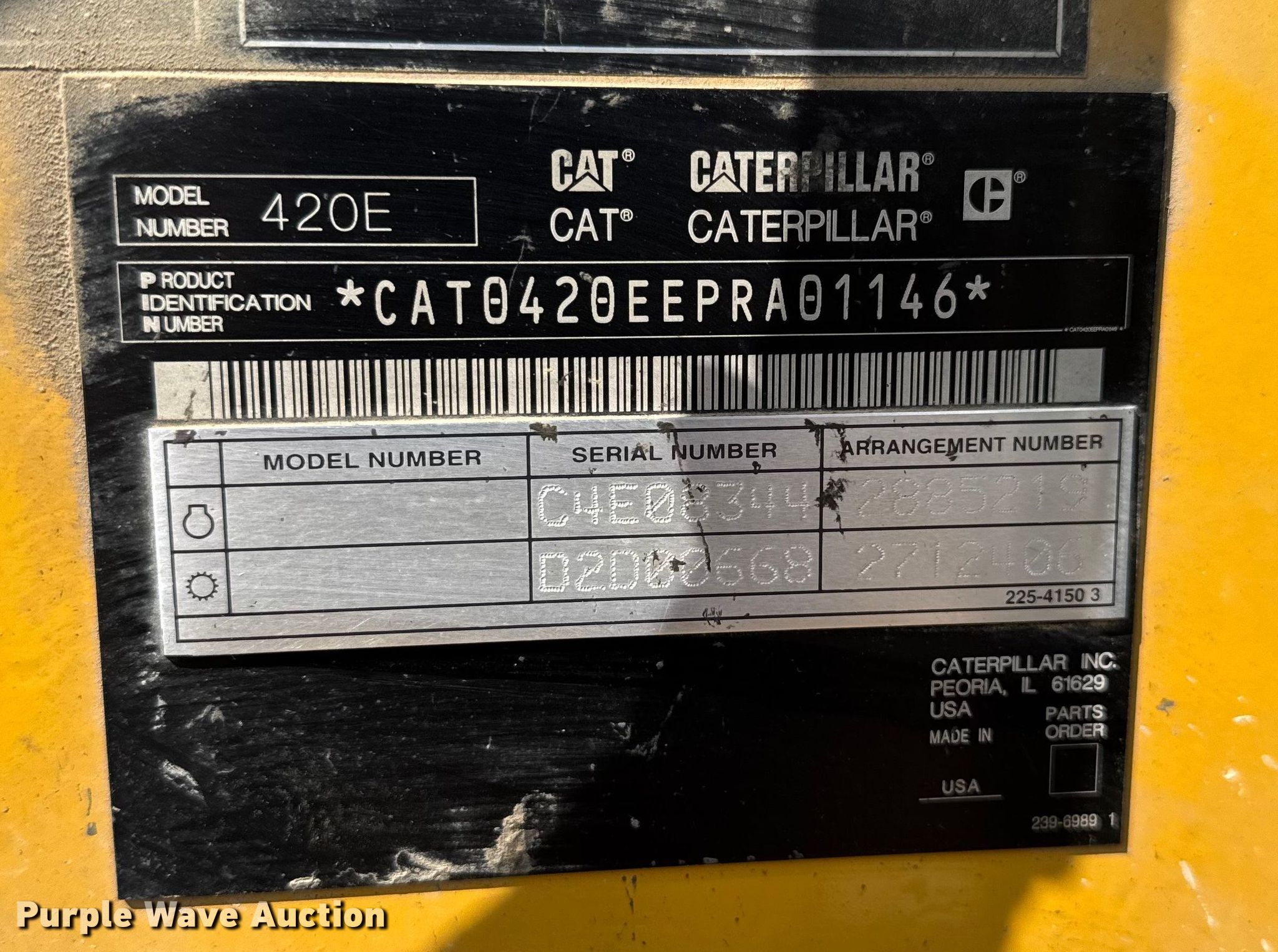 Purple Wave is selling a used Tractor Loader Backhoe in Kansas. This item is a 2009 Caterpillar 420E backhoe with the following: Hours: 1,902 on meter, Serial: CAT0420EEPRA01146