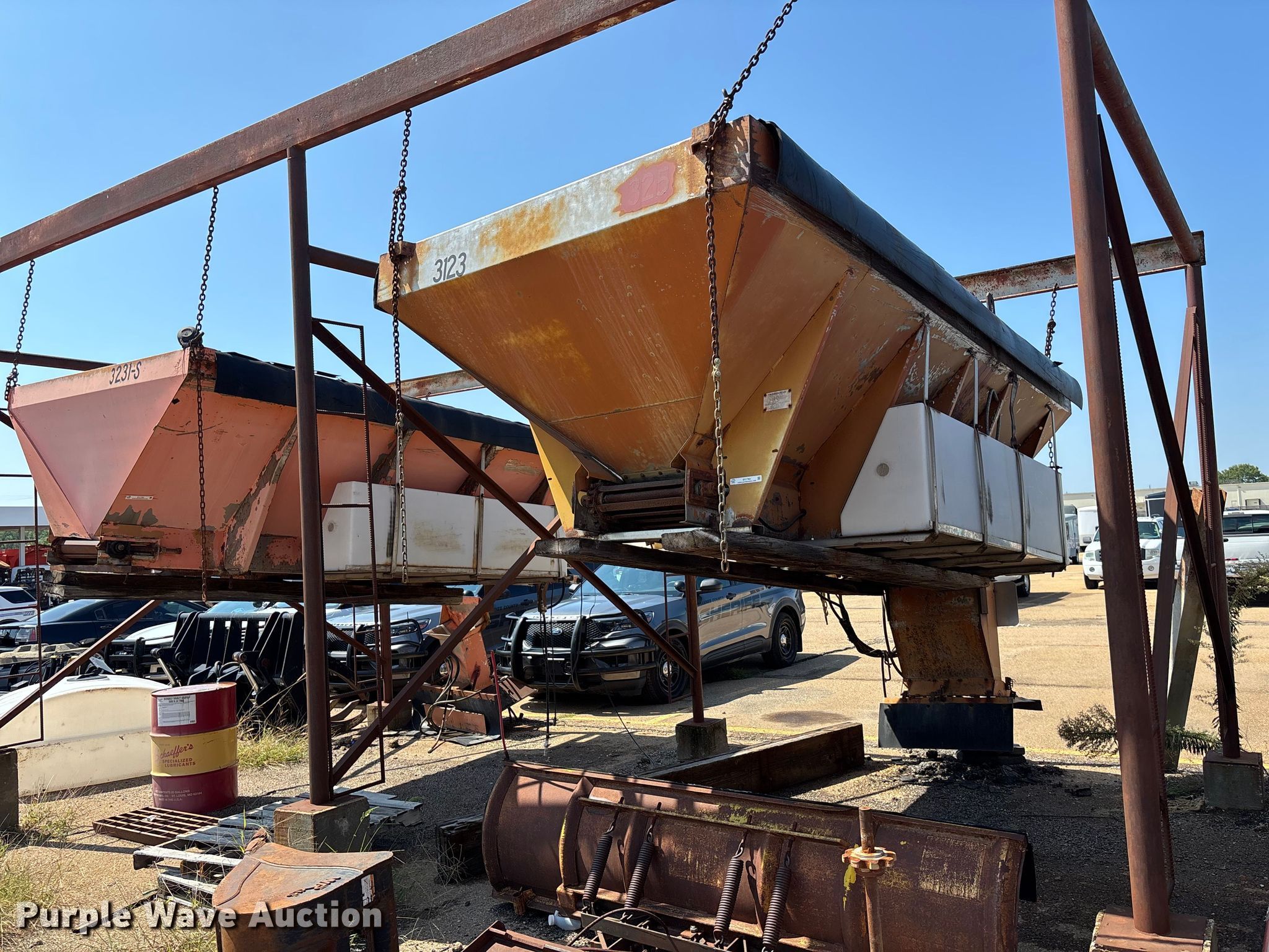 Purple Wave is selling a used Truck Part and Attach. in Kansas. This item is a Henderson Chief FSH 13/11409 spreader with the following: Dimensions: 12' 6" L x 78" W, Conveyor: 24", Brine Tanks, Serial: 17695, Unknown operating condition