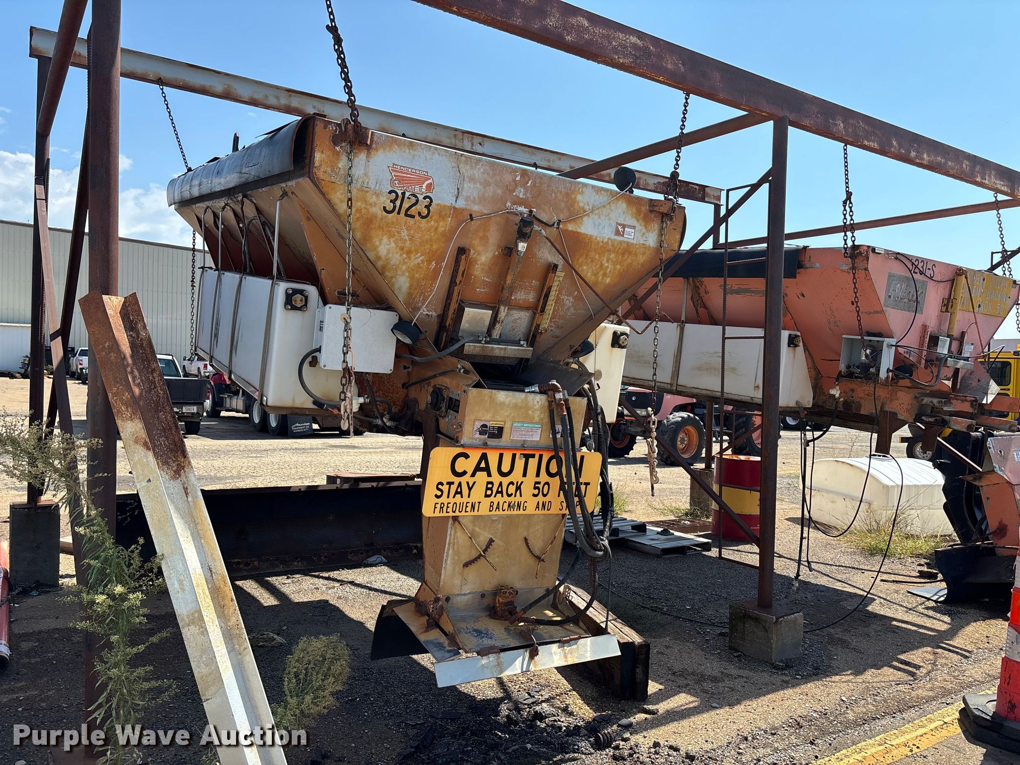 Henderson Chief FSH 13/11409 spreader. Dimensions: 12' 6" L x 78" W, Conveyor: 24", Brine Tanks, Serial: 17695, Unknown operating condition. Transfer of ownership documentation will be a bill of sale. Shawnee County, KS. Topeka, KS 66618