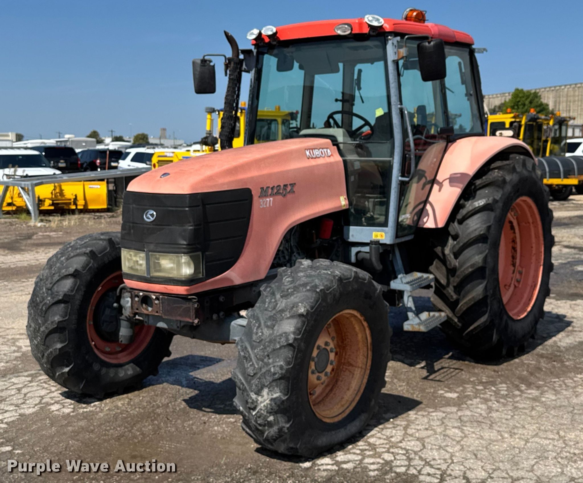 Purple Wave is selling a used Tractor in Kansas. This item is a Kubota M125X MFWD tractor with the following: Hours: 4,714 on meter, Serial: 53930