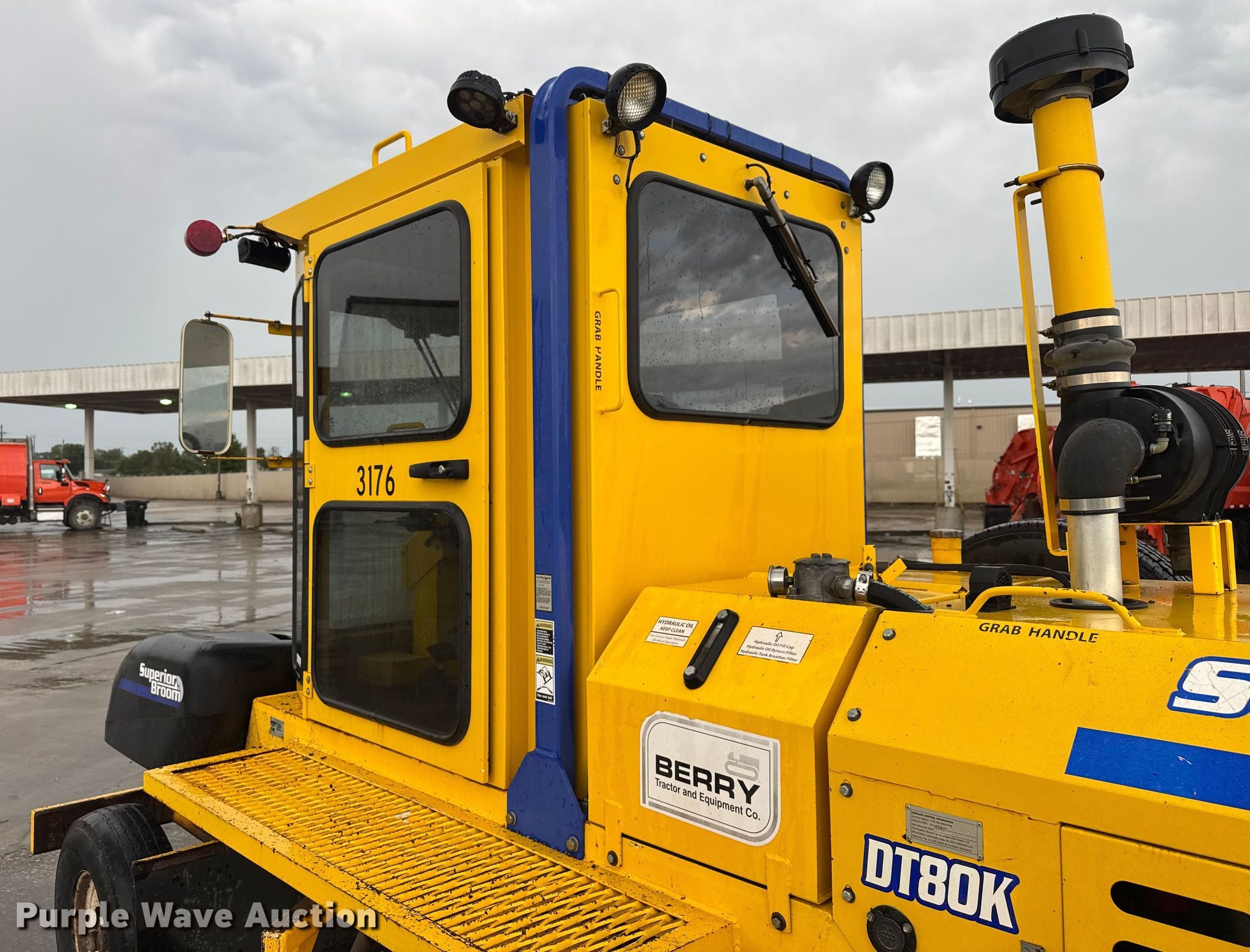 Superior Broom DT80K broom. Hours: 1,571 on meter, Serial: 816401. Engine Kubota V3600-T, Cylinders: 4, Fuel type: Diesel. Transmission Hydrostatic. Chassis Suspension: Spring, Brakes: Hydraulic. Operators station Enclosed cab, AC, Heat. Features Broom Width: 100", Water spray system. Tires Size: 235/85R16. Shawnee County, KS. Topeka, KS 66618