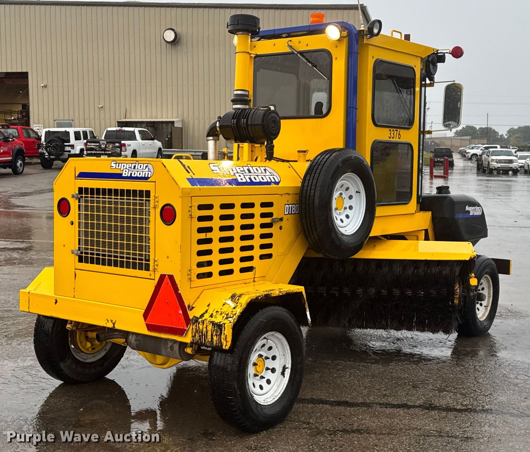 Superior Broom DT80K broom. Hours: 1,077 on meter, Serial: 816398. Engine Kubota V3600-T, Cylinders: 4, Fuel type: Diesel. Transmission Hydrostatic. Chassis Suspension: Spring, Brakes: Hydraulic. Operators station Enclosed cab, AC, Heat. Features Broom Width: 100", Water spray system. Tires Size: 235/85R16. Shawnee County, KS. Topeka, KS 66618