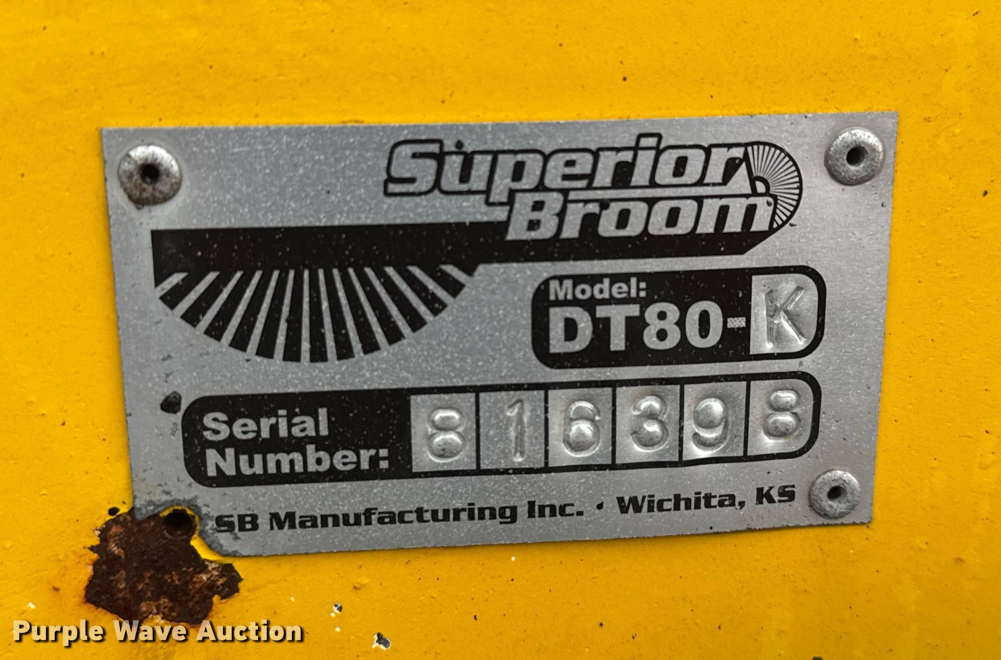 Purple Wave is selling a used Broom in Kansas. This item is a Superior Broom DT80K broom with the following: Hours: 1,077 on meter, Serial: 816398