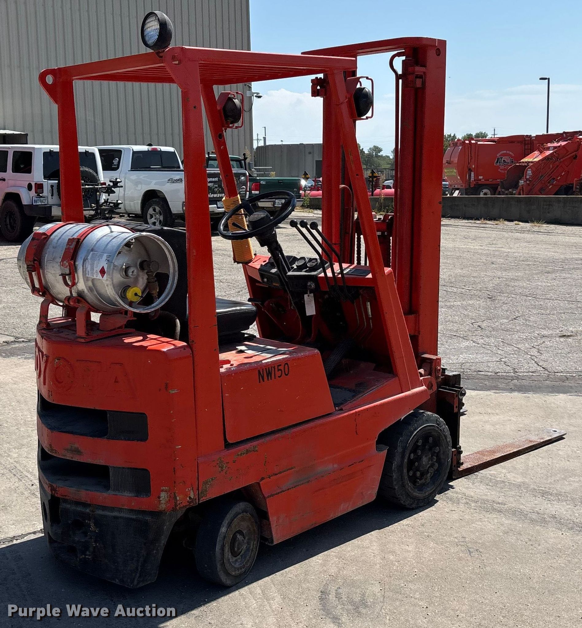 Take a look at this used Toyota forklift being sold on October 14th, 2025 in the SOLD! October 14 Government Auction made by Toyota. Take a look at all of the item information below or take a look at similar auctions for Cushion Tire or Pneumatic Forklift.