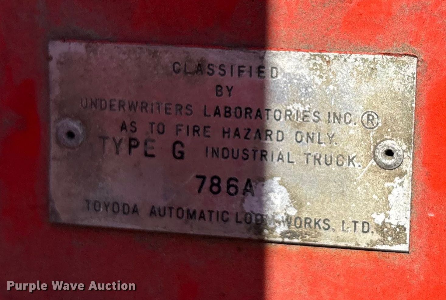 Purple Wave is selling a used Cushion Tire or Pneumatic Forklift in Kansas. This item is a Toyota forklift with the following: Hours: 7,090 on meter, Serial: 786A