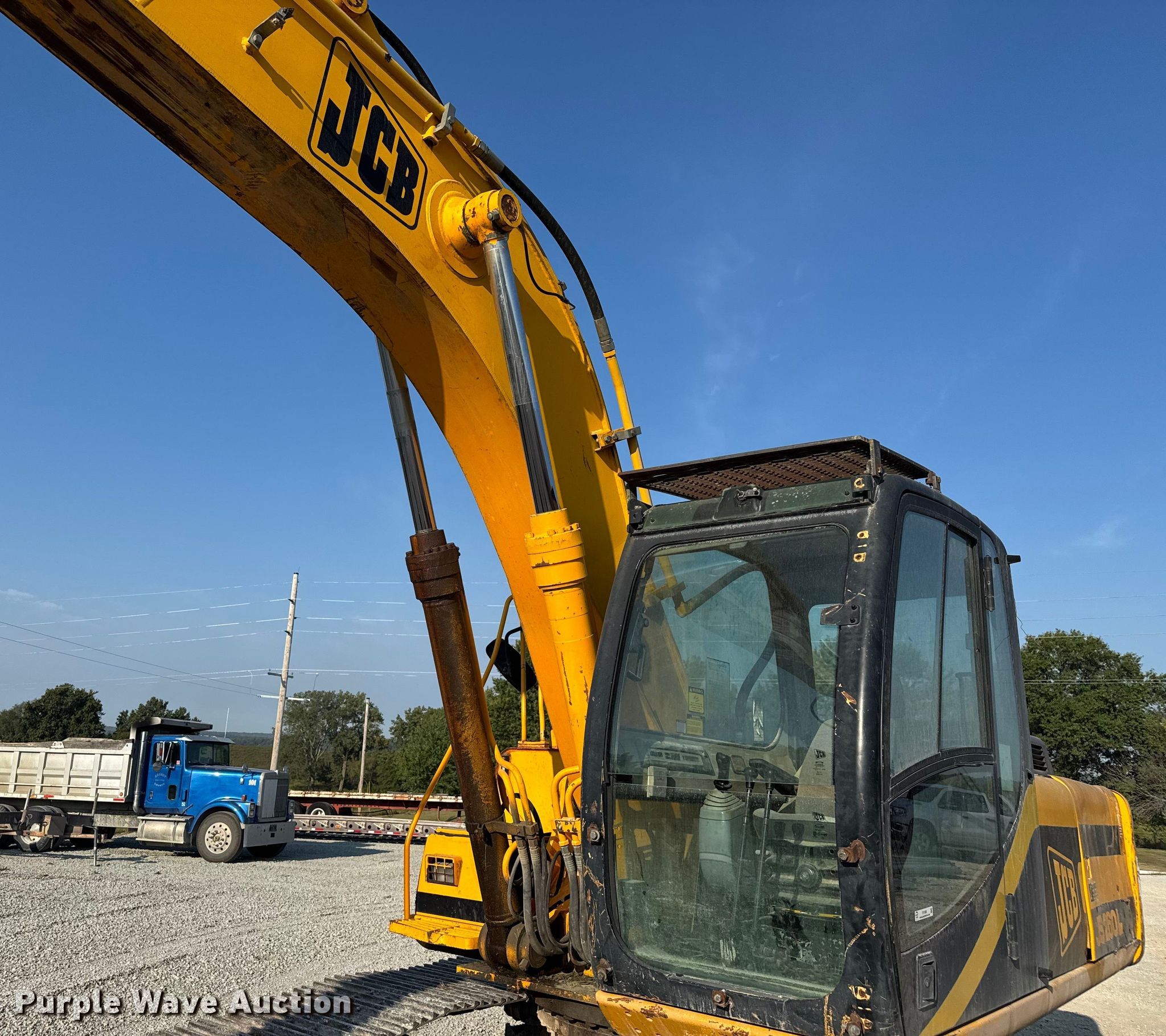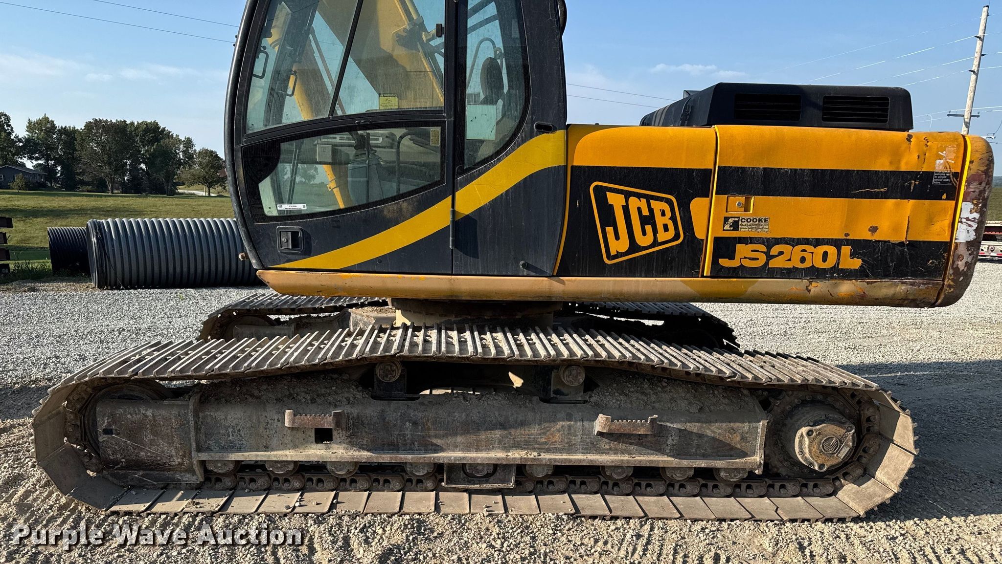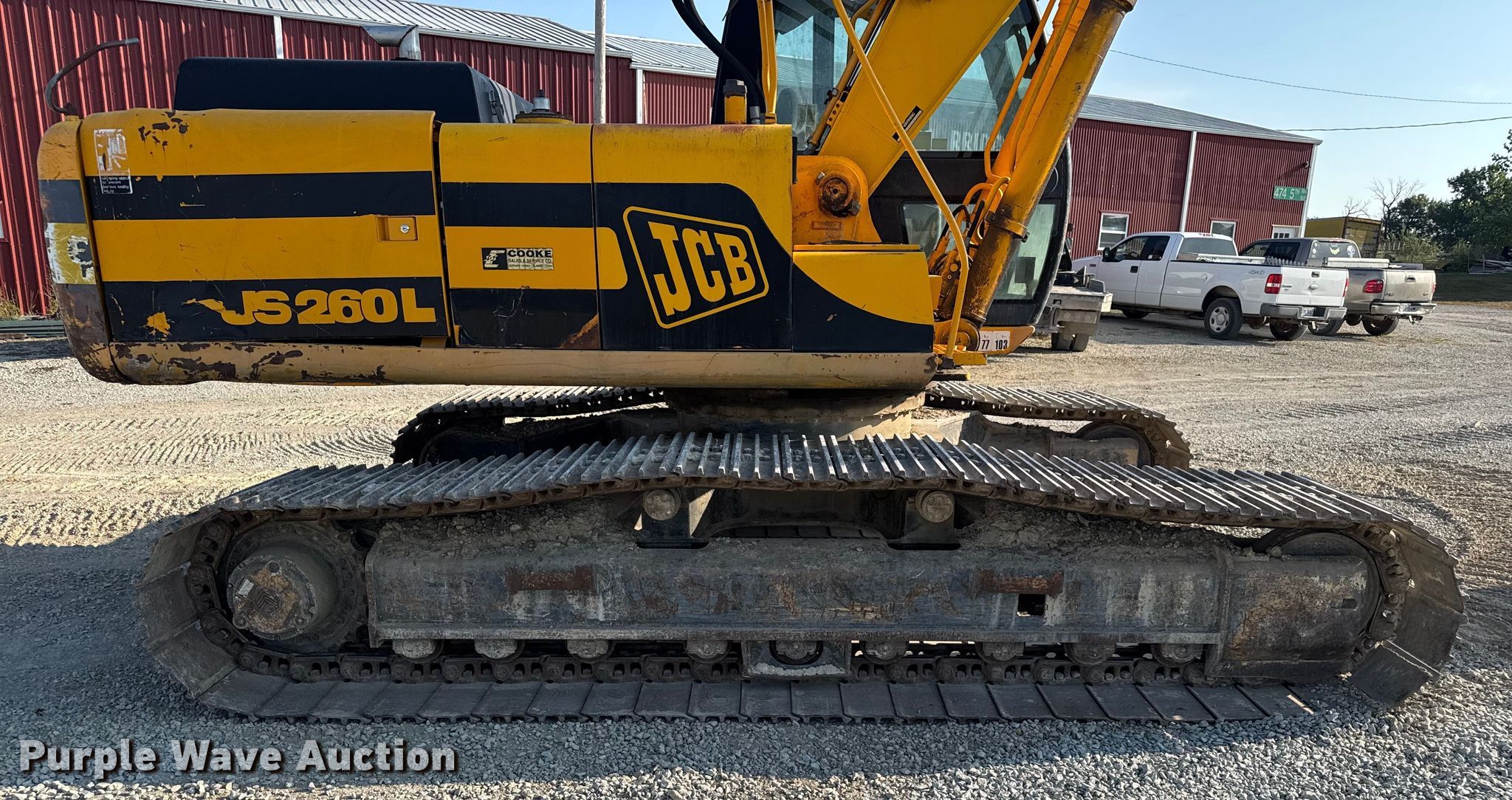 1998 JCB JS260L excavator. Hours: 4,854 on meter, Serial: 0708781. Engine Isuzu, Cylinders: 6, Fuel type: Diesel. Transmission Hydrostatic. Operators station Enclosed cab, AC, Heat. Features Auxiliary hydraulics, Boom Standard, Stick Stick length: 10', Quick coupler: Mechanical WR XLS, Bucket Esco, Width: 37", Cutting edge: Weld-on, Teeth: 5. Tracks Width: 31.5", Steel, Grouser pads: Triple. Notes Side door panels damaged, bent, Rear weight dented. Grundy County, MO. Trenton, MO 64683