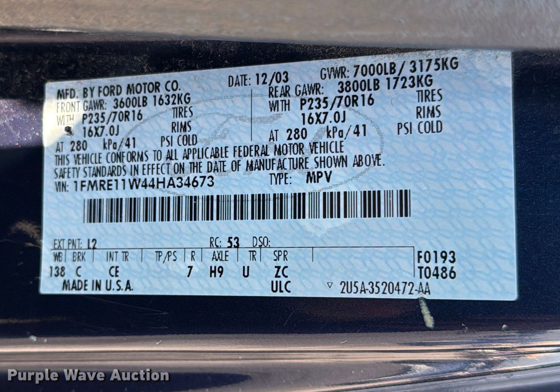 Purple Wave is selling a used Passenger Vehicle in Kansas. This item is a 2004 Ford E150 van with the following: Miles: 180,011 on odometer, VIN: 1FMRE11W44HA34673
