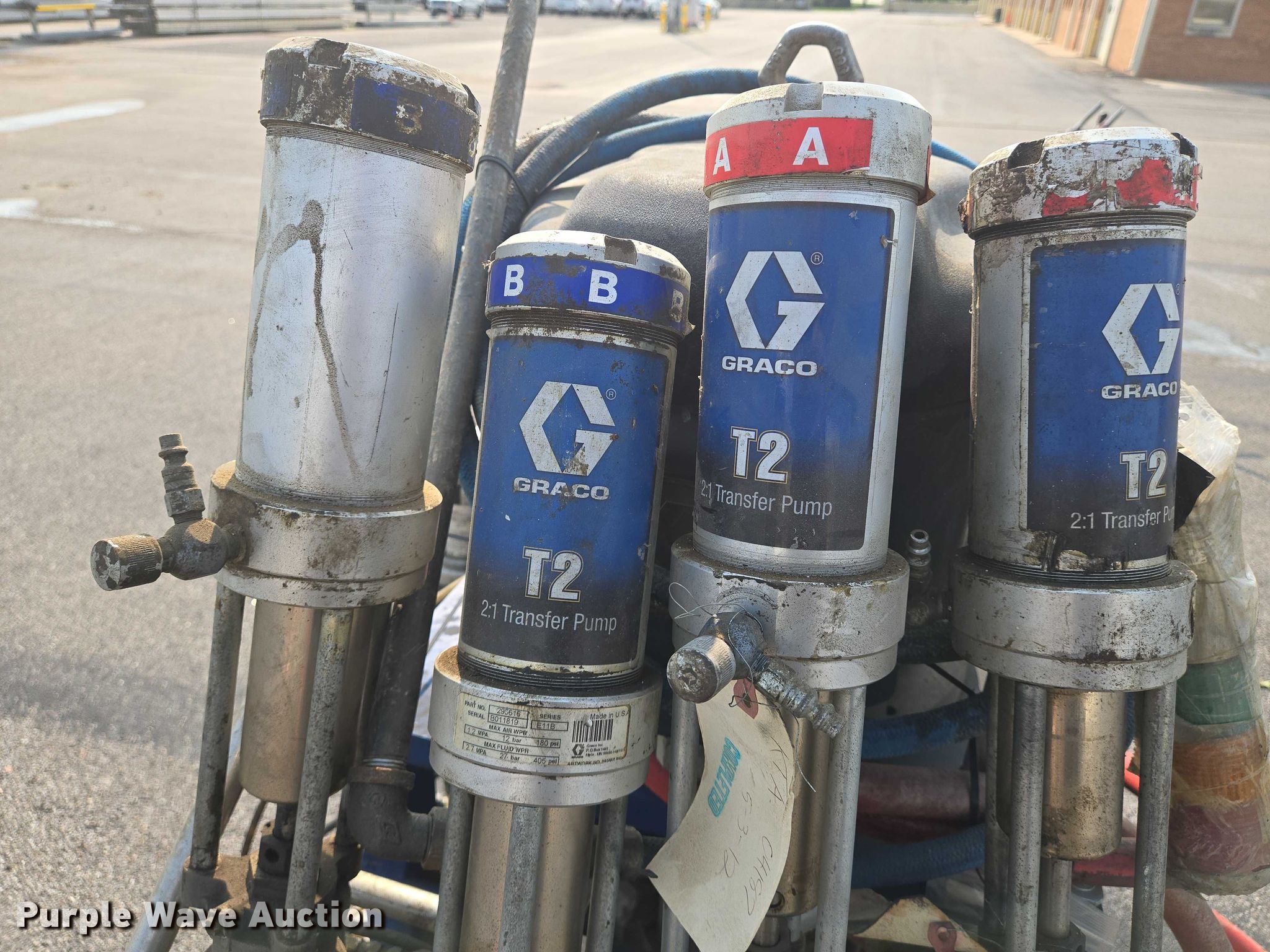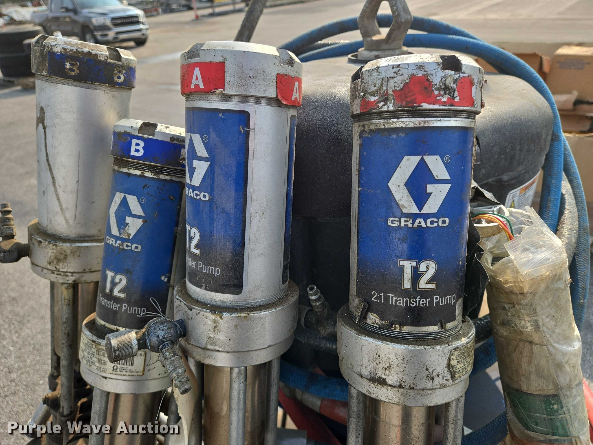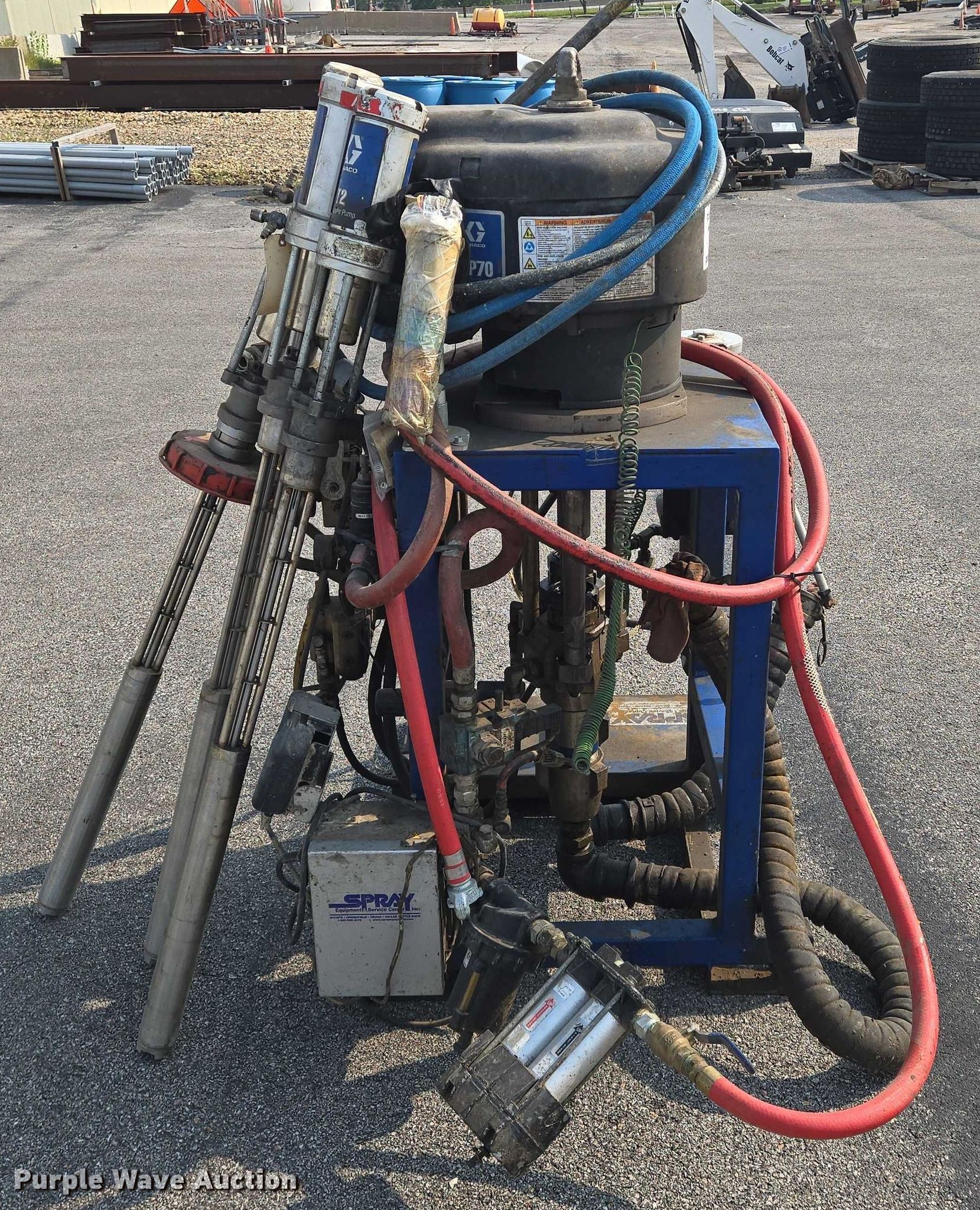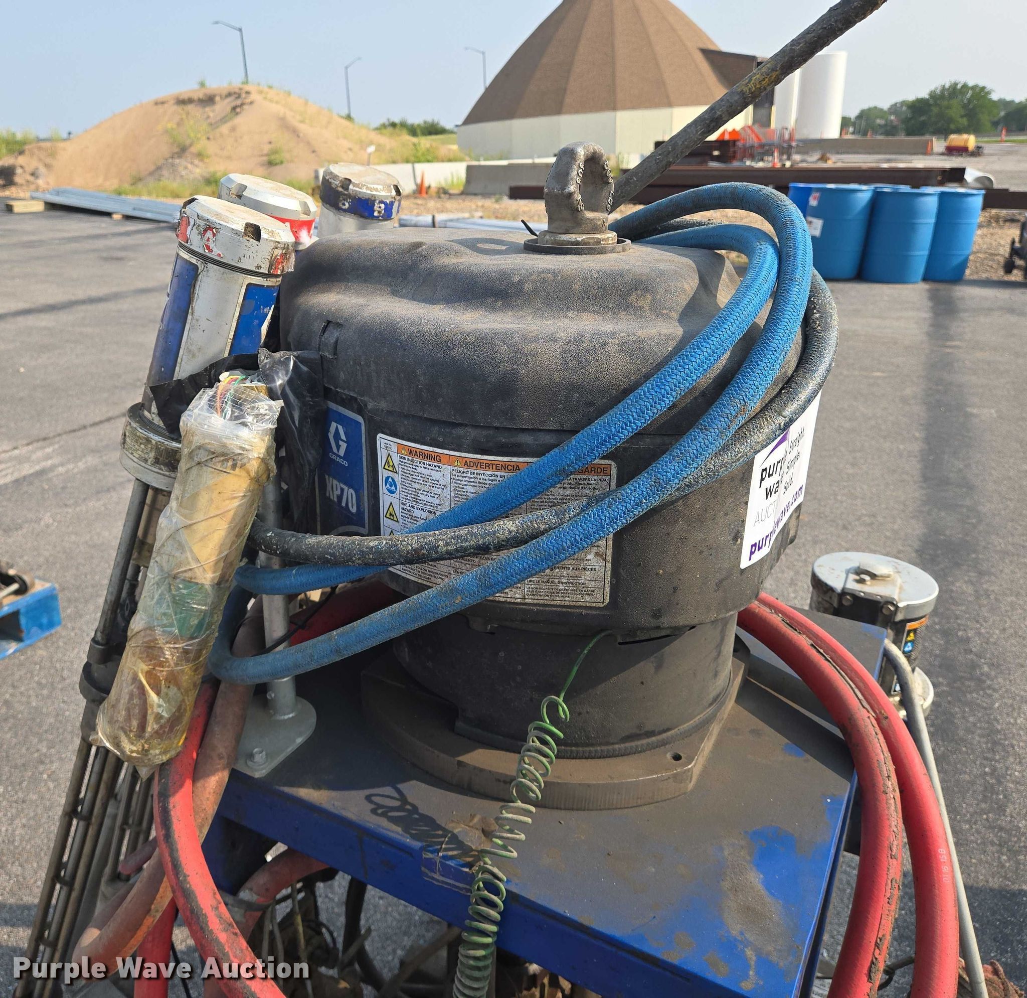 Purple Wave is selling a used Tools in Kansas. This item is a Graco XP70 epoxy sprayer with the following: (4) Graco T2 transfer pumps