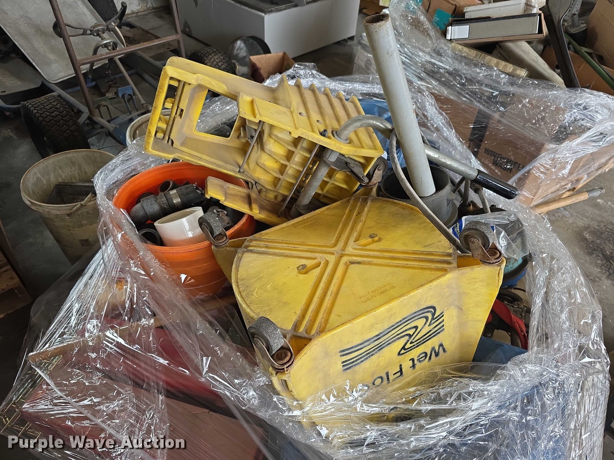 Purple Wave is selling a used Other Industrial or Business in Kansas. This item is a Equipment with the following: Sprayer, Janitorial equipment, Fold down storage crate, Plumbing supplies and more