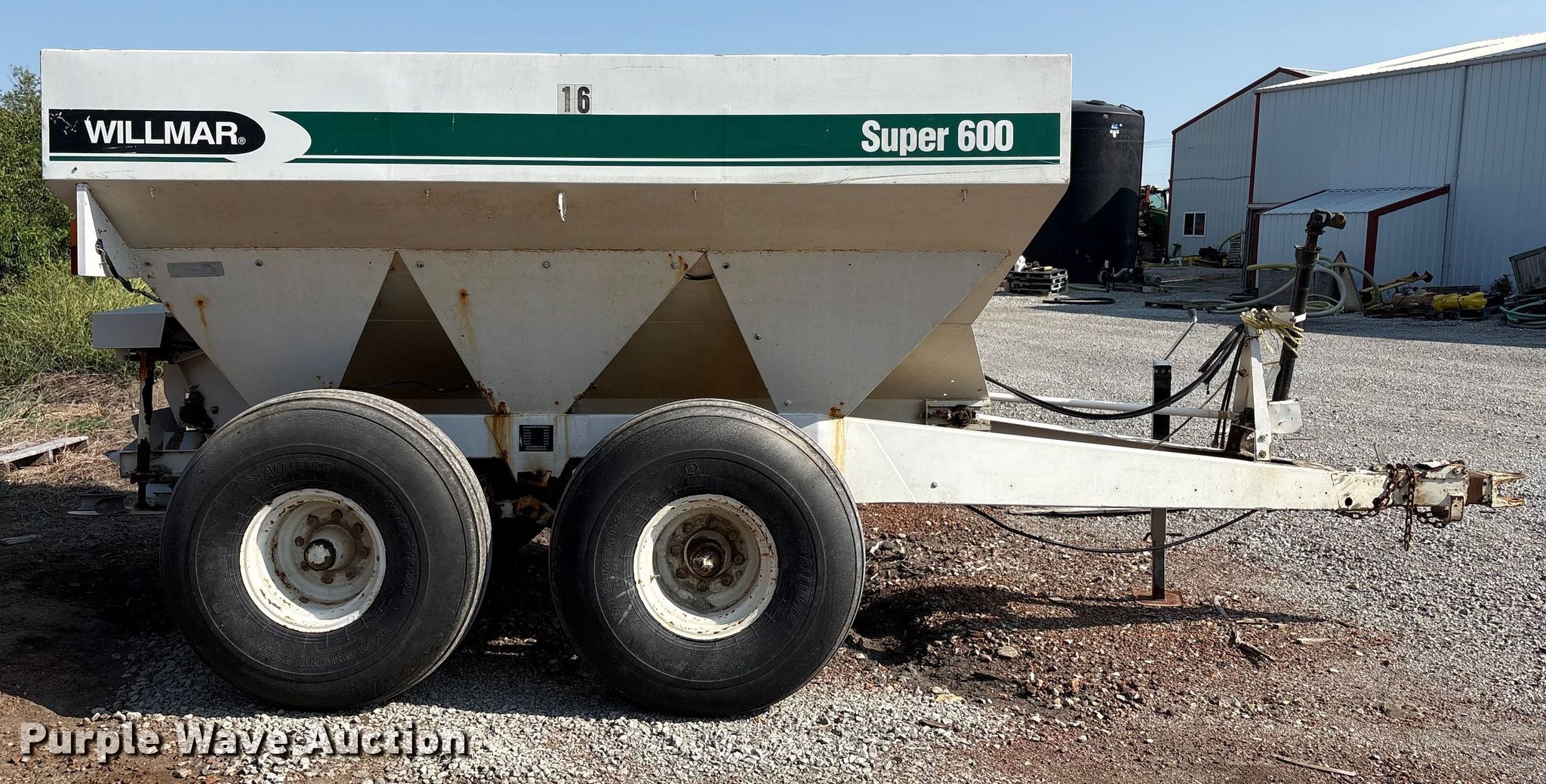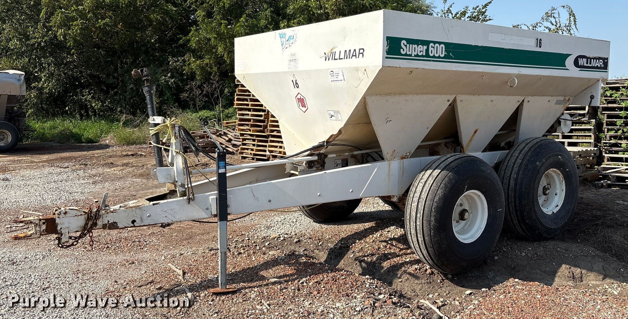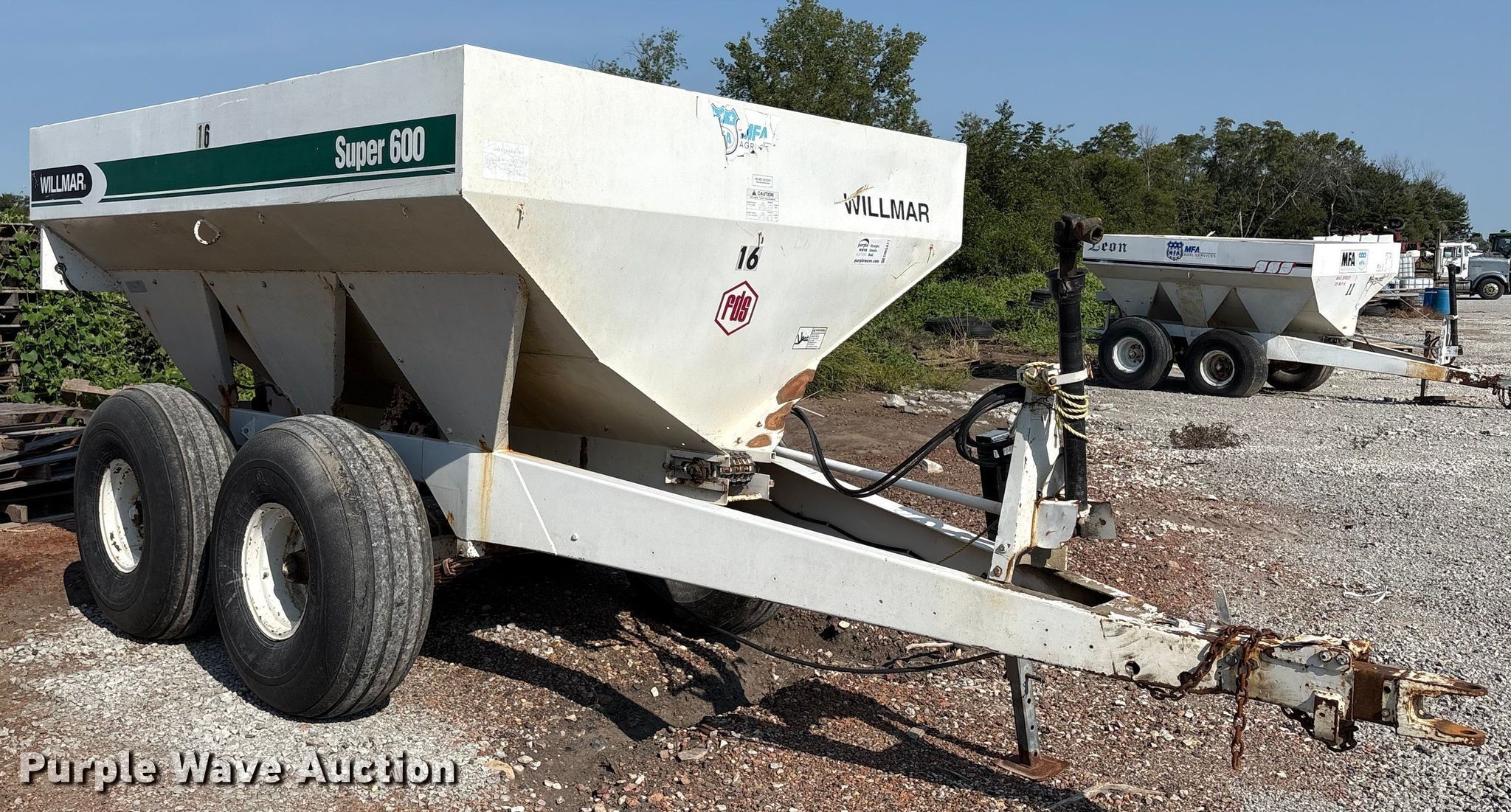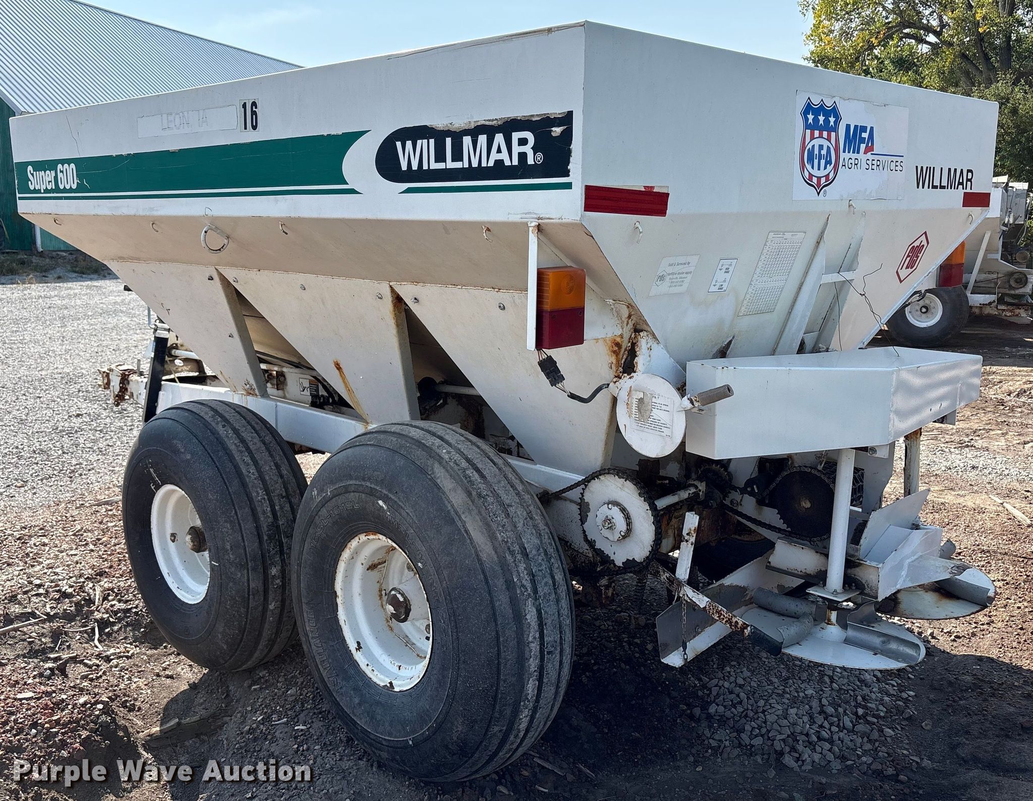Purple Wave is selling a used Applicator Pull Type in Iowa. This item is a Willmar Super 600 spreader with the following: Transport lights, PTO: 540, Dry fertilizer spreader, Dual spinners, Ground driven, Conveyor/chain, Width: 7",
