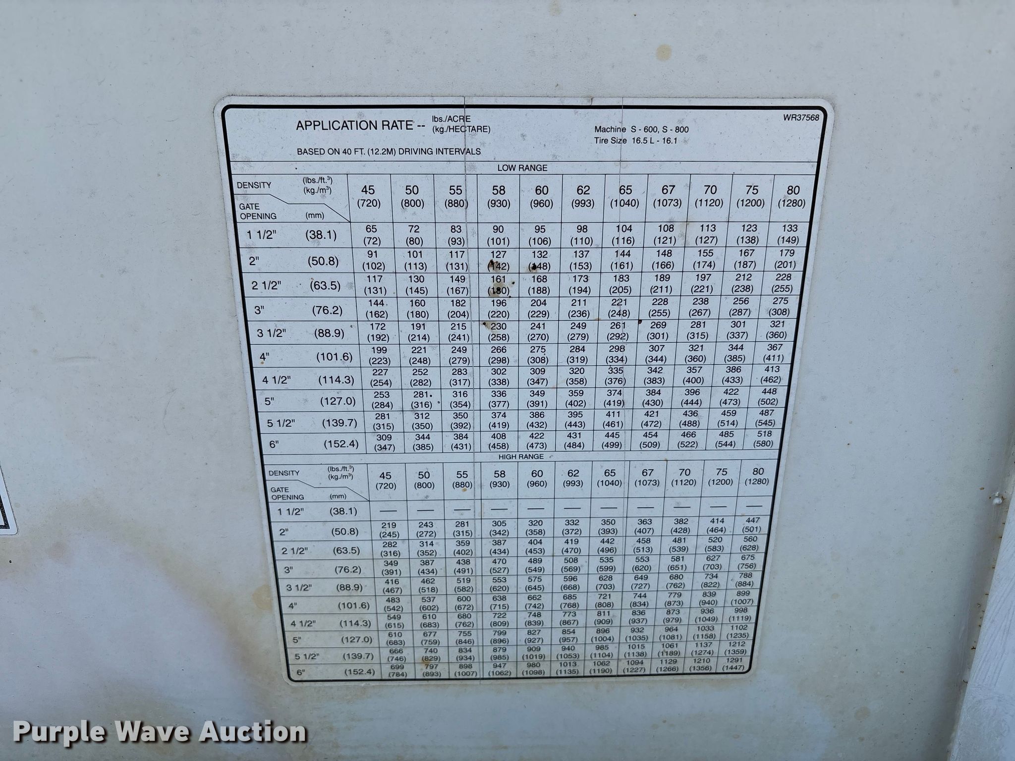 Take a look at this used Willmar Super 600 spreader being sold on October 15th, 2025 in the SOLD! October 15 Ag Equipment Auction made by Willmar. Take a look at all of the item information below or take a look at similar auctions for Applicators.