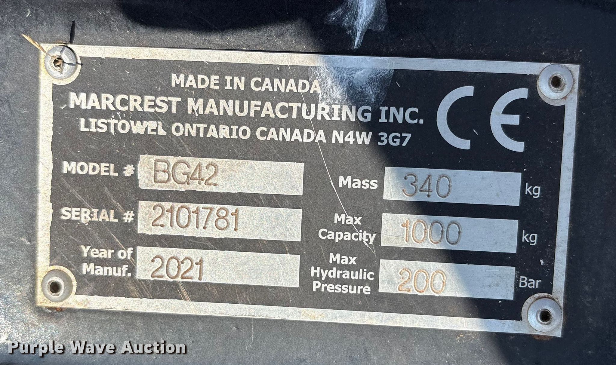 Purple Wave is selling a used Hay Handling in Texas. This item is a 2021 Marcrest BG42 bale accumulator grapple with the following: Serial: 2101781