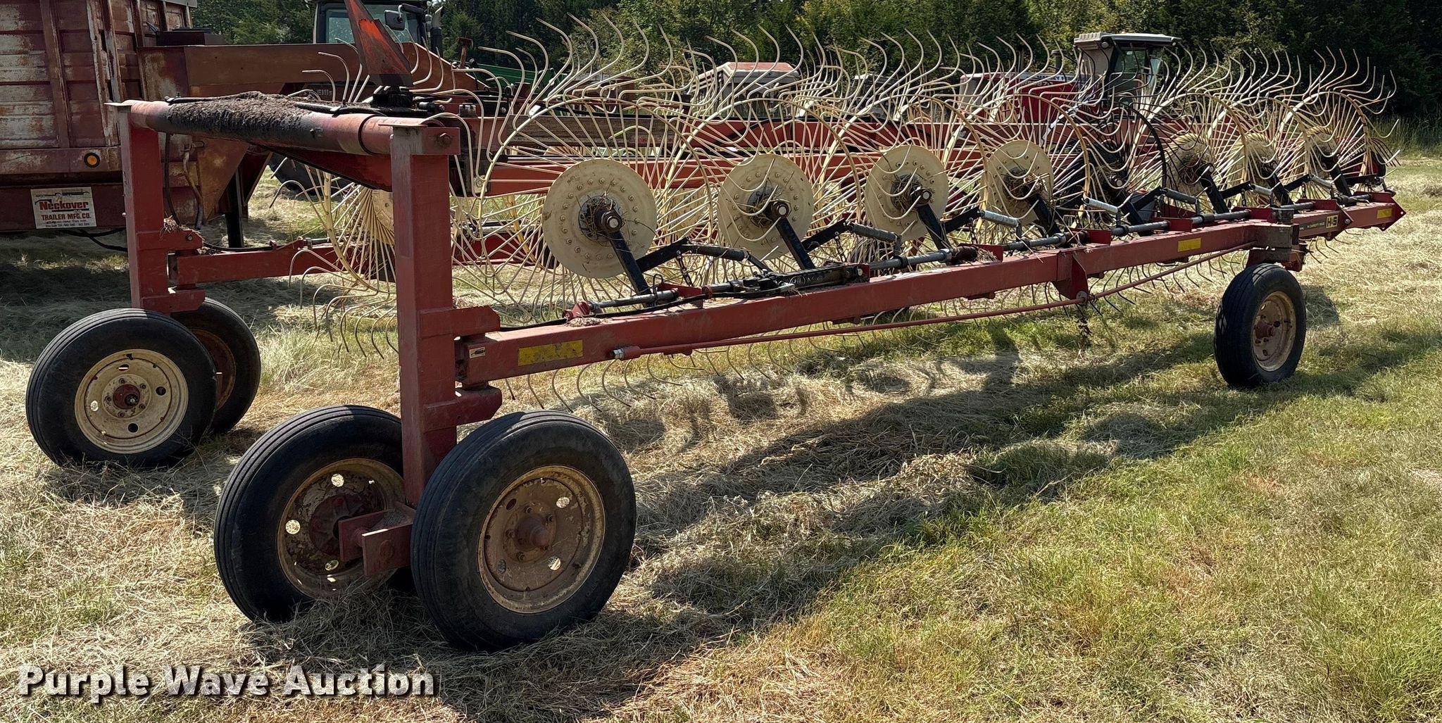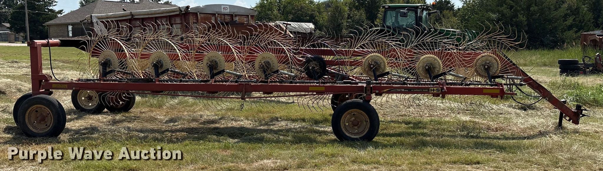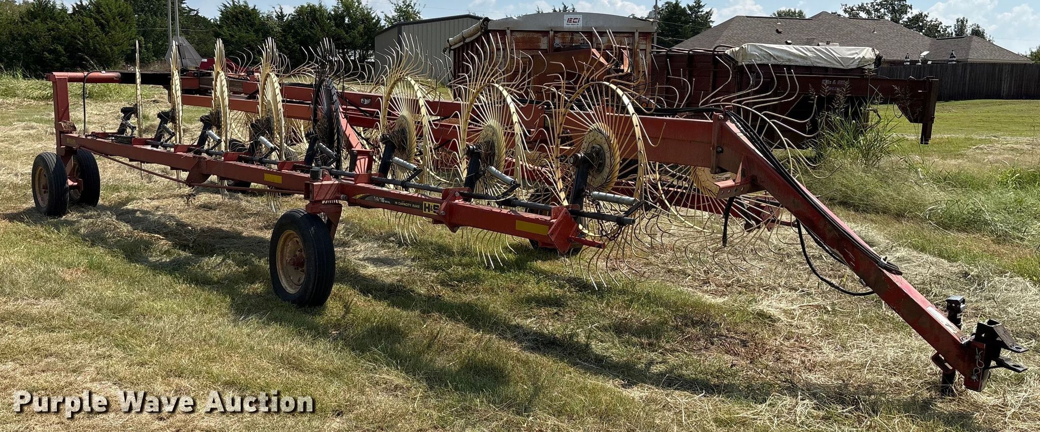 Purple Wave is selling a used Hay Rake in Oklahoma. This item is a H&S 14/16WHL hay rake with the following: Width: 44', Wheels: 16, Diameter: 56", Hydraulic fold, Ground driven