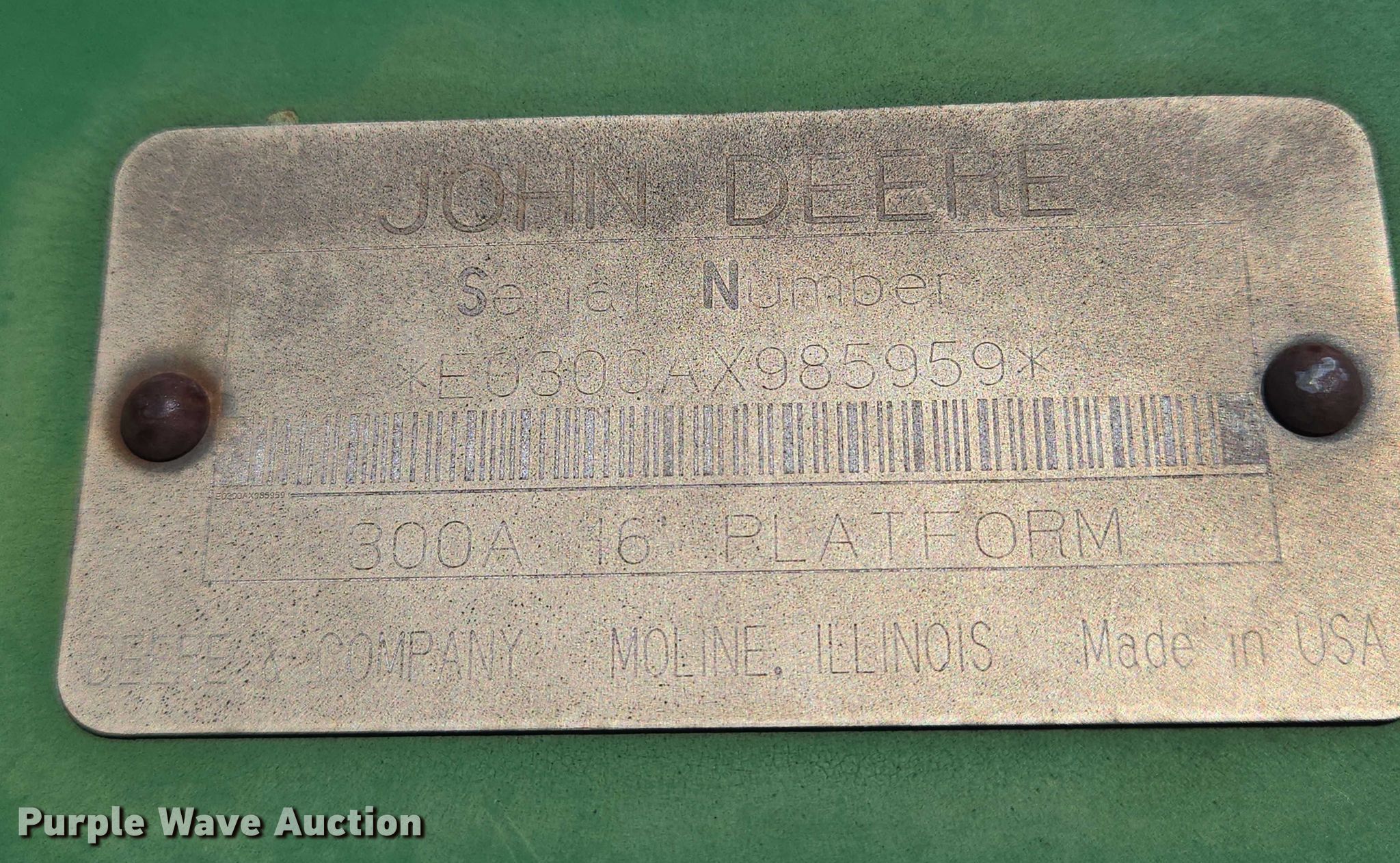 2006 John Deere 3830 swather / windrower. Engine hours: 4,436 on meter, Serial: E03830X726379. Engine John Deere 4239 TE01, Serial: CD4239T694200, Cylinders: 4, Fuel type: Diesel. Transmission Hydrostatic, Two speed travel. Operators station AC, Heat. Features Head Double sickle, John Deere 300A Twin Knife, Serial: E0300AX985959, Width: 16'. Tires Front: 18.4-26, Rear: 9.5L-15. View repairs. Peru, KS 67360