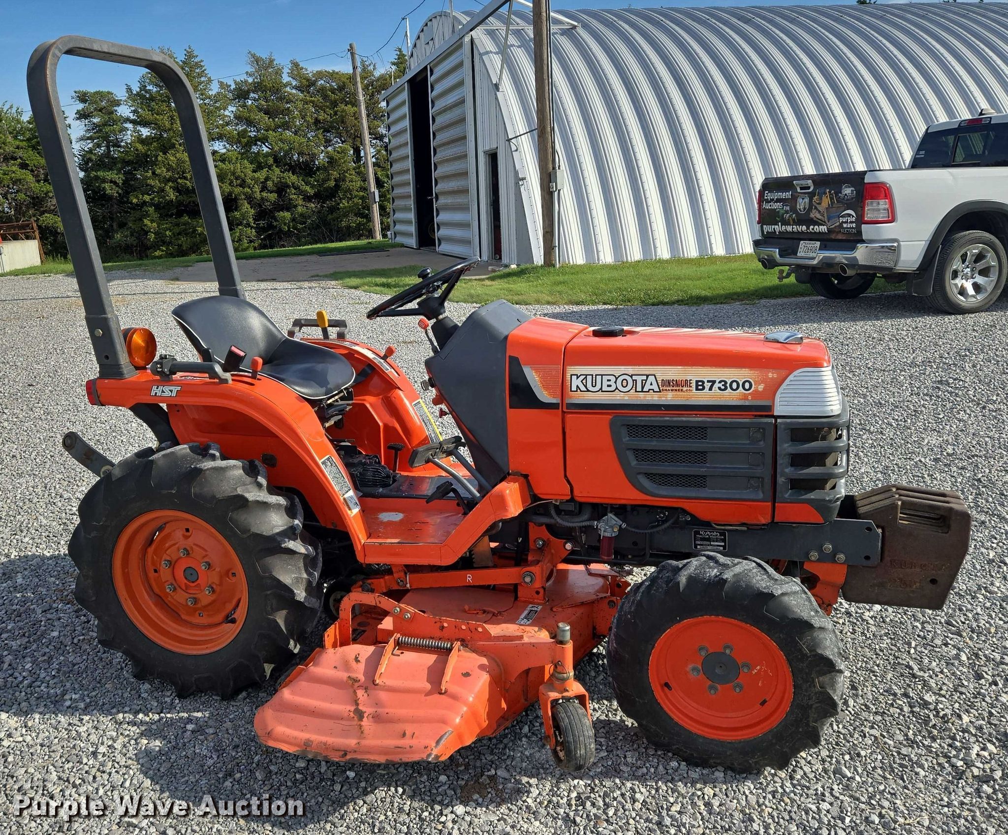 Purple Wave is selling a used Tractor in Kansas. This item is a Kubota B7300HSD MFWD tractor with the following: Hours: 1,197 on meter, Serial: 13947