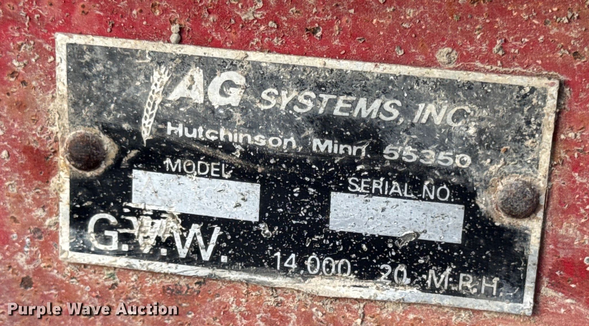 Take a look at this used Ag Systems, Inc. nurse tank trailer being sold on October 15th, 2025 in the SOLD! October 15 Ag Equipment Auction made by Ag Systems, Inc.. Take a look at all of the item information below or take a look at similar auctions for Trailers.