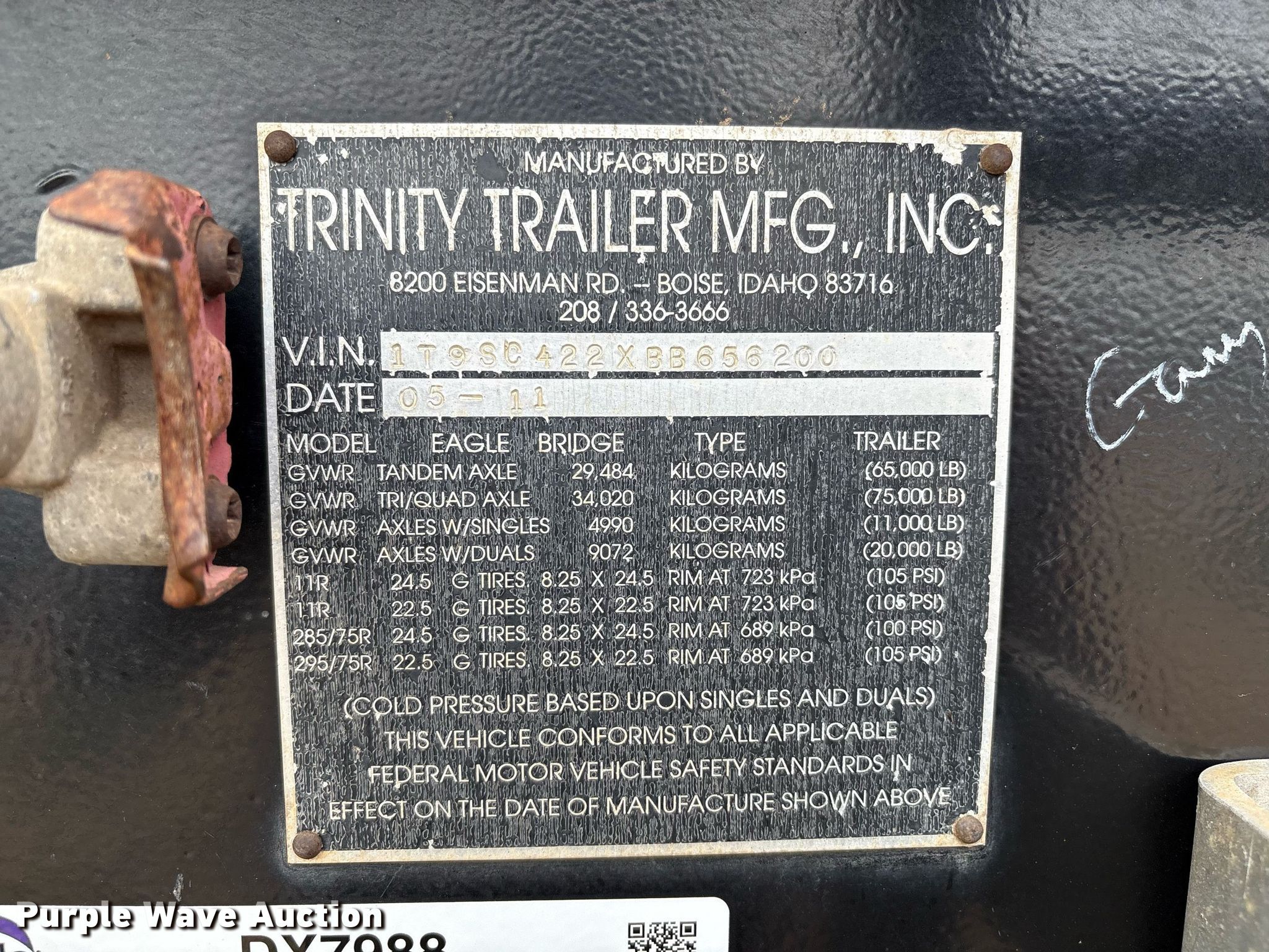 Purple Wave is selling a used Grain or Commodity Trailer in Texas. This item is a 2011 Trinity Eagle Bridge live bottom trailer with the following: VIN: 1T9SC422XBB656200