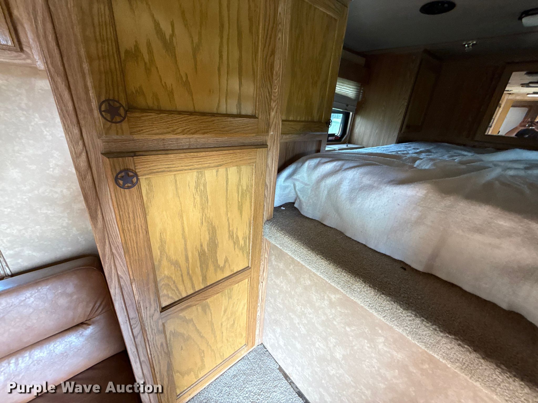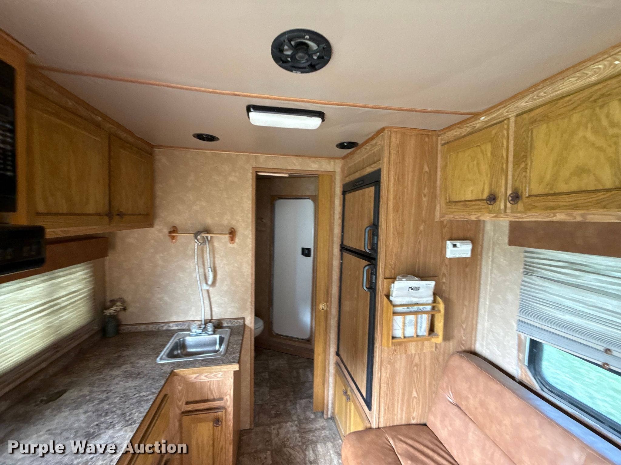 2005 Kiefer Xpress Advantage plus livestock trailer. VIN: 1DVXH30265K049188. Dimensions Overall Length: 36', Width: 102", Body Length: 30', Width: 96", Side height: 79". Interior Kitchen: Sink, Refrigerator, Freezer, Stove: Propane, Living room: Table, Pull out couch, Bathroom, Beds: 1, TVs: 1, Heater, AC units: 1. Features Horse capacity: 4, Rubber floor mat. Chassis Hitch: Gooseneck, Ball hitch: 2 5/16", Landing gear: Single, Suspension: Torsion, Brakes: Electric, Axles: Tandem, GVWR: 14,000 lbs, GAWR: 7,000 lbs. Tires Steel wheels, Size: 235/85R16. Transfer of ownership documentation will be a bill of sale. RHR Dump Trailer and Flatbed Trailer Services. Nowata, OK 74048