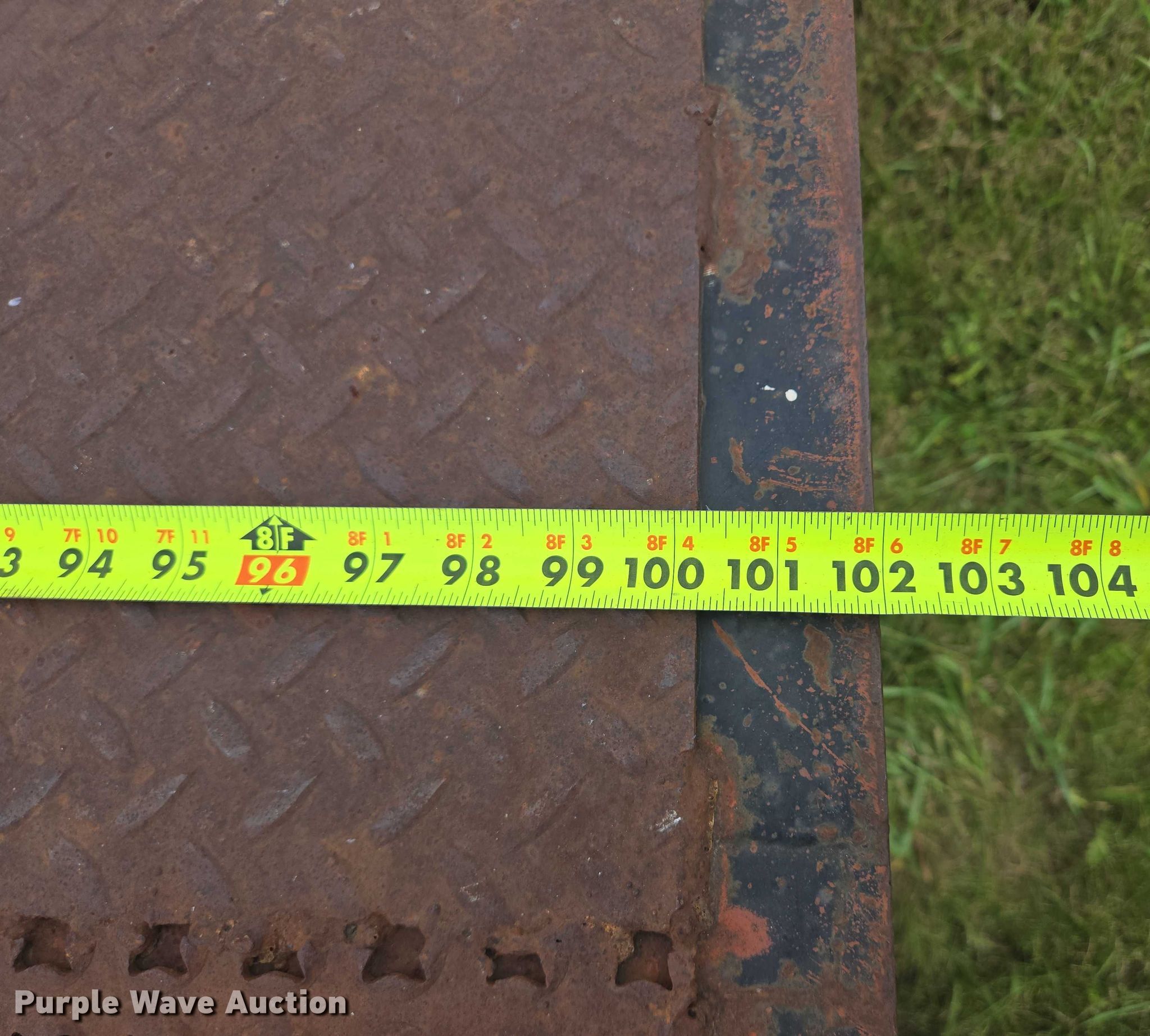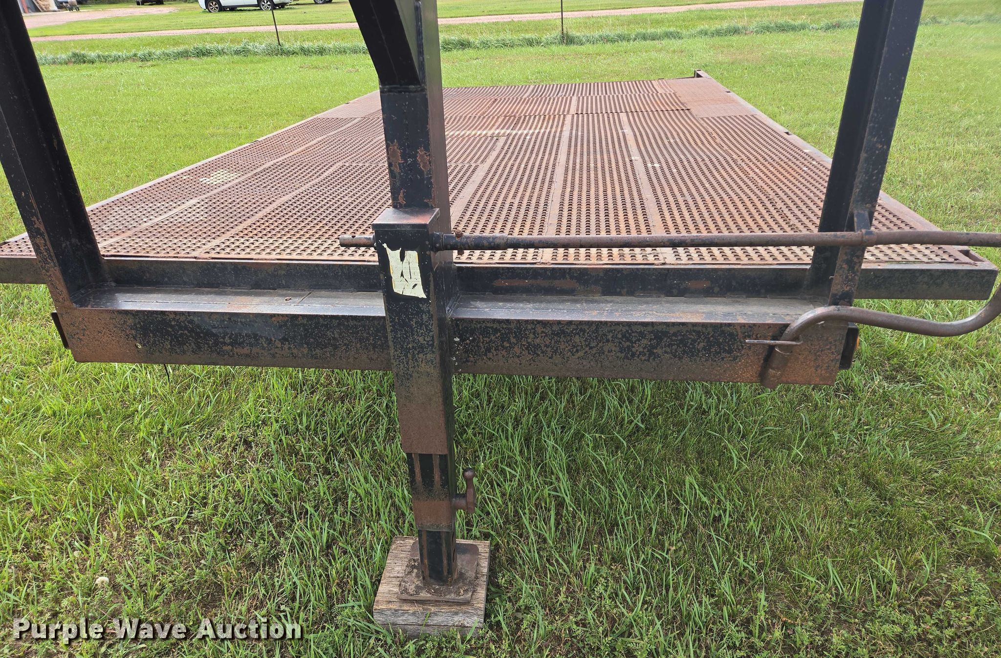 1990 flatbed trailer. VIN: NBZ05432EX90. Dimensions Overall Length: 25' 6", Width: 102", Deck Length: 13' 6", Width: 102", Deck height: 35", Tail length: 4'. Features Deck type: Steel. Chassis Hitch: Gooseneck, Landing gear: Single, Suspension: Spring, Brakes: Electric, Axles: Tandem. Tires Steel wheels, Size: 235/85R16. South Dakota title. Title distribution may be delayed up to 30 days from verification of funds. Mitchell, SD 57301