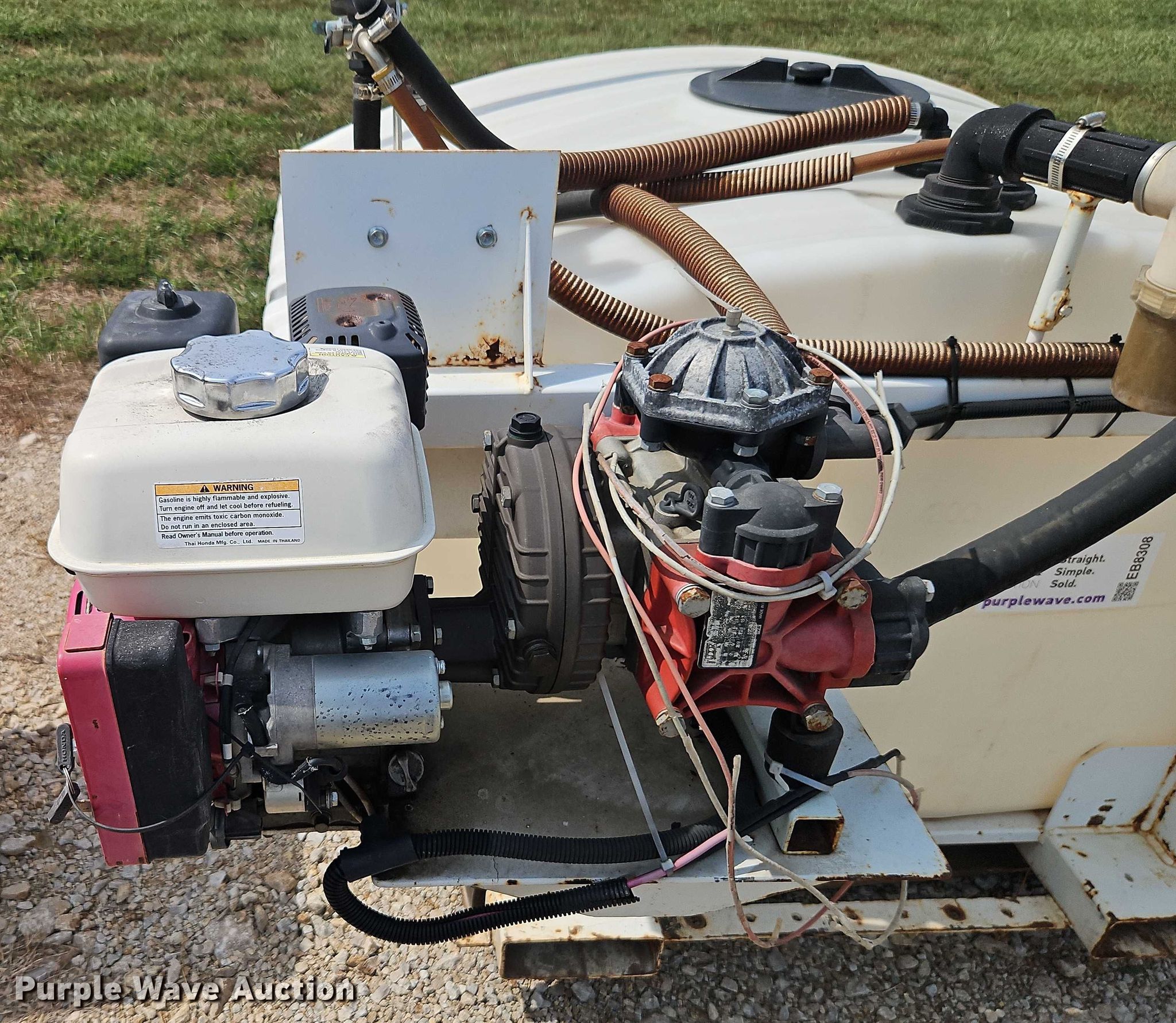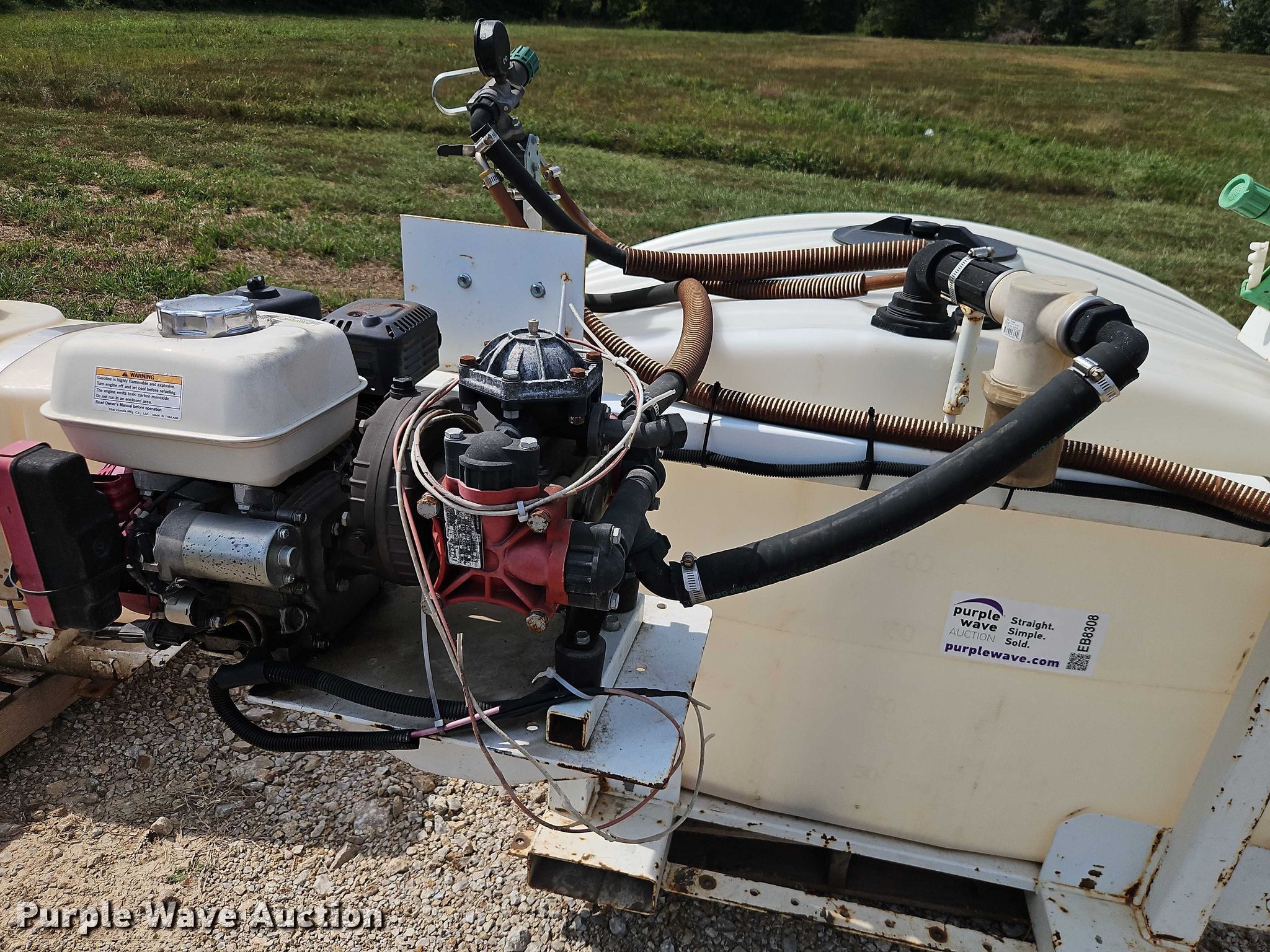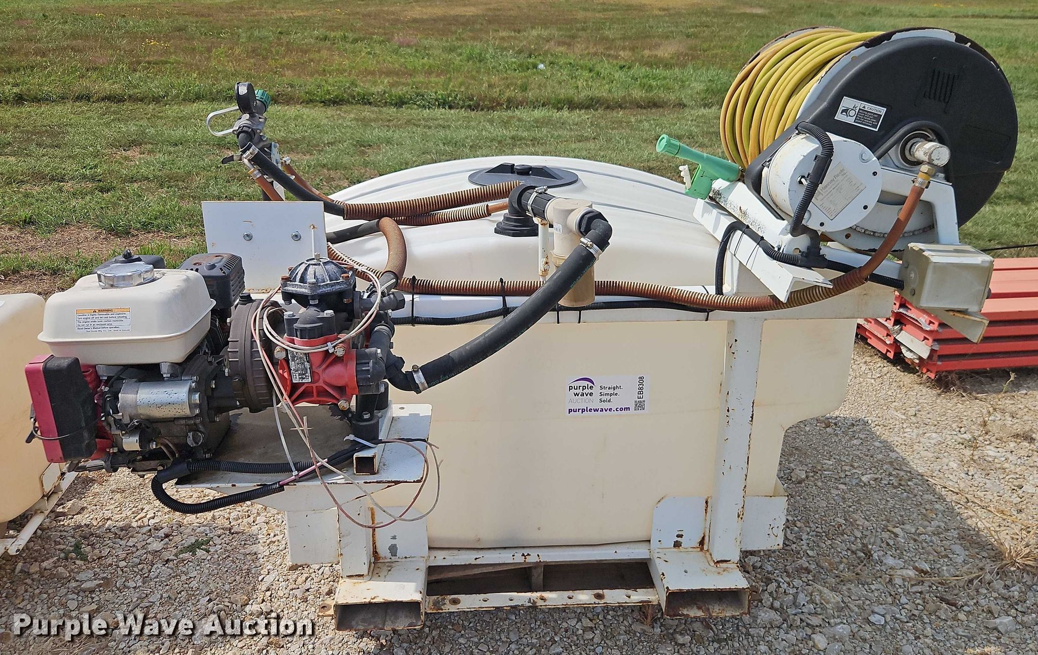 Westheffer sprayer. Serial: 1503022. Engine Honda GX160, Cylinders: 1, Fuel type: Gas. Features Tank Capacity: 300 gallons, Hose reel, Spray nozzle, Skid mounted. Notes Units have not been cleaned, possible chemical residue. Kohler Outdoor. Pleasant Hill, MO 64080