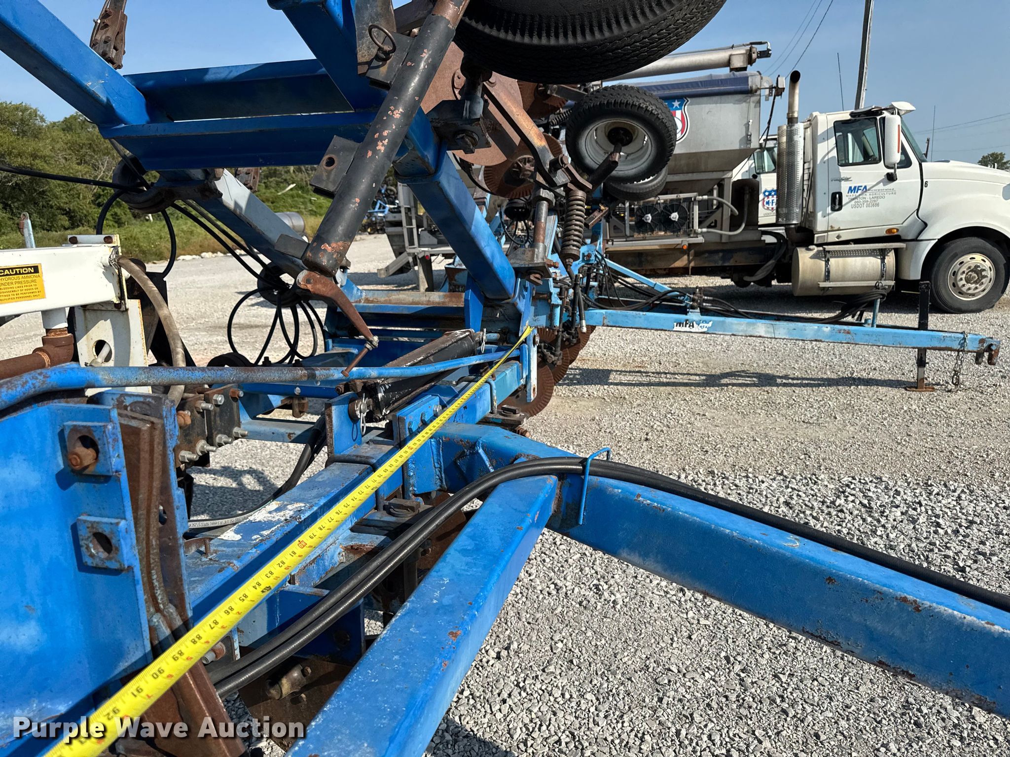 DMI 3200 NH3 applicator. Serial: 301102. Features Liquid/nh3 applicator Rows: 11, Spacing: 30", Delivery type: Knife, NH3 hookups, Rear hitch. Tires Tire sizes: 11L-15, 6.4-15. MFA Incorporated. Leon, IA 50144