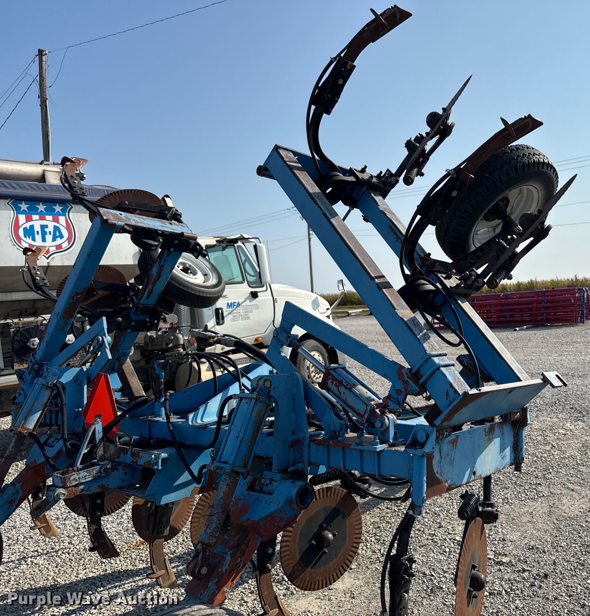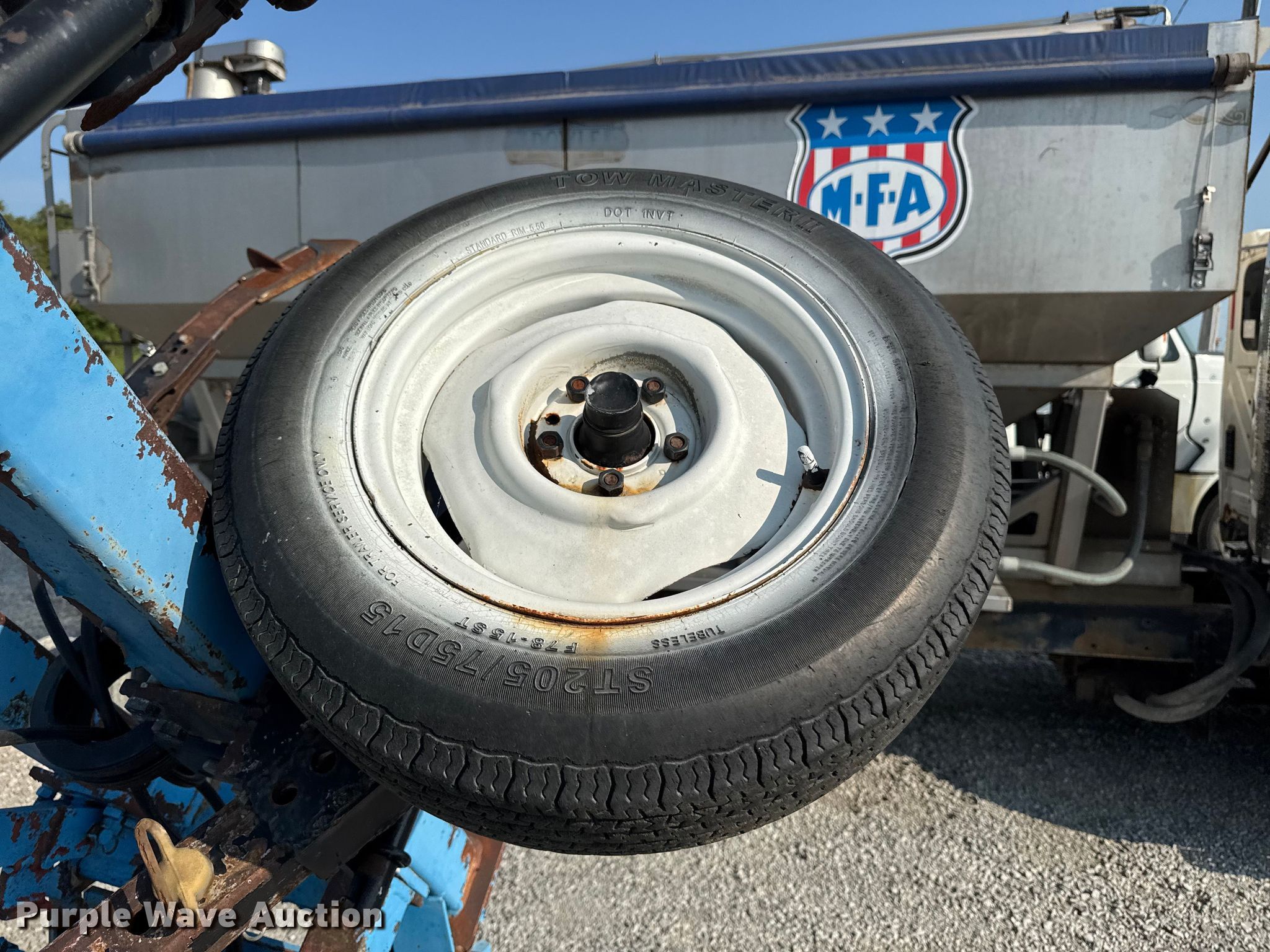 JT Industries GME550 NH3 applicator. Serial: 0094110. Features Liquid/nh3 applicator Rows: 9, Spacing: 30", Delivery type: Knife, NH3 hookups, Pump Type: Hydraulic, Rear hitch. Tires Tire sizes: 11L-15SL, F78-15ST. Notes Unknown operating condition. MFA Incorporated. Leon, IA 50144