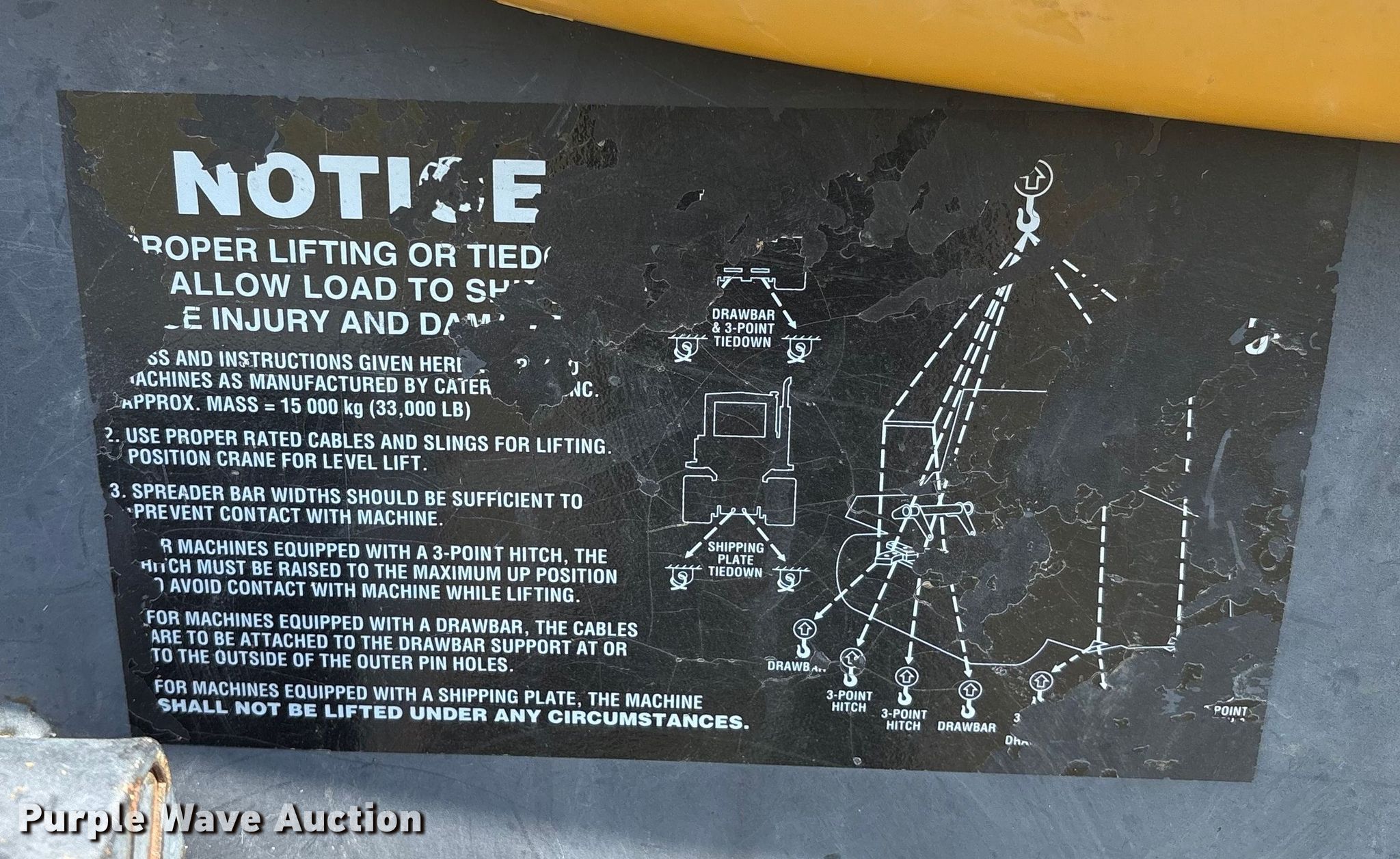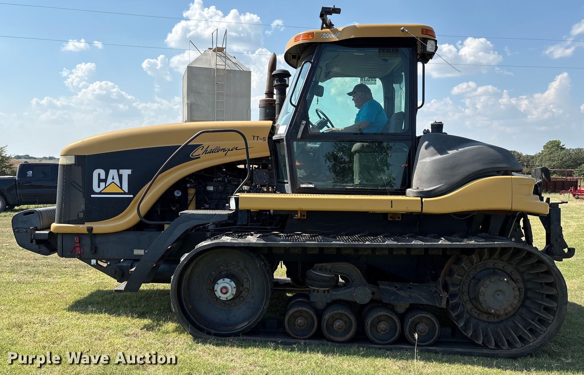 2000 Caterpillar Challenger 75E tractor. Hours: 10,814 on meter, Serial: 6HS00602. Engine Caterpillar 3176, Displacement: 10.3L, Cylinders: 6, Fuel type: Diesel, HP: 340. Transmission Powershift, 10F - 2R. Operators station AC, Heat. Features Three point Top link, Quick attach, Hydraulic remote sets Rear: 4, Suitcase weights: 20. Tracks Width: 30". Notes Glass cracked. Tim Carter Dozer Service. Ringling, OK 73456