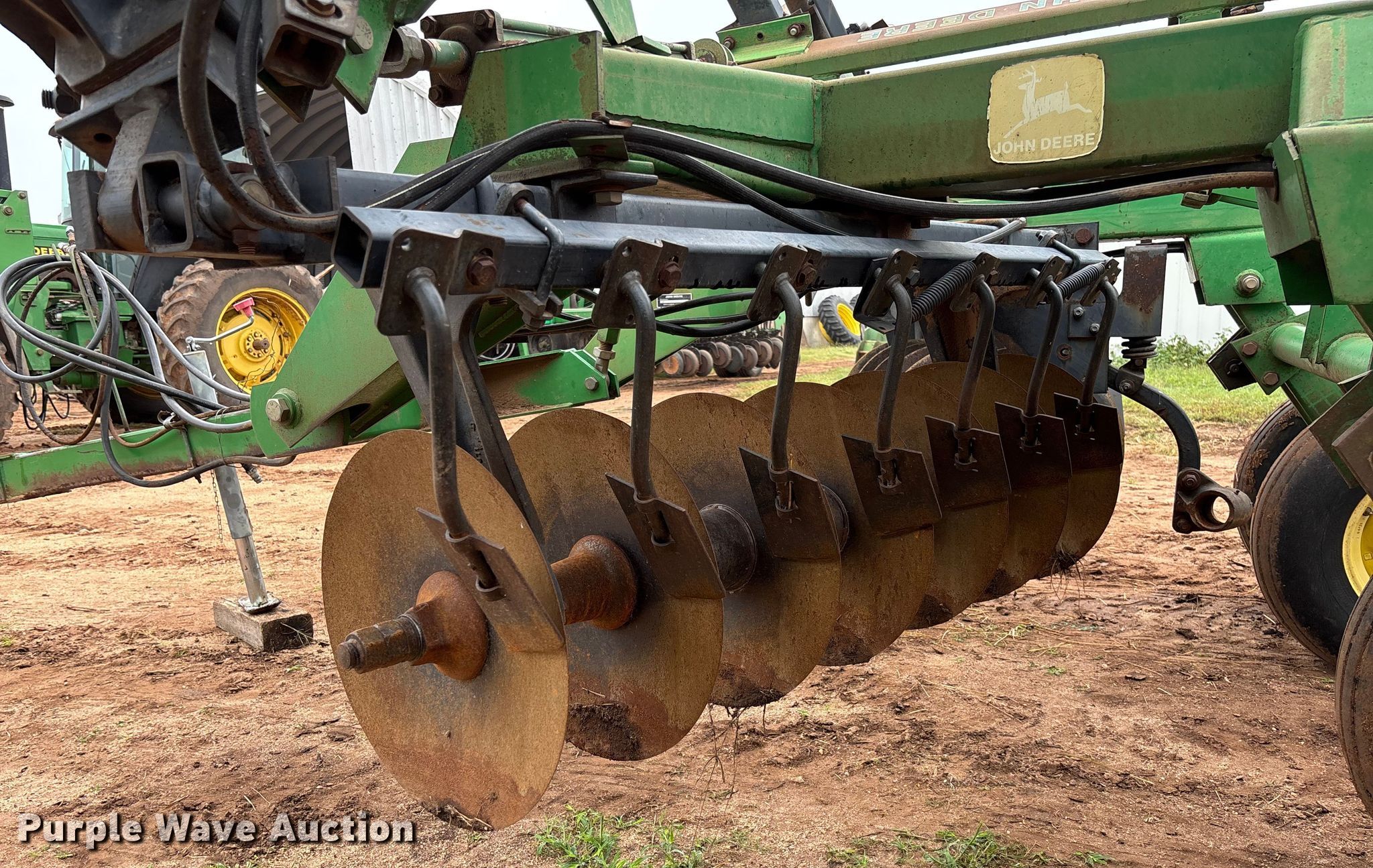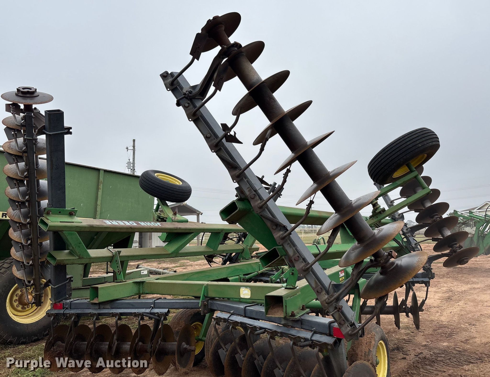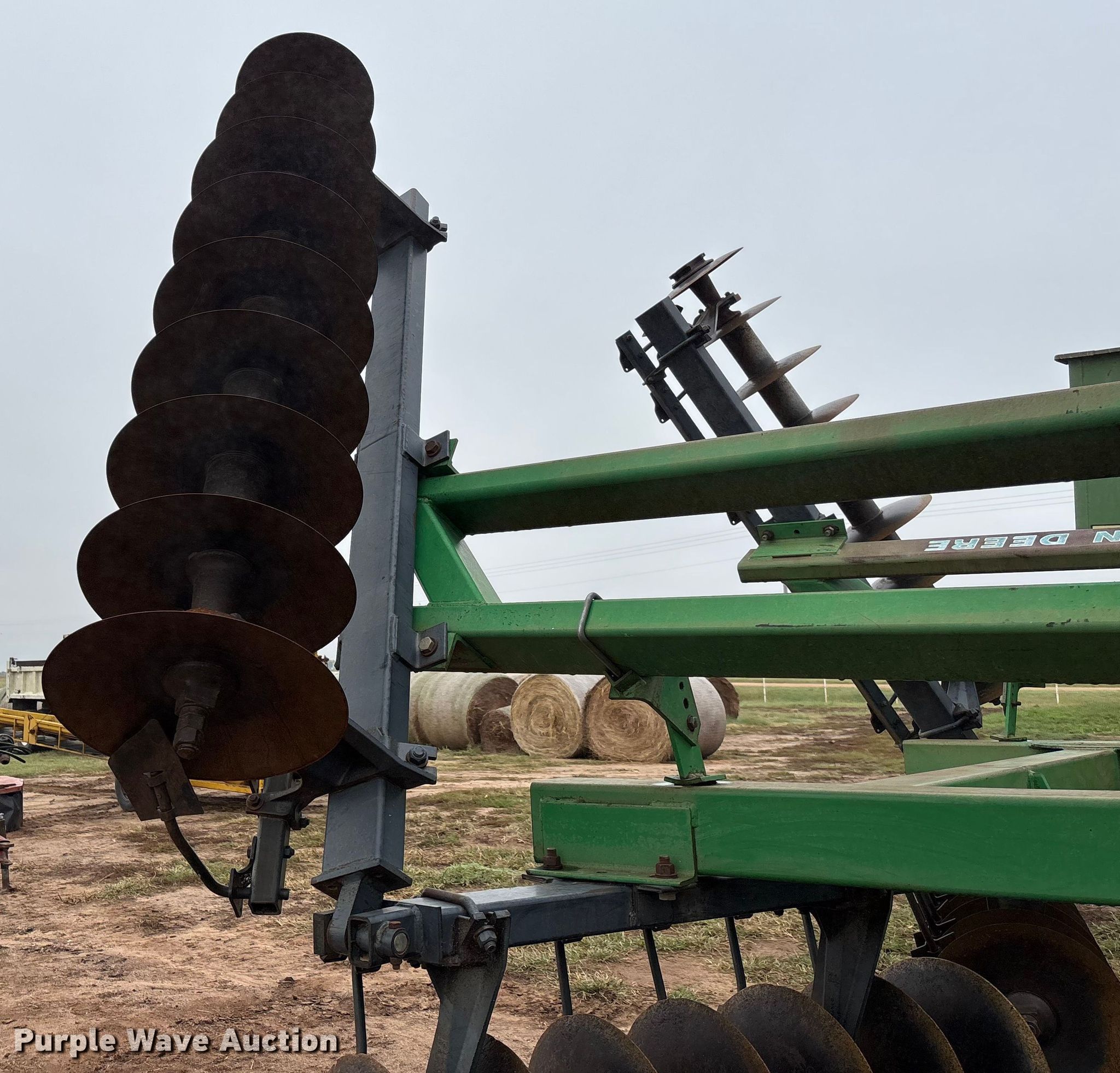 Purple Wave is selling a used Disk in Kansas. This item is a John Deere 630 tandem disk with the following: Overall width: 23', Serial: N00630X006959
