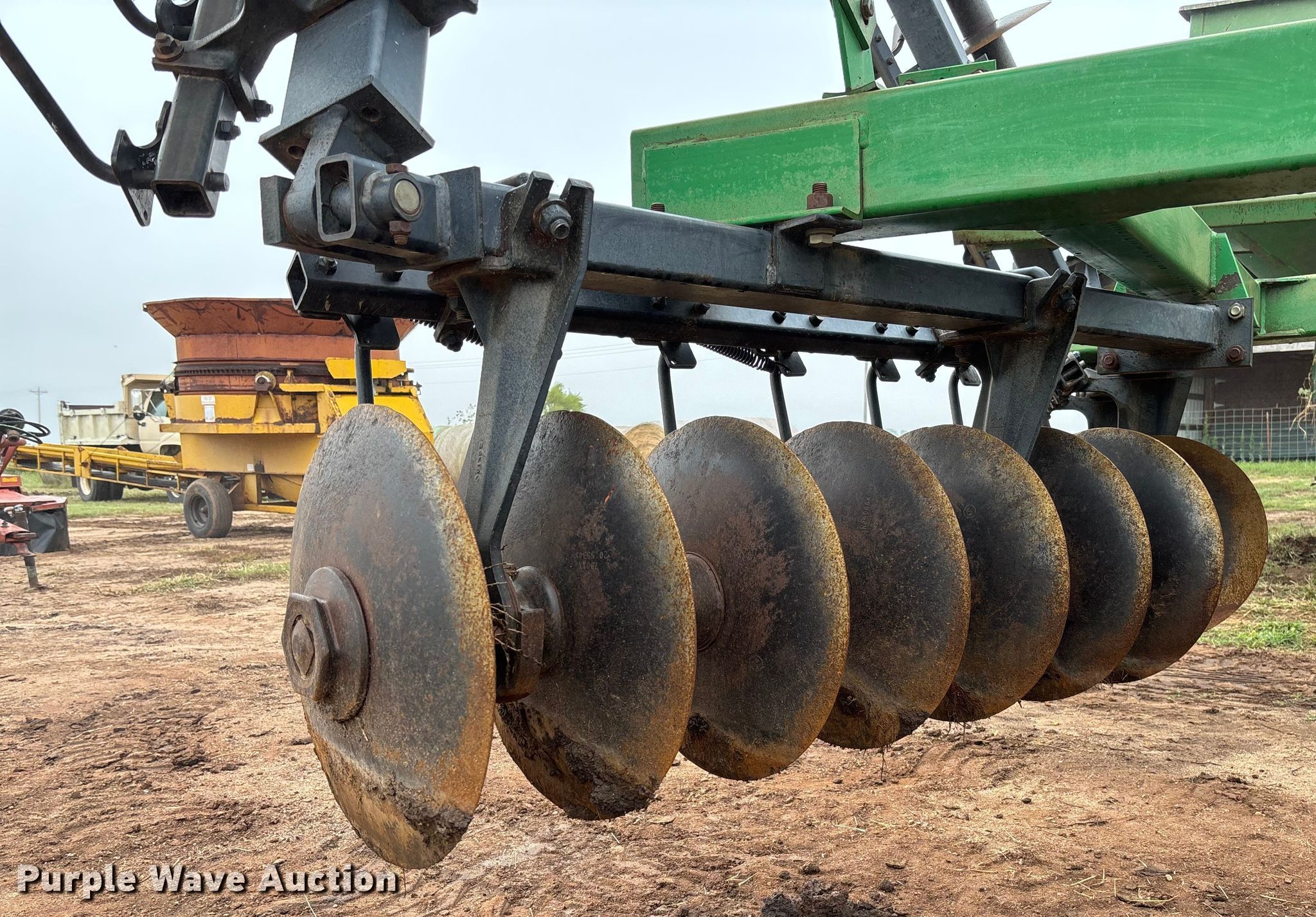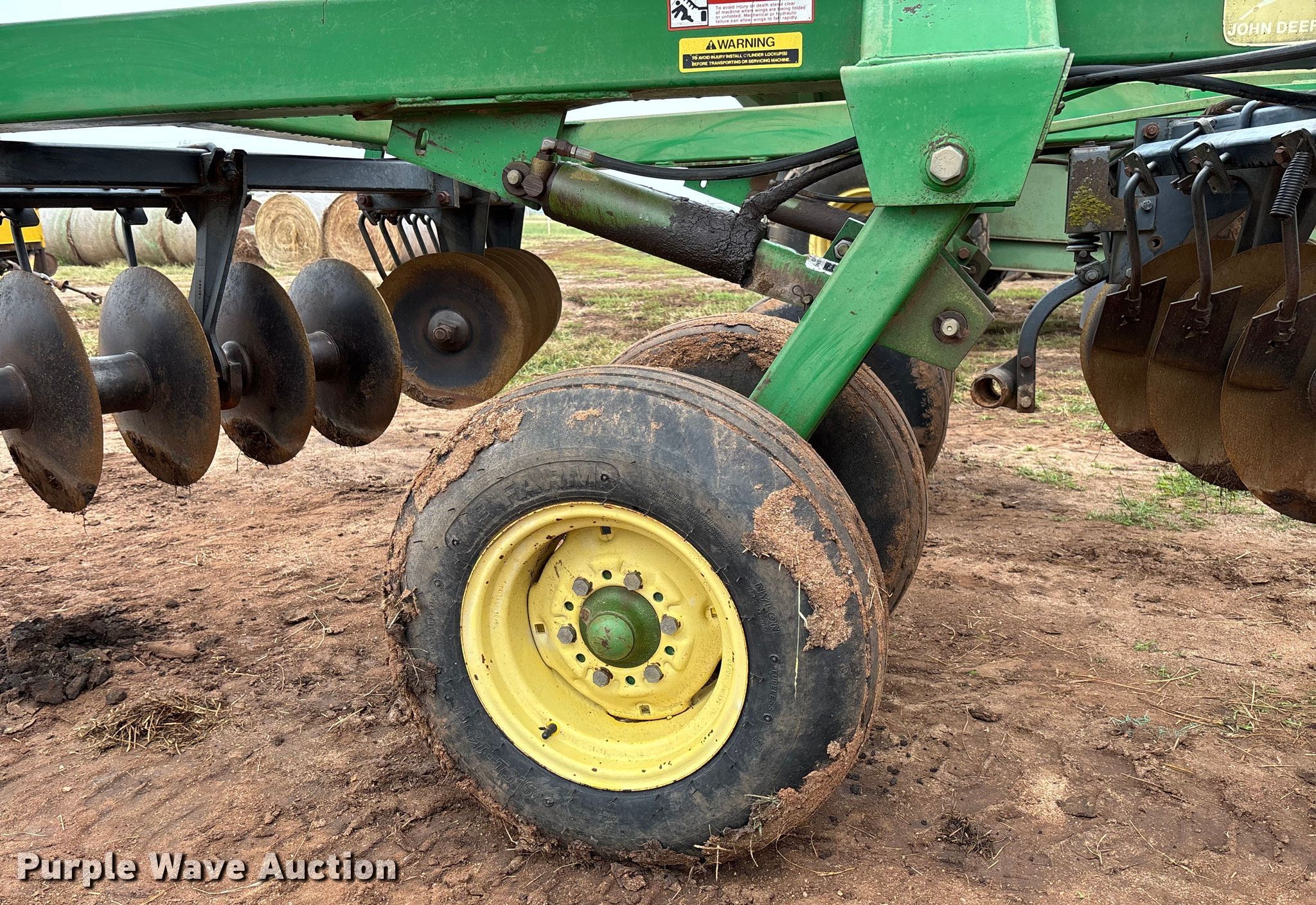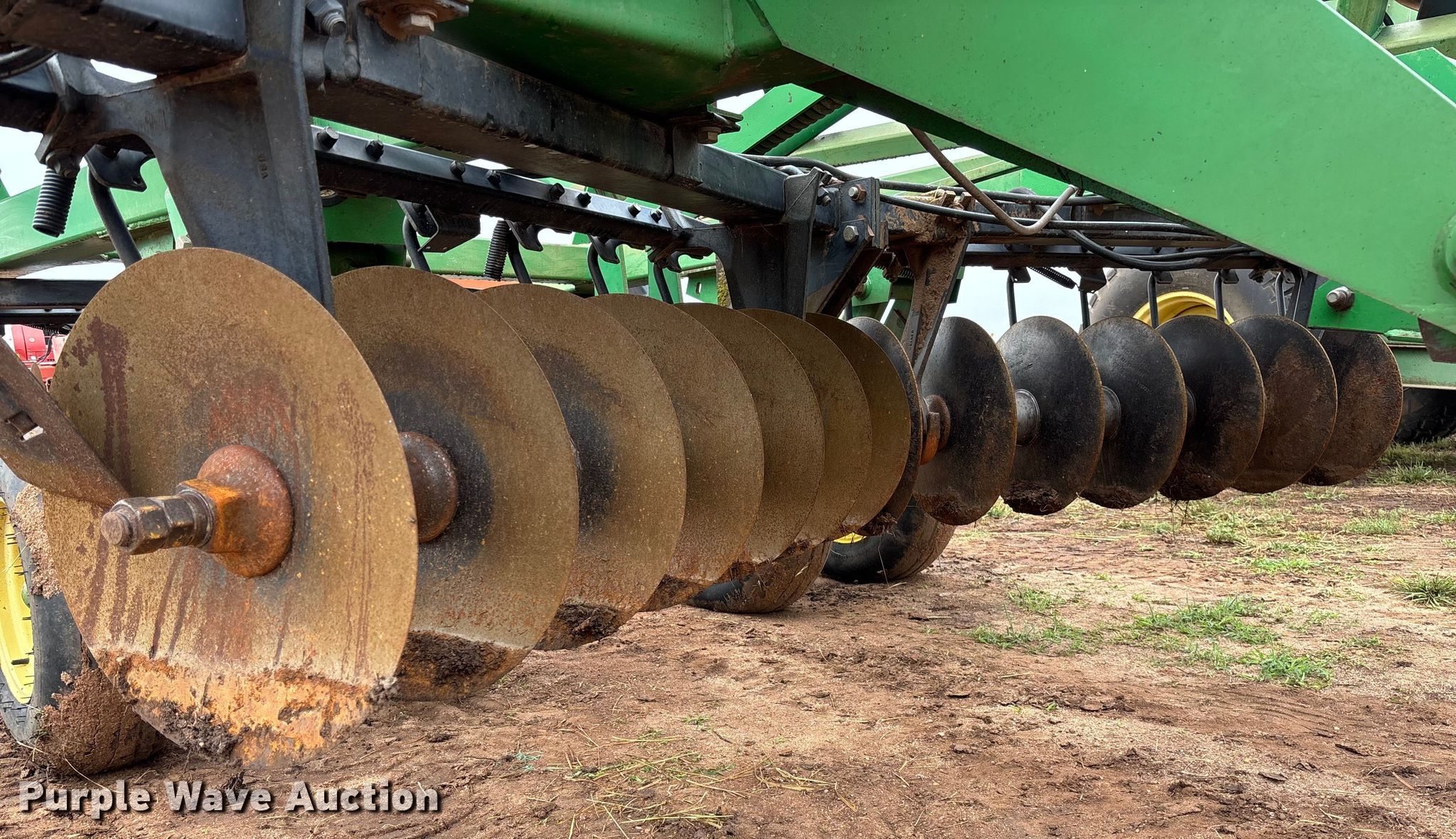 Purple Wave is selling a used Disk in Kansas. This item is a John Deere 630 tandem disk with the following: Overall width: 23', Serial: N00630X006959