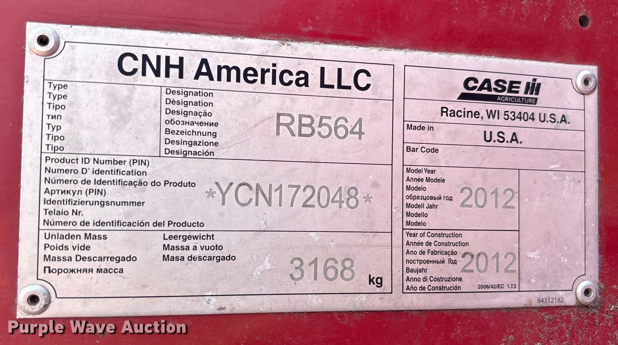 Purple Wave is selling a used Round Baler in Kansas. This item is a 2012 Case RB564 round baler with the following: Bale count: 9,749, Serial: YCN172048