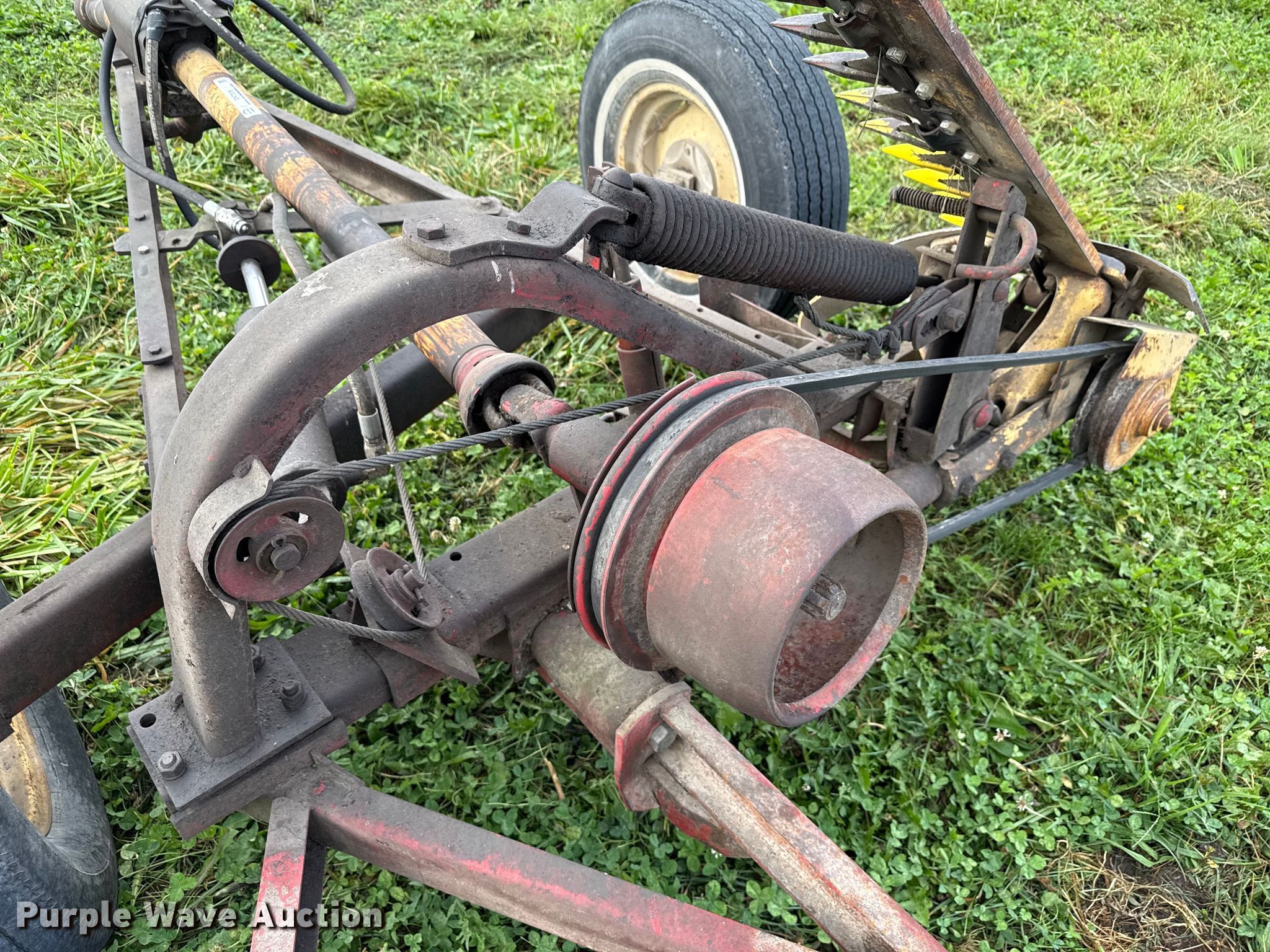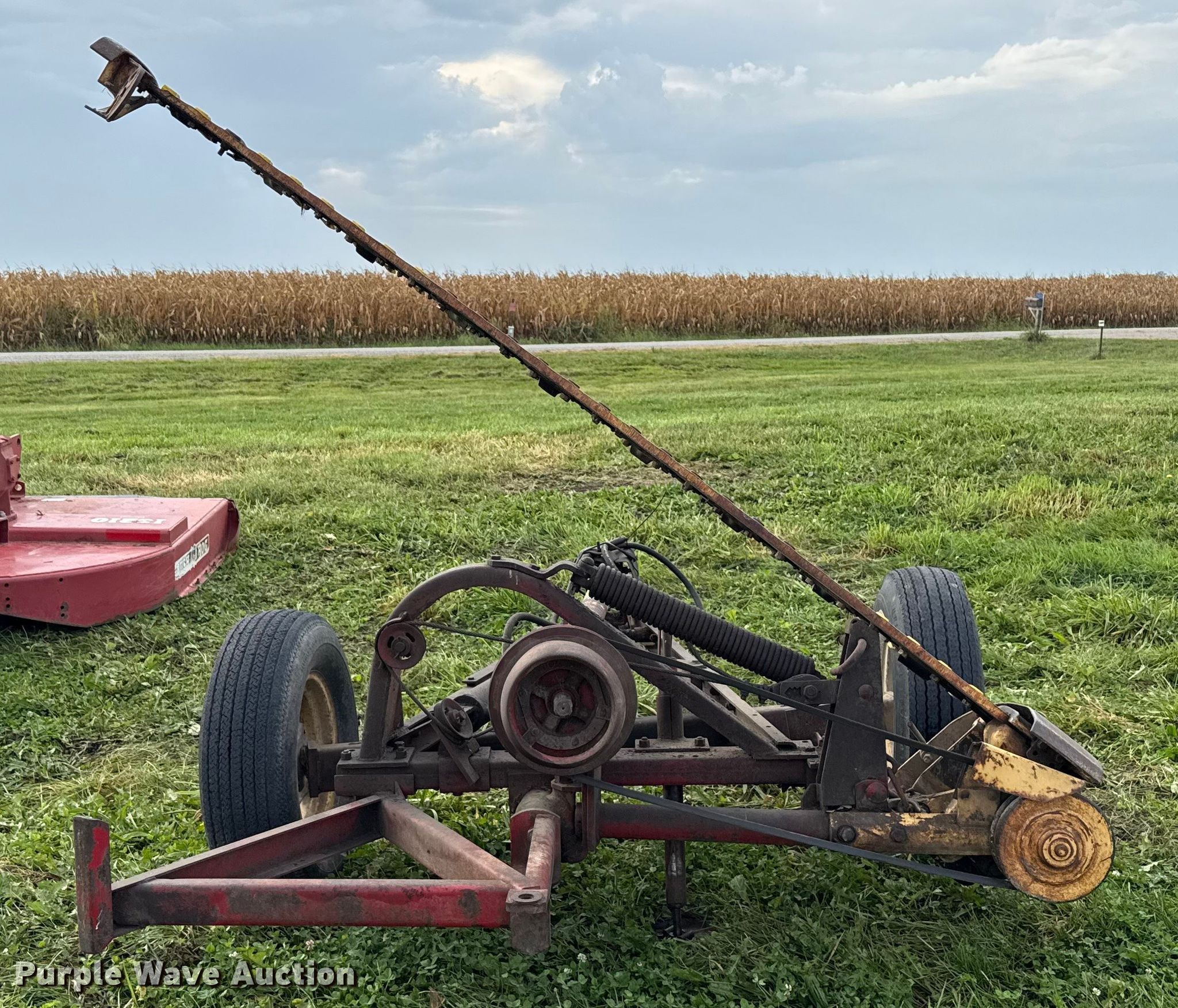 Purple Wave is selling a used Disc or Sickle Mower in Iowa. This item is a Sickle mower with the following: Width: 7', Hydraulic fold, PTO: 540, Caddy, Tires: 78-14, Hitch: Pin