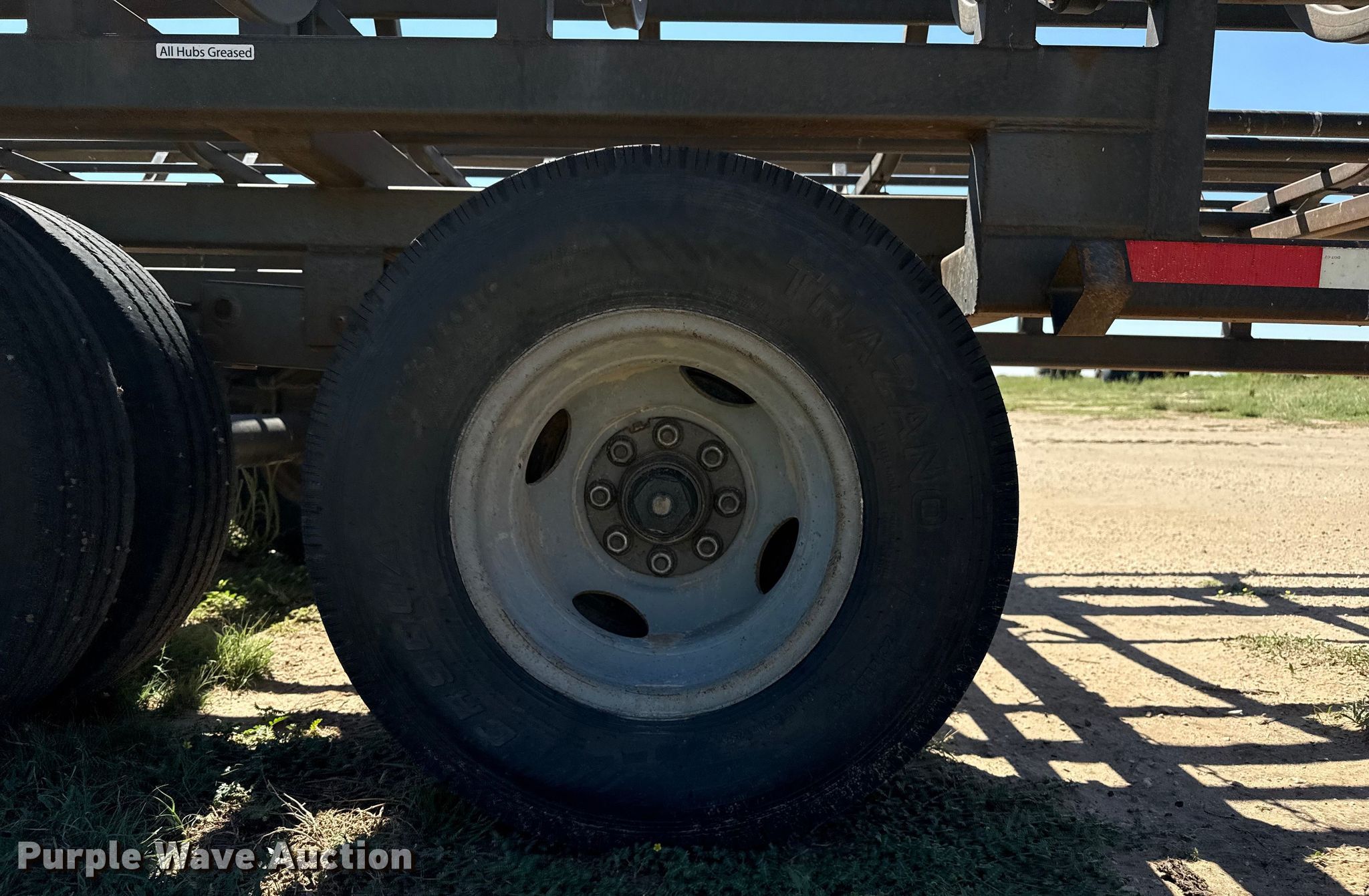 2018 Pride of the Prairie hay bale trailer. VIN: 1C9GH4229JP873133. Dimensions Overall Length: 40', Width: 10", Deck Length: 33', Width: 10'. Chassis Hitch: Gooseneck, Landing gear: Single, Suspension: Spring, Brakes: Electric, Axles: Tandem. Tires Front: 235/85R16. Texas title. Title distribution may be delayed up to 14 days from verification of funds. Reeder Cattle Company / Two Lakes Land & Cattle LLC - Retirement Auction. Stratford, TX 79084