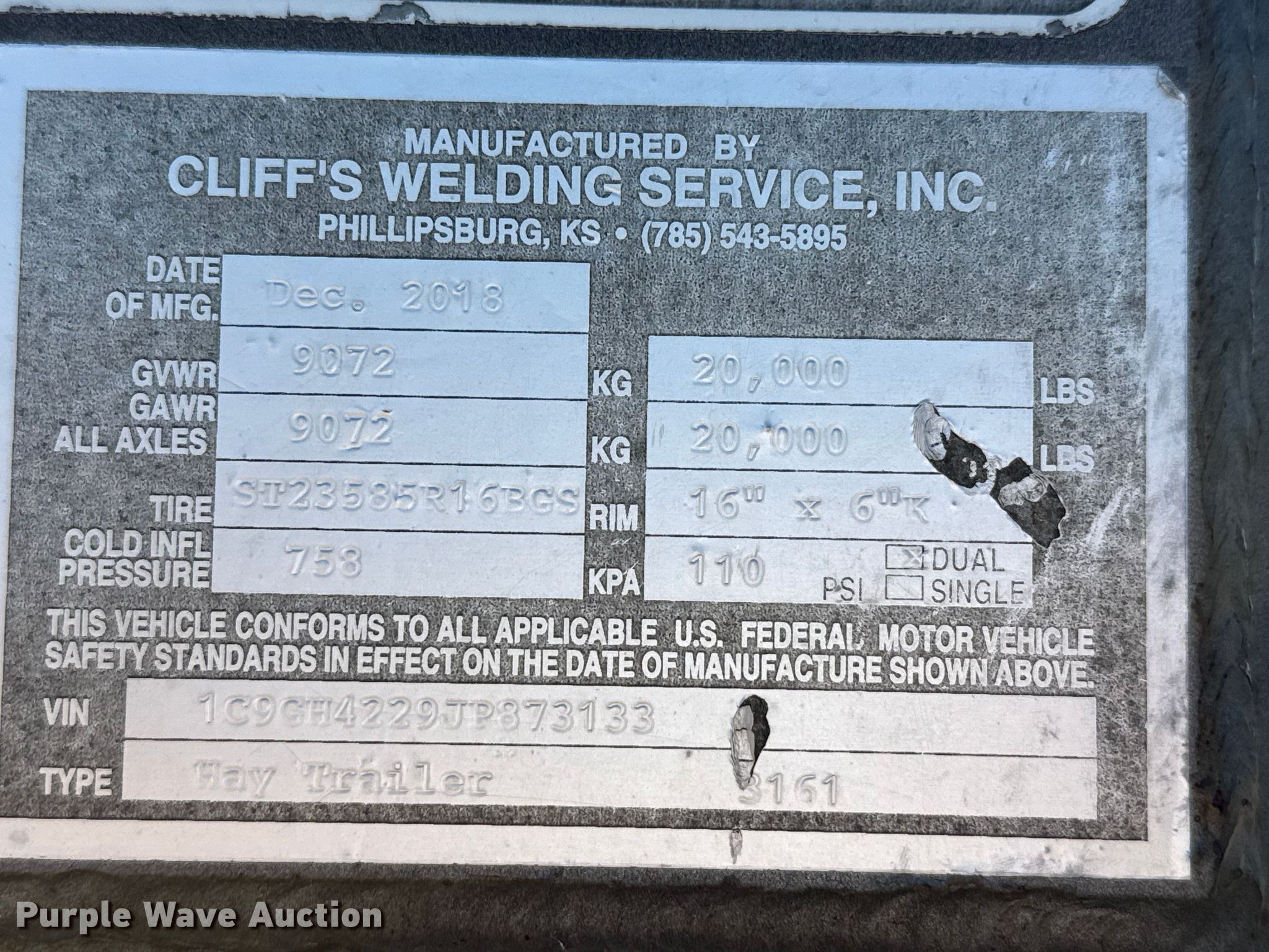 Purple Wave is selling a used Hay Handling in Texas. This item is a 2018 Pride of the Prairie hay bale trailer with the following: VIN: 1C9GH4229JP873133