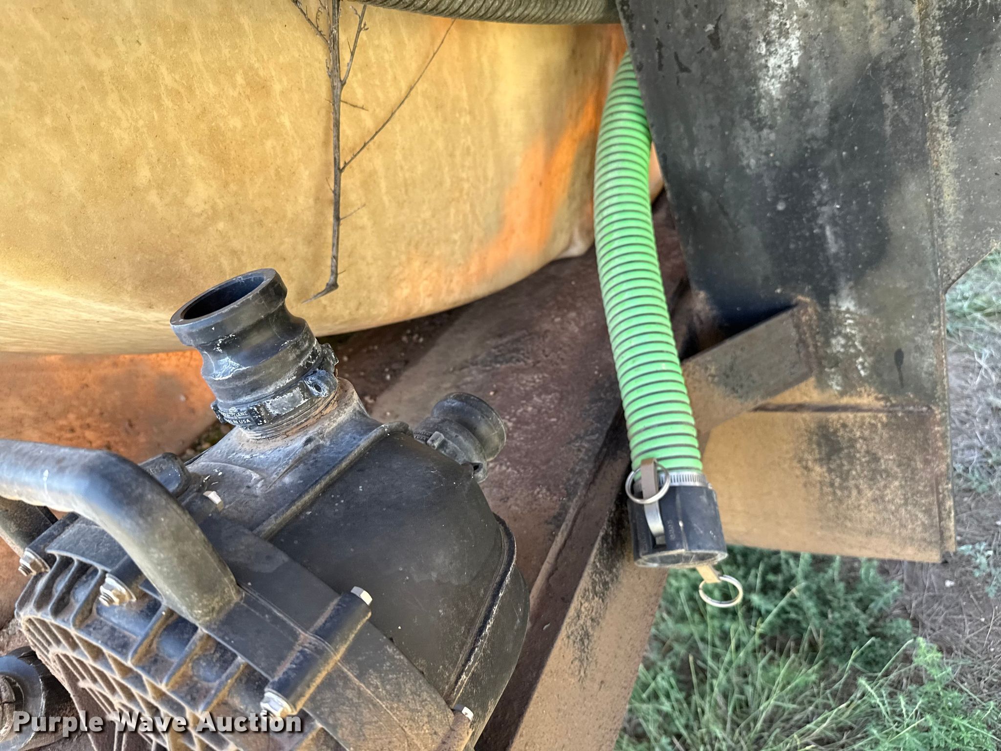 Shop built water wagon trailer. Dimensions. Overall Length: 33', Width: 97". Features Tank type: Poly, Pump Outlet size: 2", Rear spray bar. Chassis Suspension: Spring. Tires Steel wheels, Size: 10.00-22. Transfer of ownership documentation will be a bill of sale. Reeder Cattle Company / Two Lakes Land & Cattle LLC - Retirement Auction. Stratford, TX 79084