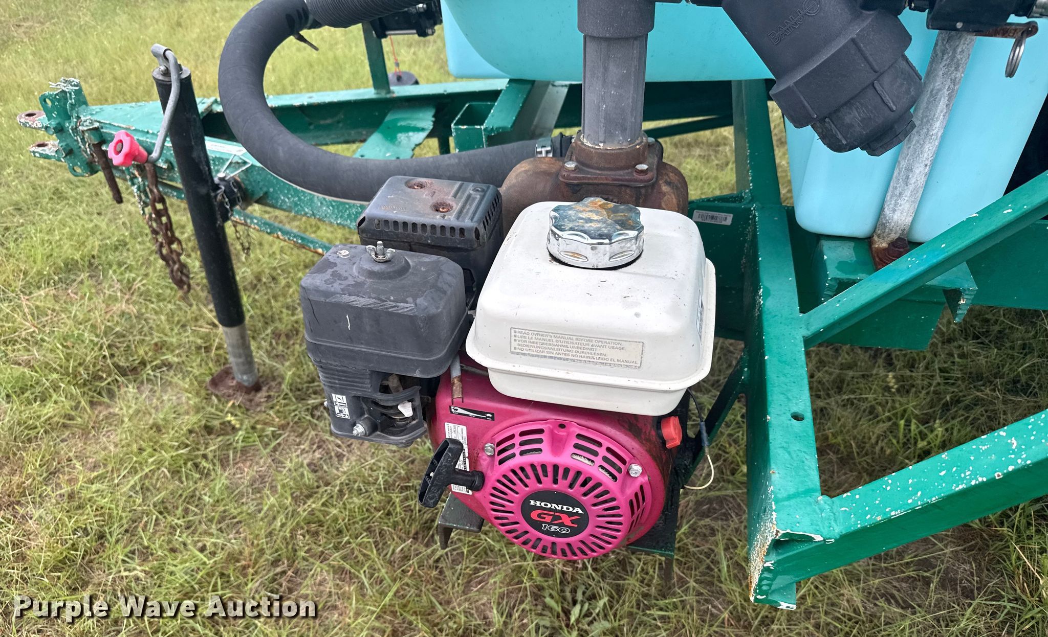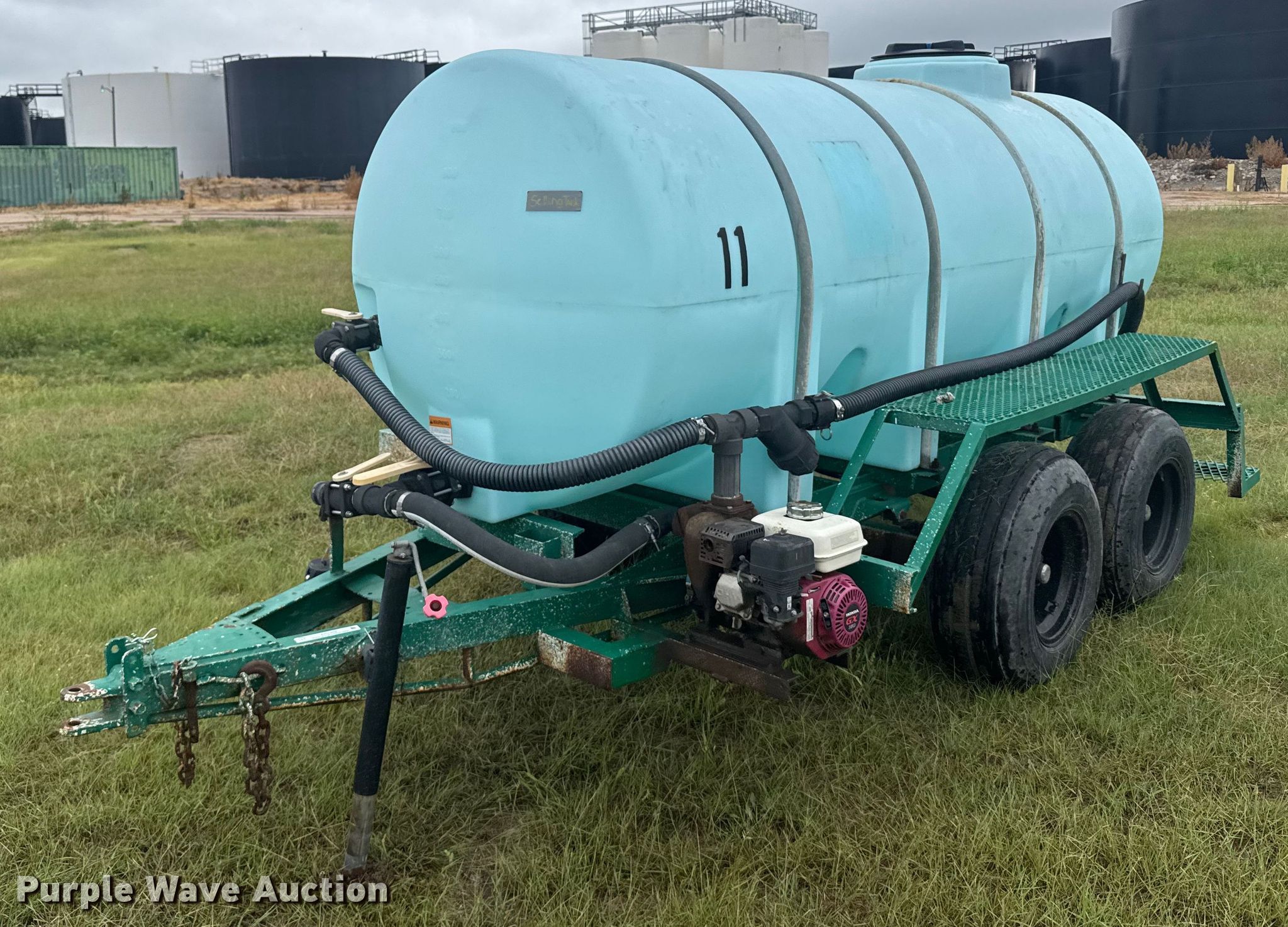 Nurse tank trailer. Dimensions. Overall Length: 15', Width: 71", Body Length: 11', Width: 48". Chassis Landing gear: Single, Suspension: Spring, Axles: Tandem. Features Poly tank Capacity: 1000 gallons, Pump Honda GX 160 engine, Outlet: 2". Tires Steel wheels, Size: 11-15. Transfer of ownership documentation will be a bill of sale. Kugler Company. Culbertson, NE 69024