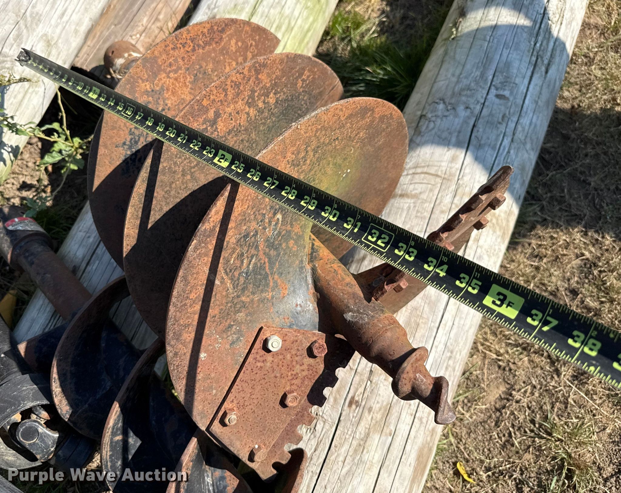 Purple Wave is selling a used Ag Tractor Loader or Attach. in Oklahoma. This item is a Danuser Digger F-8 auger with the following: PTO: 540, Hitch: Three point, Bits, Dimensions: 3' L x 9" W, Dimensions: 3' L x 18" W