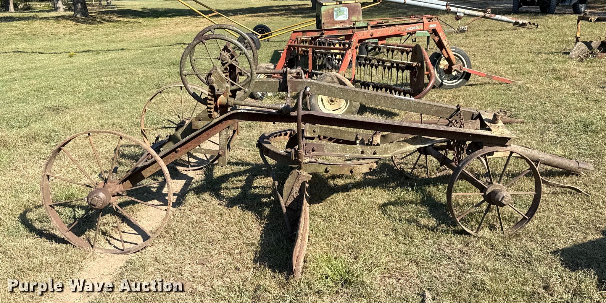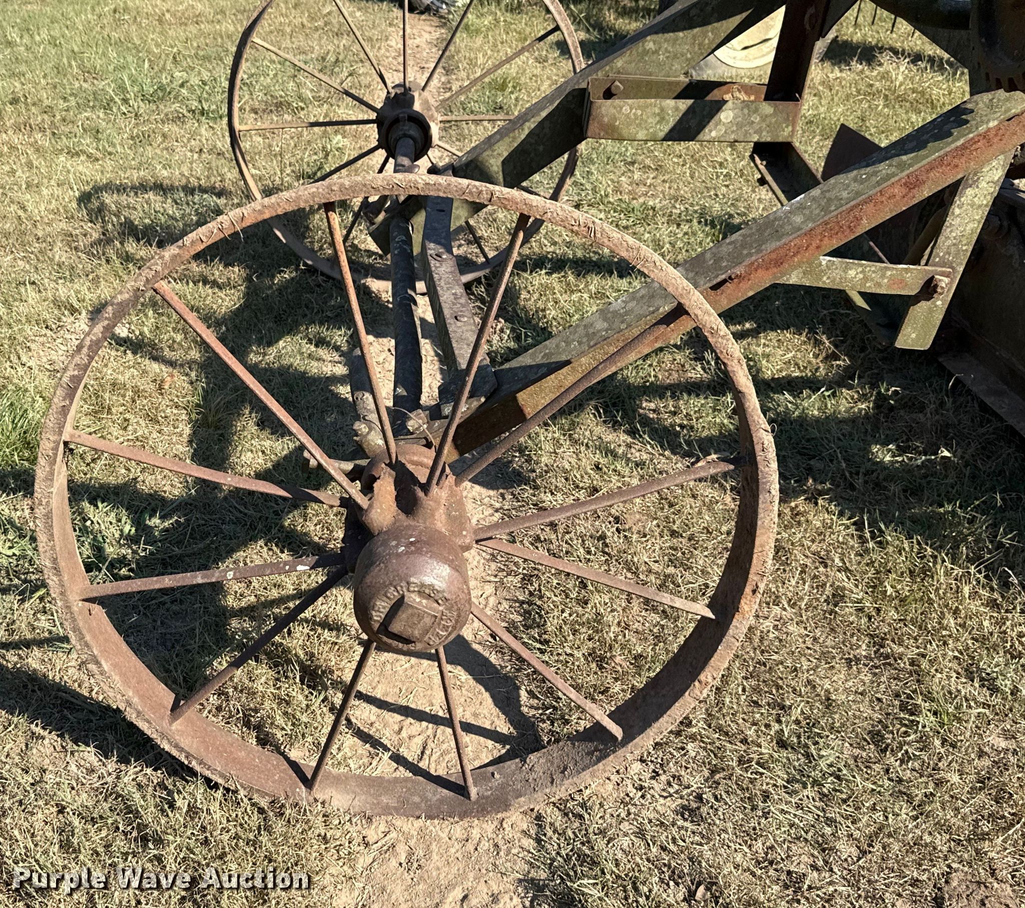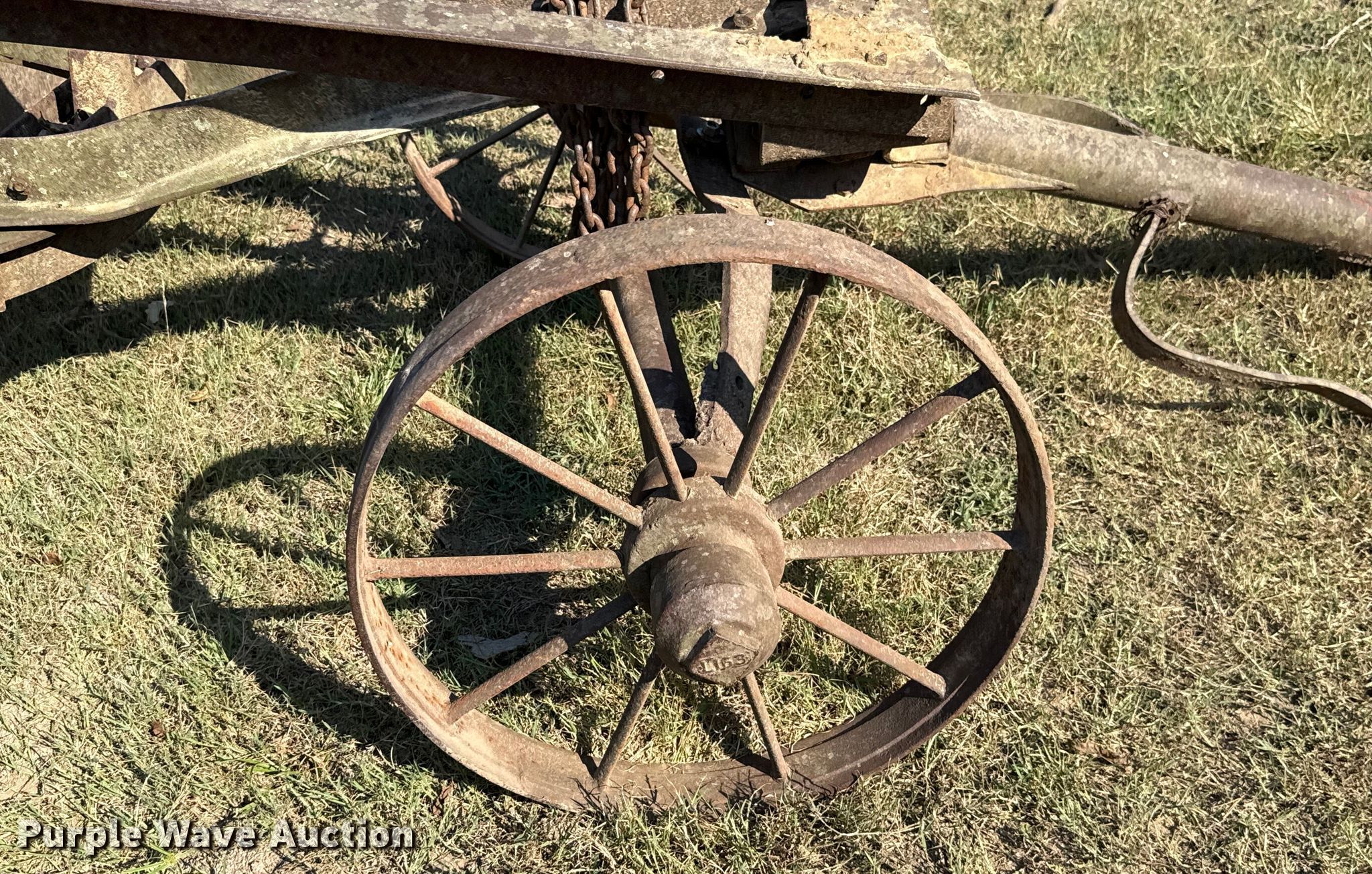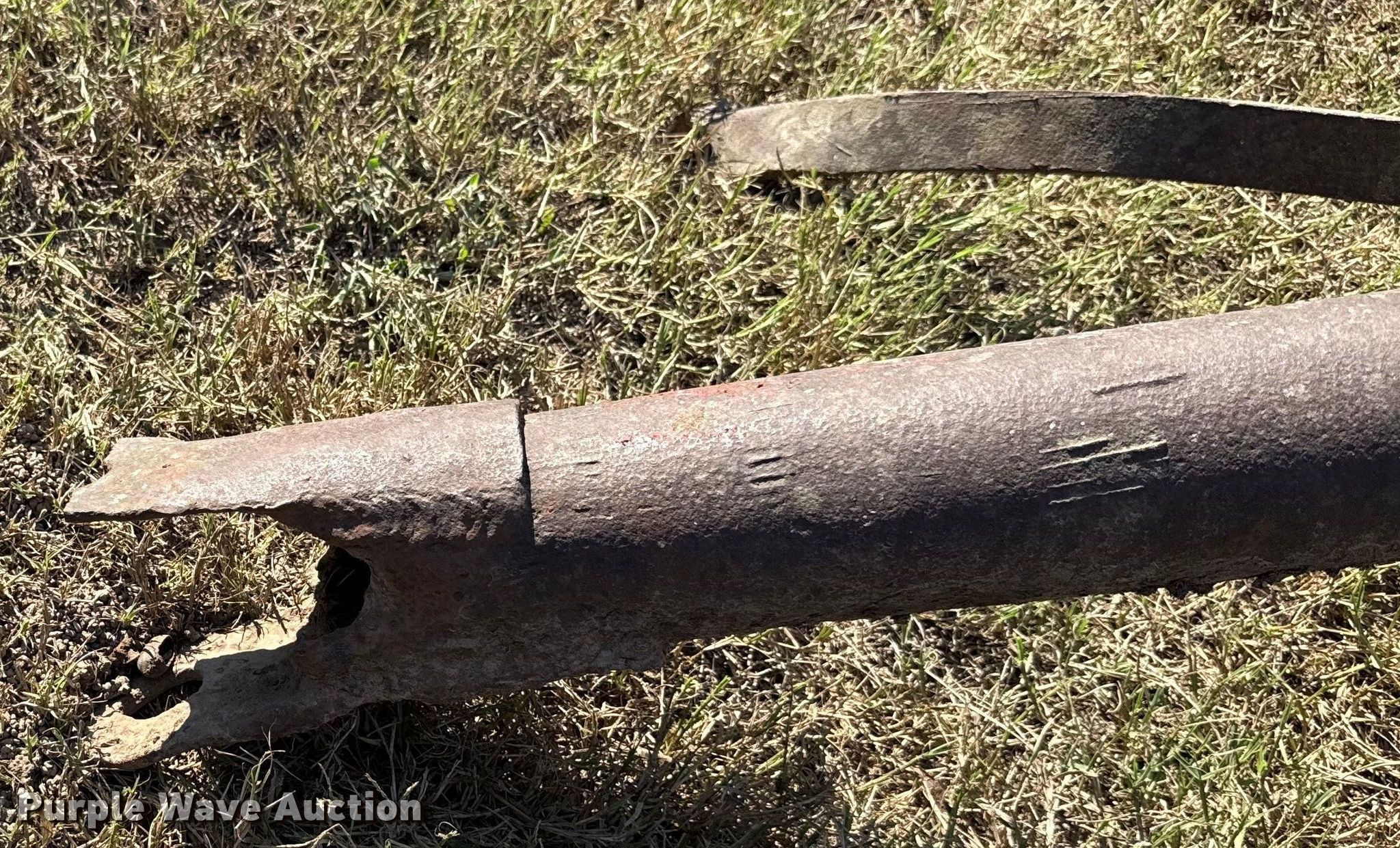 Purple Wave is selling a used Pull Type Scraper in Oklahoma. This item is a Pull type grader with the following: Moldboard total width: 8', Steel wheels, Hitch: Pin