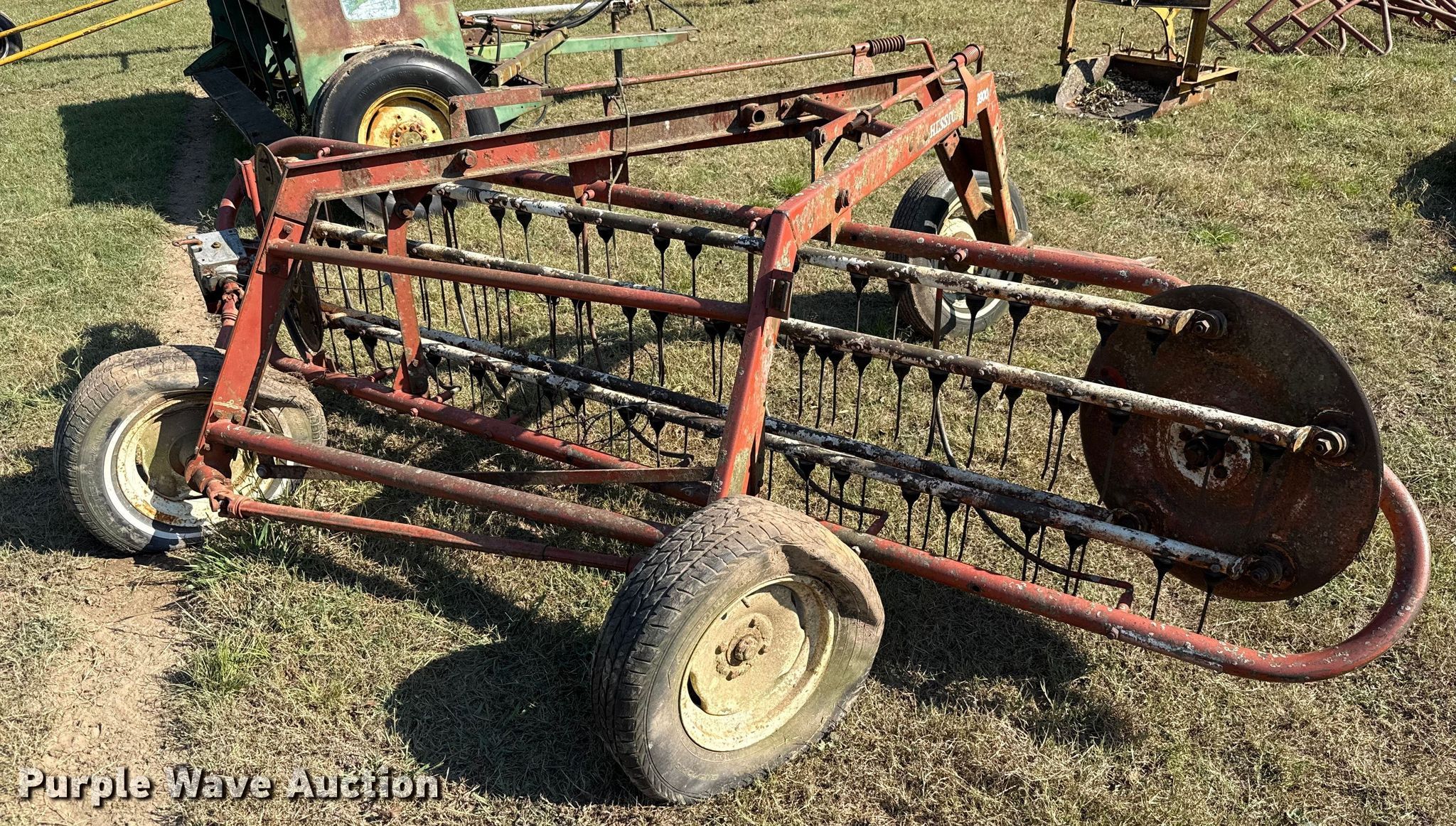 Purple Wave is selling a used Hay Rake in Oklahoma. This item is a Hesston 3900 hay rake with the following: Width: 11', Ground driven