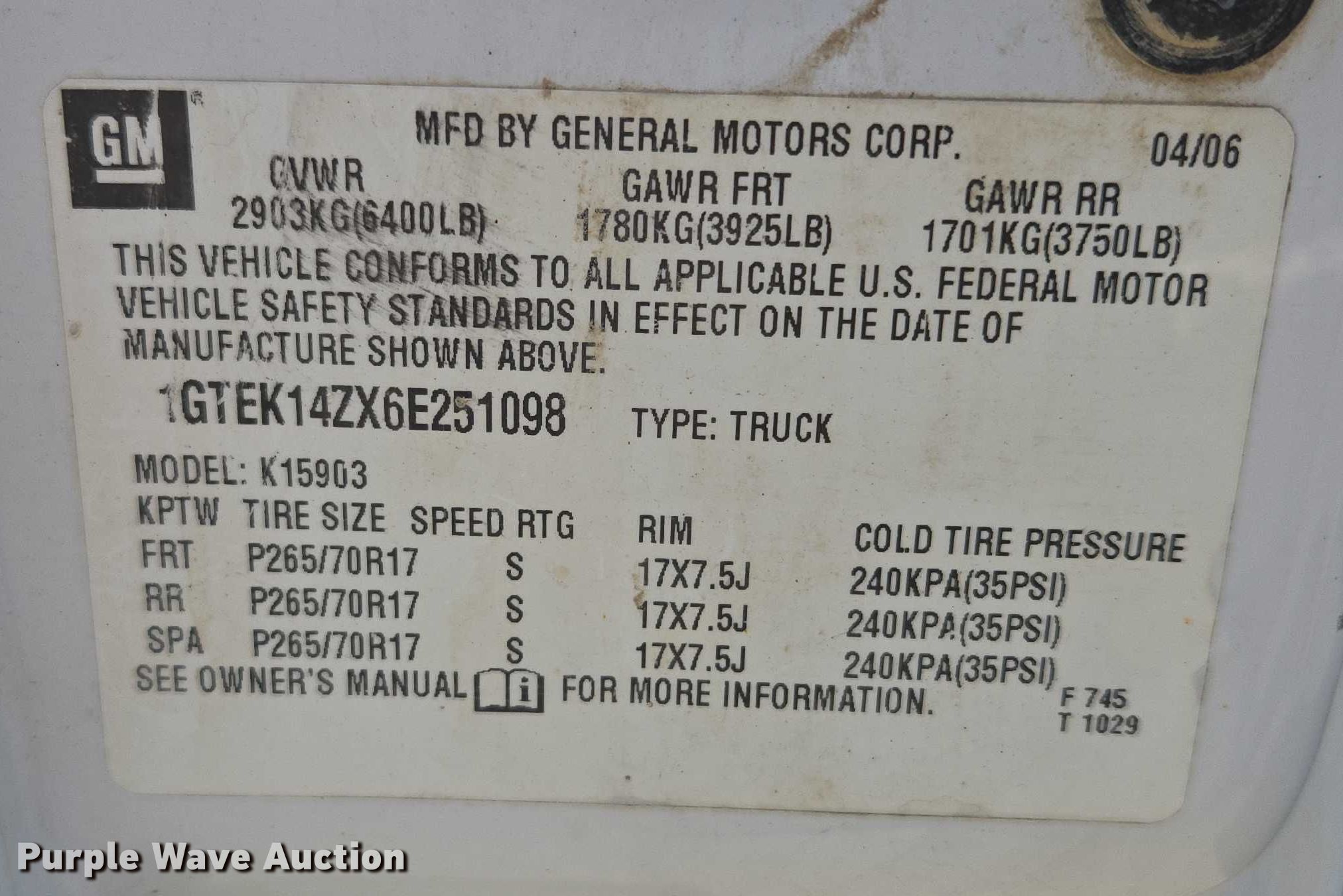 - VIN: 1GTEK14ZX6E251098