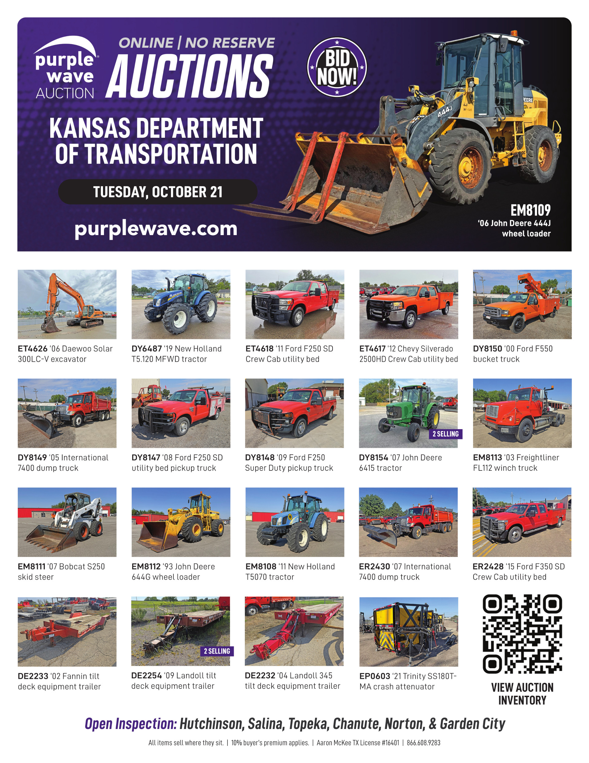 Tuesday October 21 Kansas Department of Transportation Auction