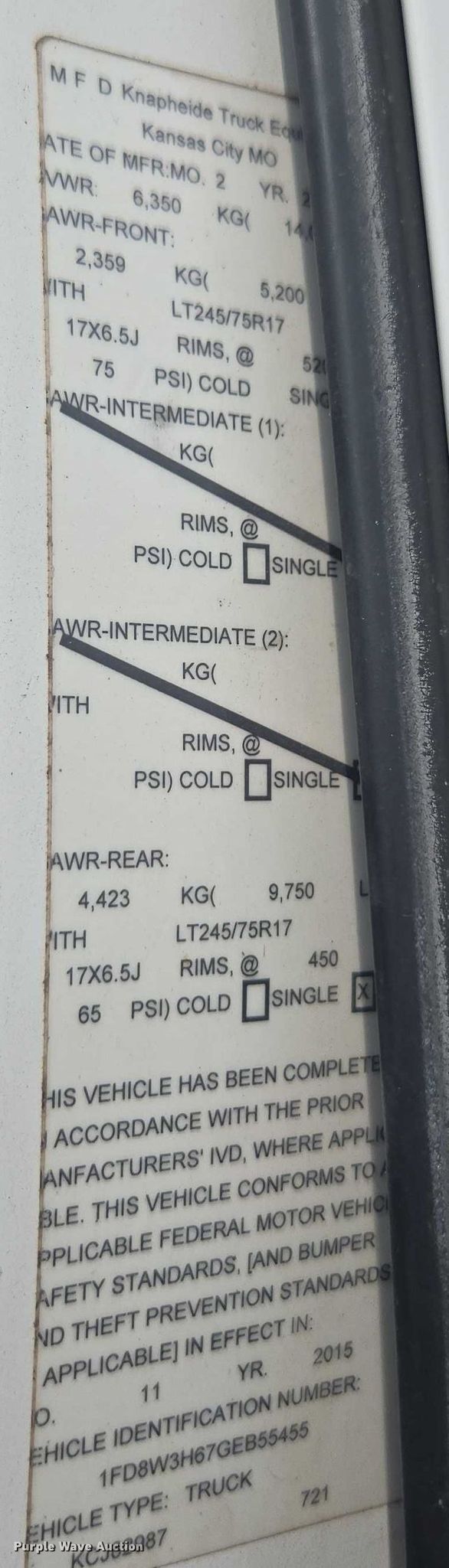 - VIN: 1FD8W3H67GEB55455
