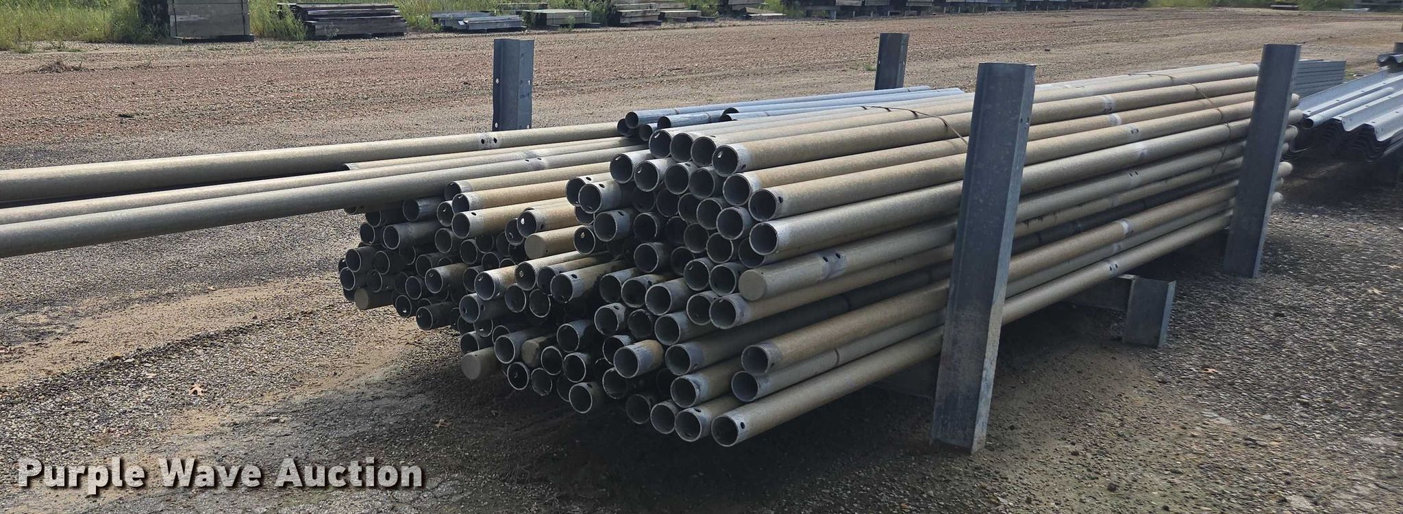 Purple Wave is selling a used Building Materials in Kansas. This item is a Aluminum bridge railing with the following: KDOT ID: 10496, Length: 20', Total length: Approx. 3,000', Diameter: 3.5", (160) line brackets, (156) mounting bases