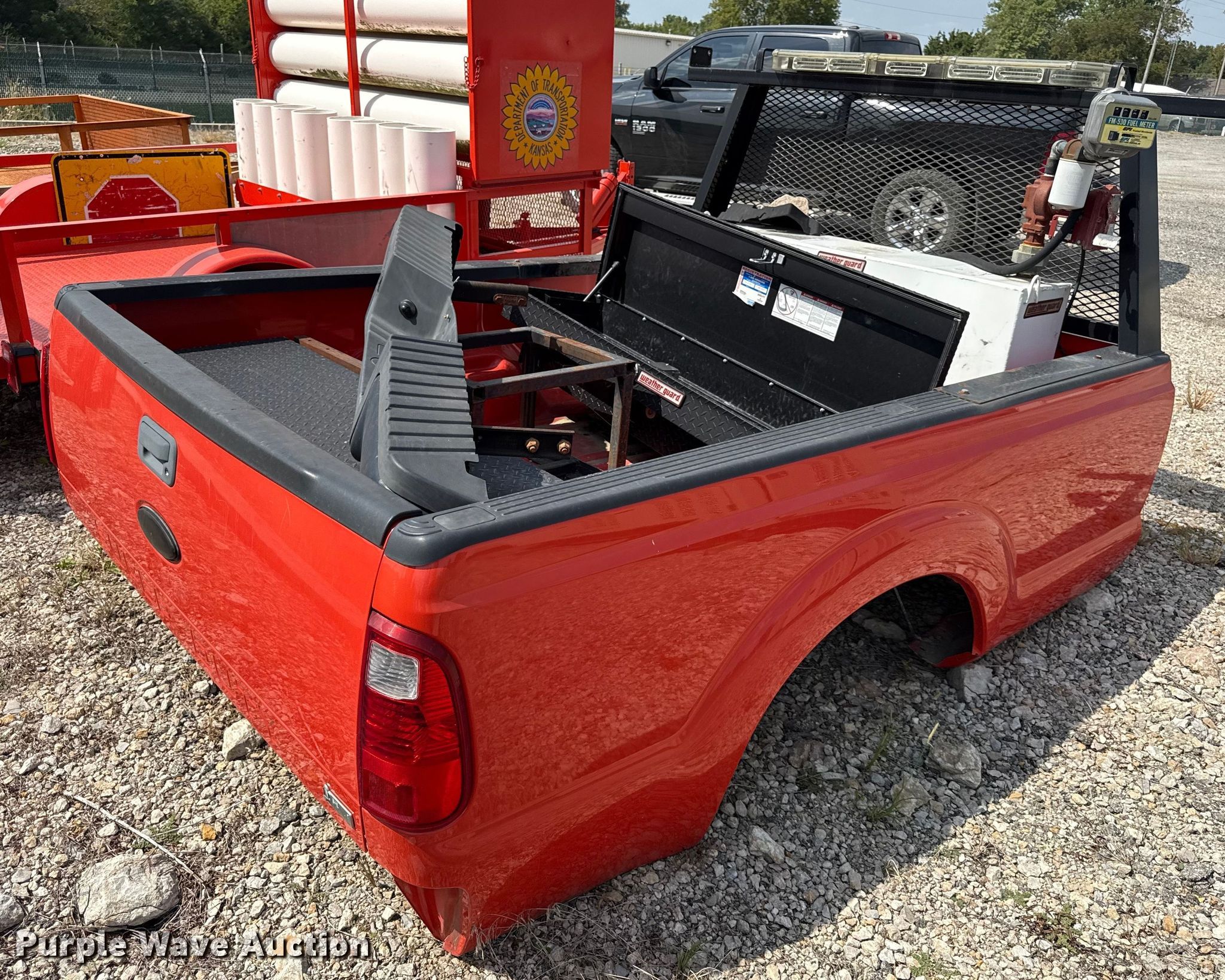 Purple Wave is selling a used Automotive Parts or Acces. in Kansas. This item is a Ford pickup truck bed with the following: KDOT ID: 40008, Auxiliary fuel tank, Pump