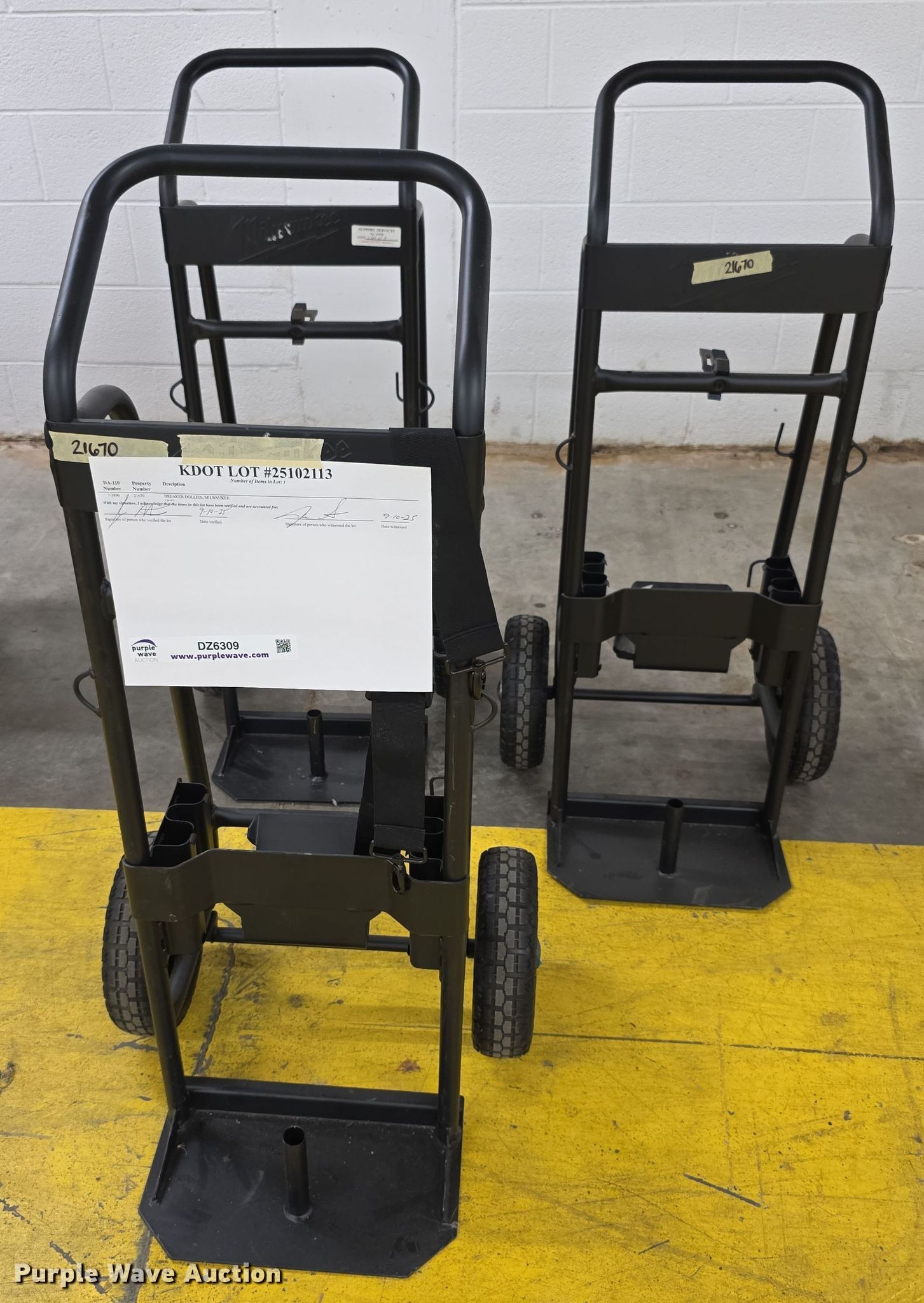 Purple Wave is selling a used Other Industrial or Business in Kansas. This item is a (3) dollies with the following: KDOT ID: 25102113