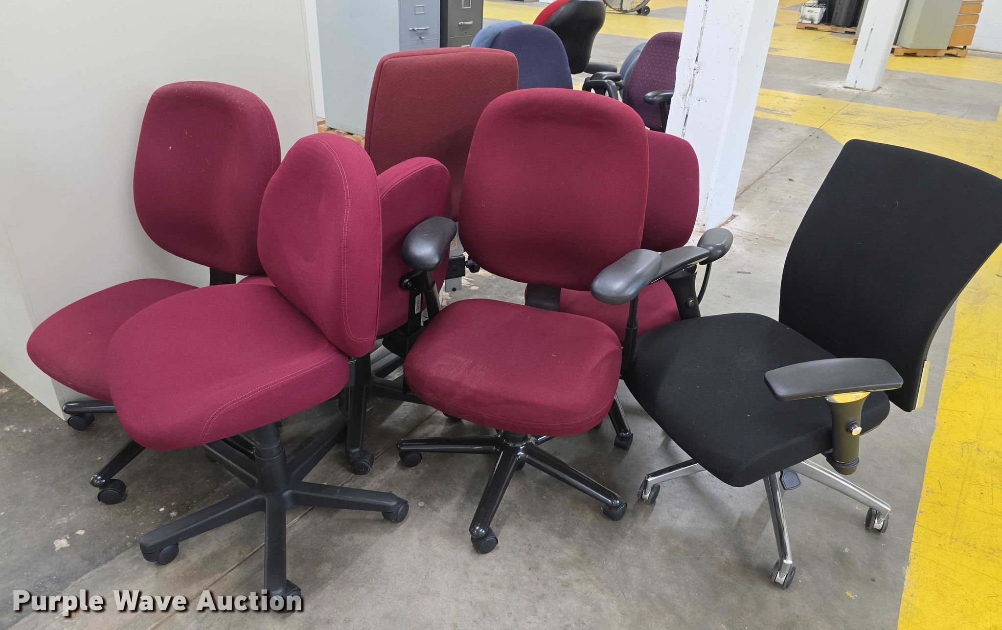 Purple Wave is selling a used Office Supplies and Equip. in Kansas. This item is a Office supplies with the following: (3) filing cabinets, (7) chairs, (7) laptops