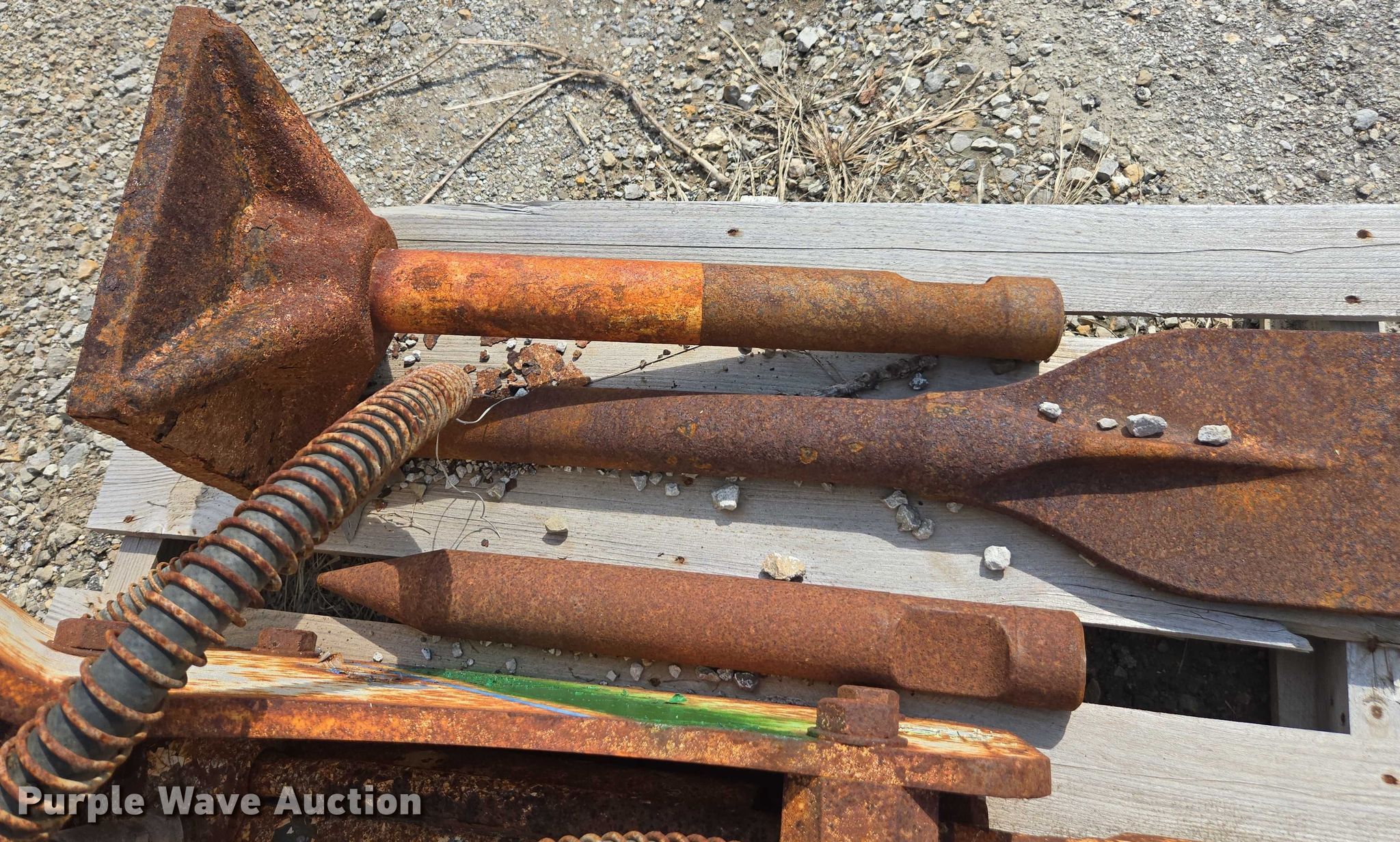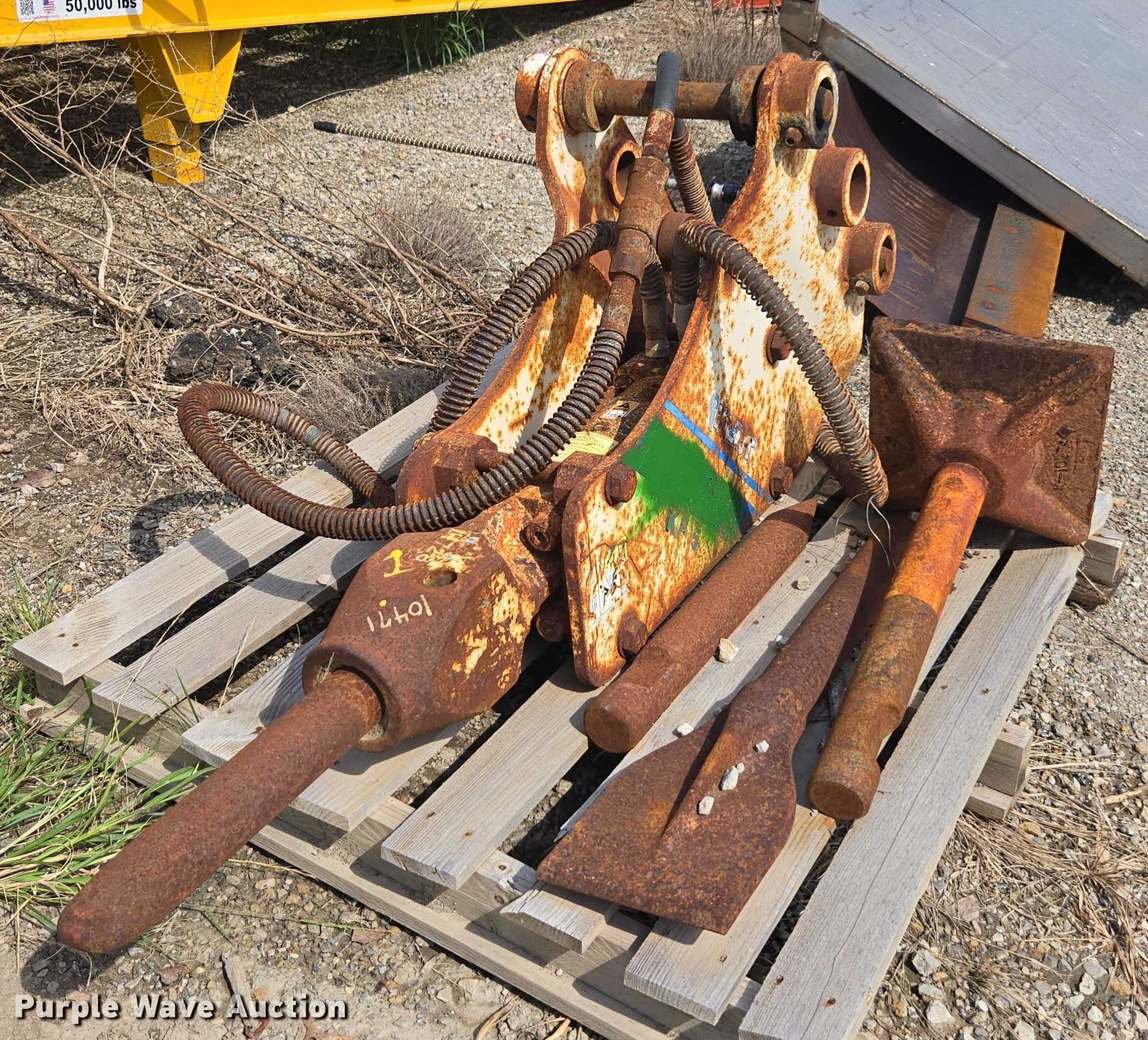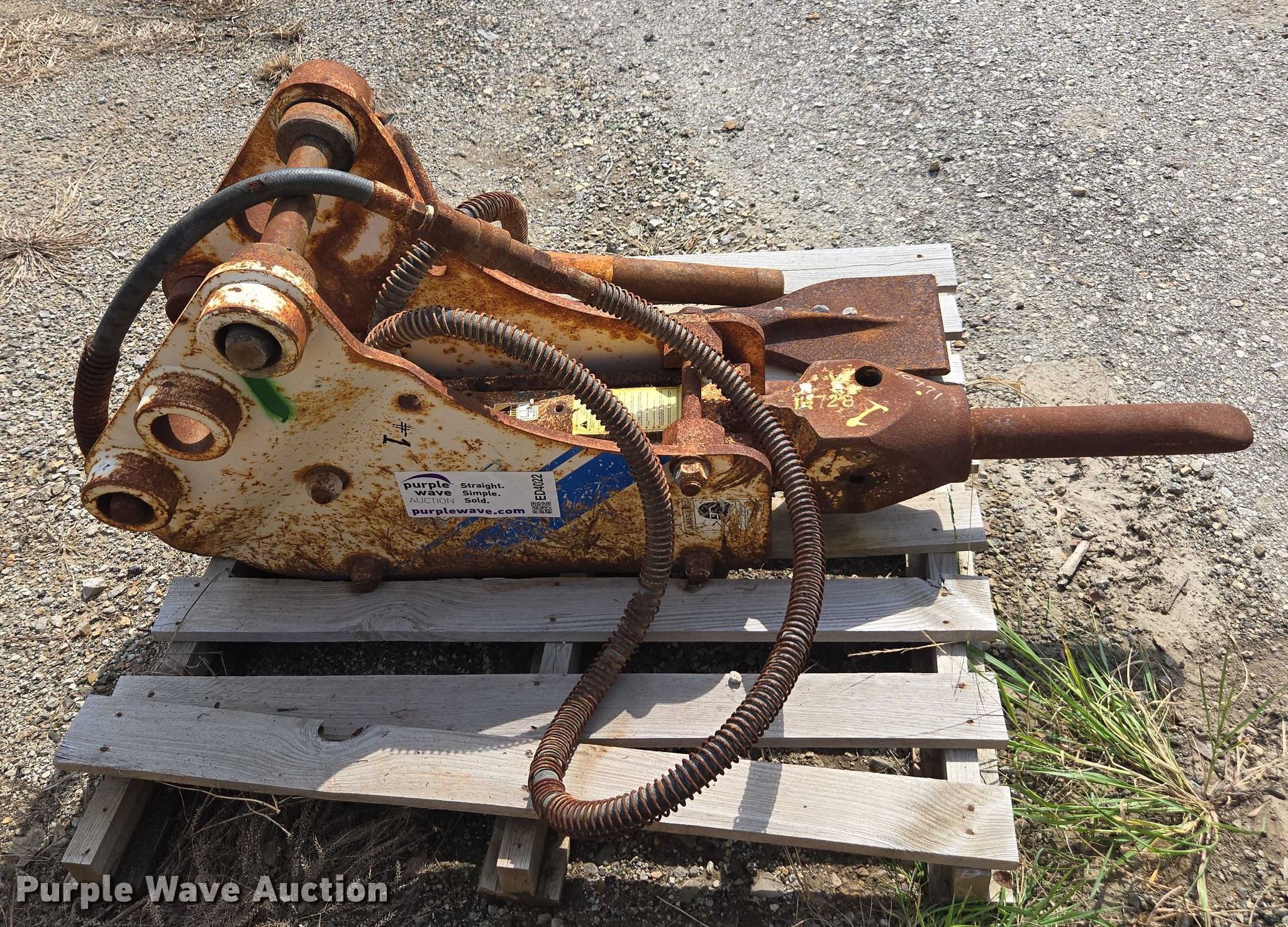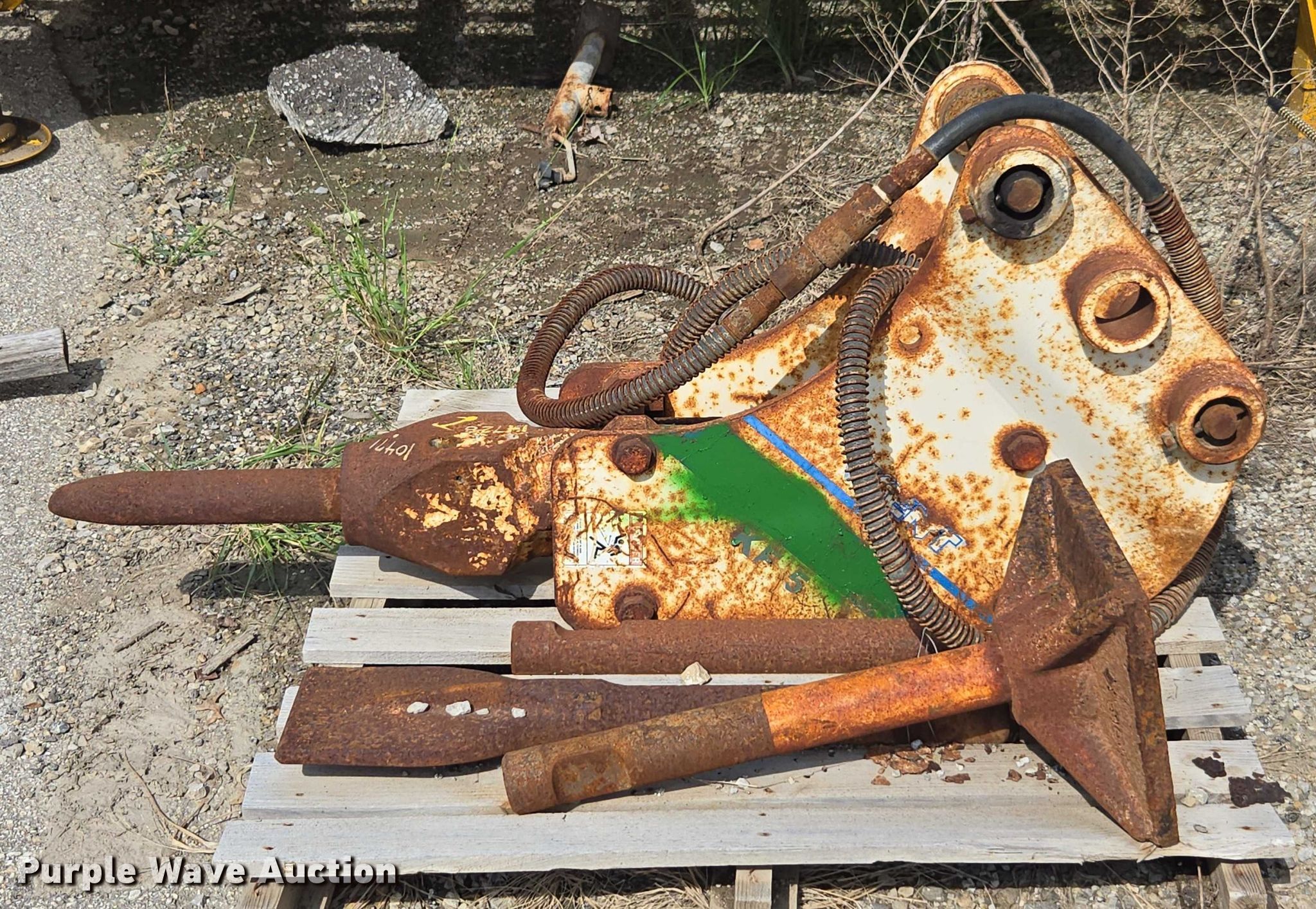 Purple Wave is selling a used Breaker or Hammer in Kansas. This item is a Kent KF5 breaker with the following: KDOT ID: 10471, (4) attachments, Fits John Deere 310G