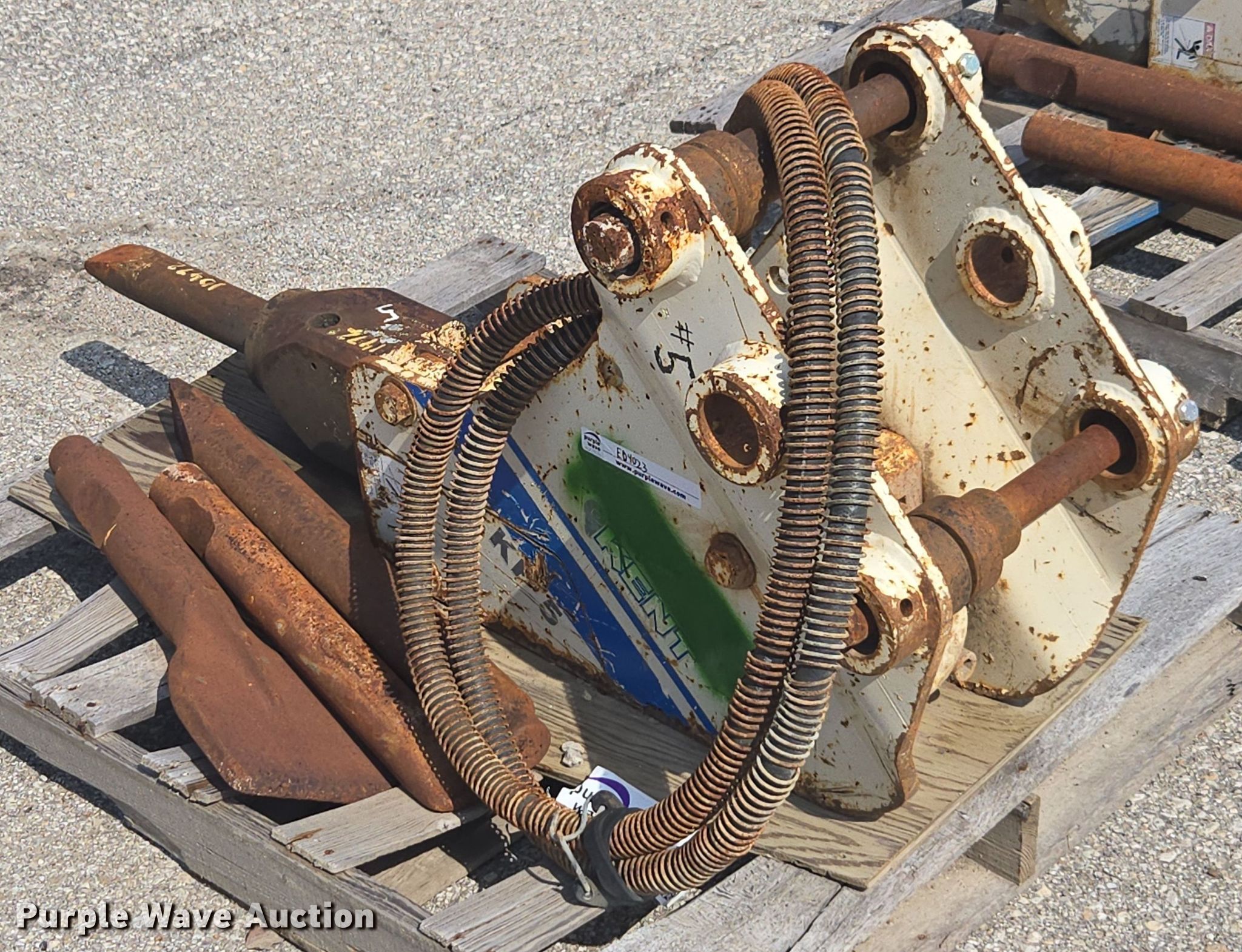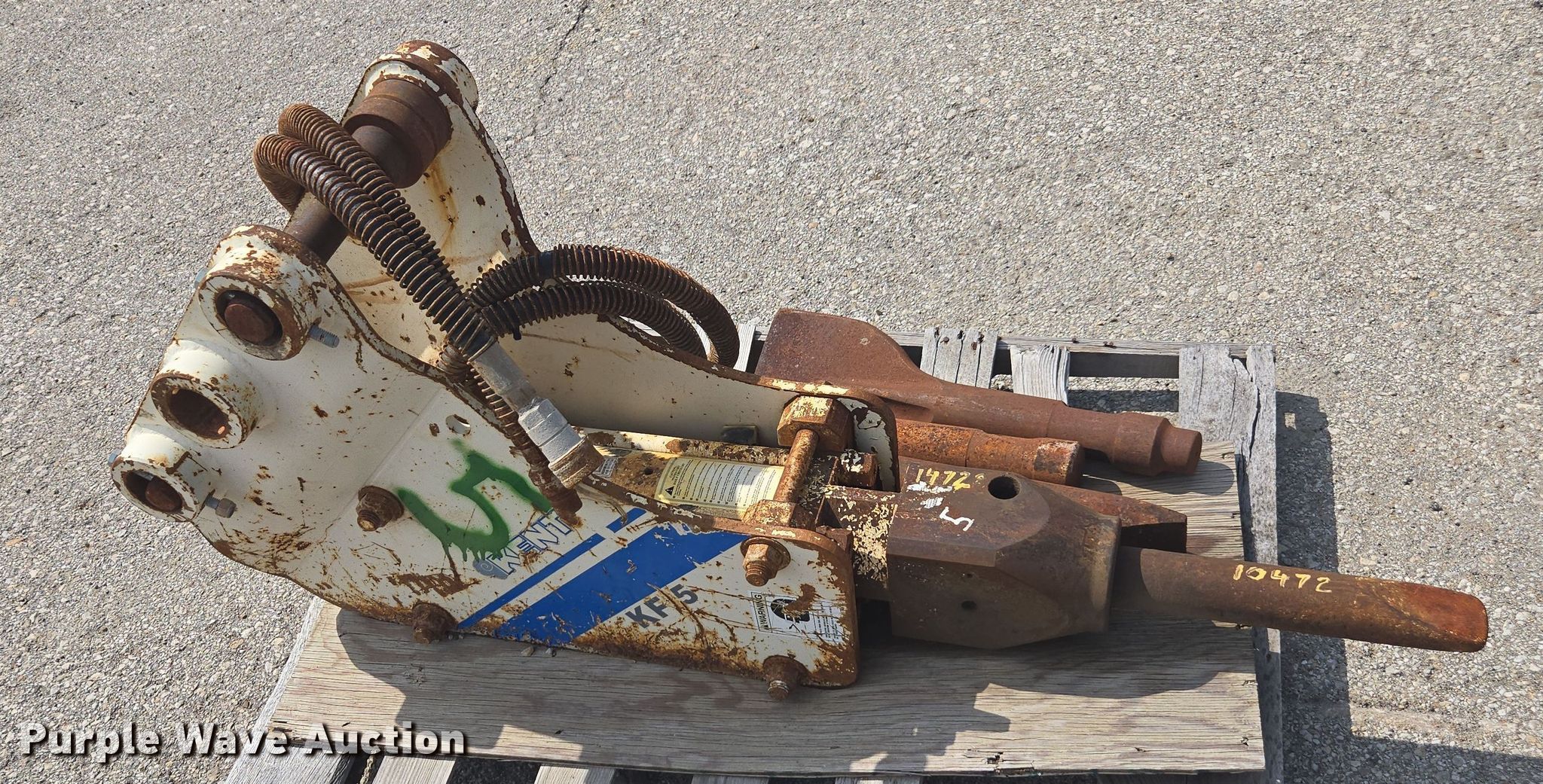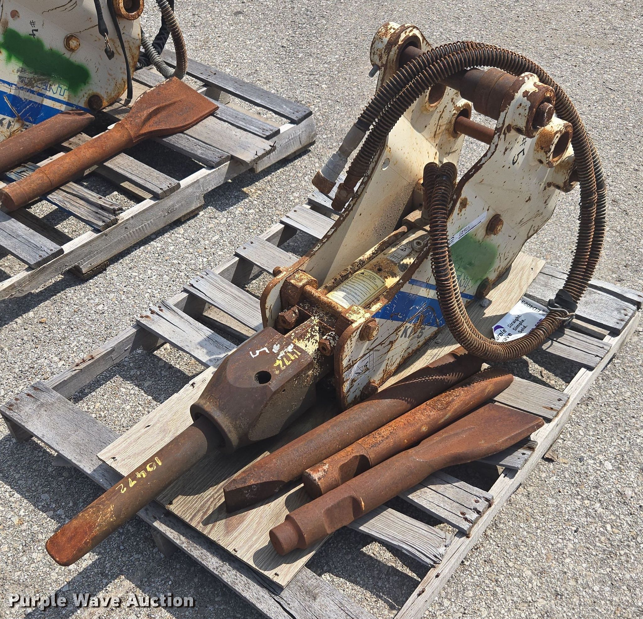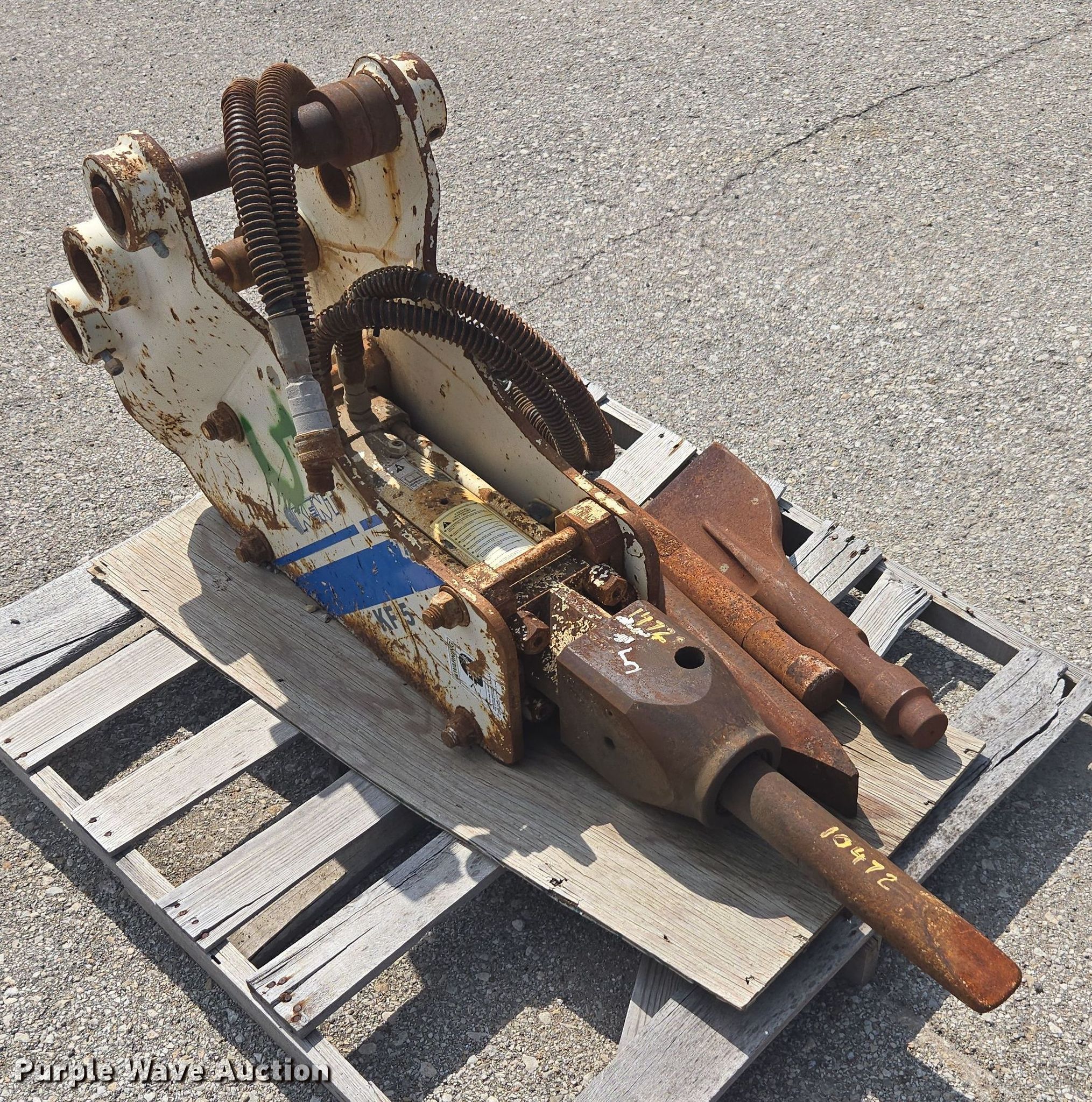 Purple Wave is selling a used Breaker or Hammer in Kansas. This item is a Kent KF5 breaker with the following: KDOT ID: 10472, (4) attachments, Removed from John Deere 310G