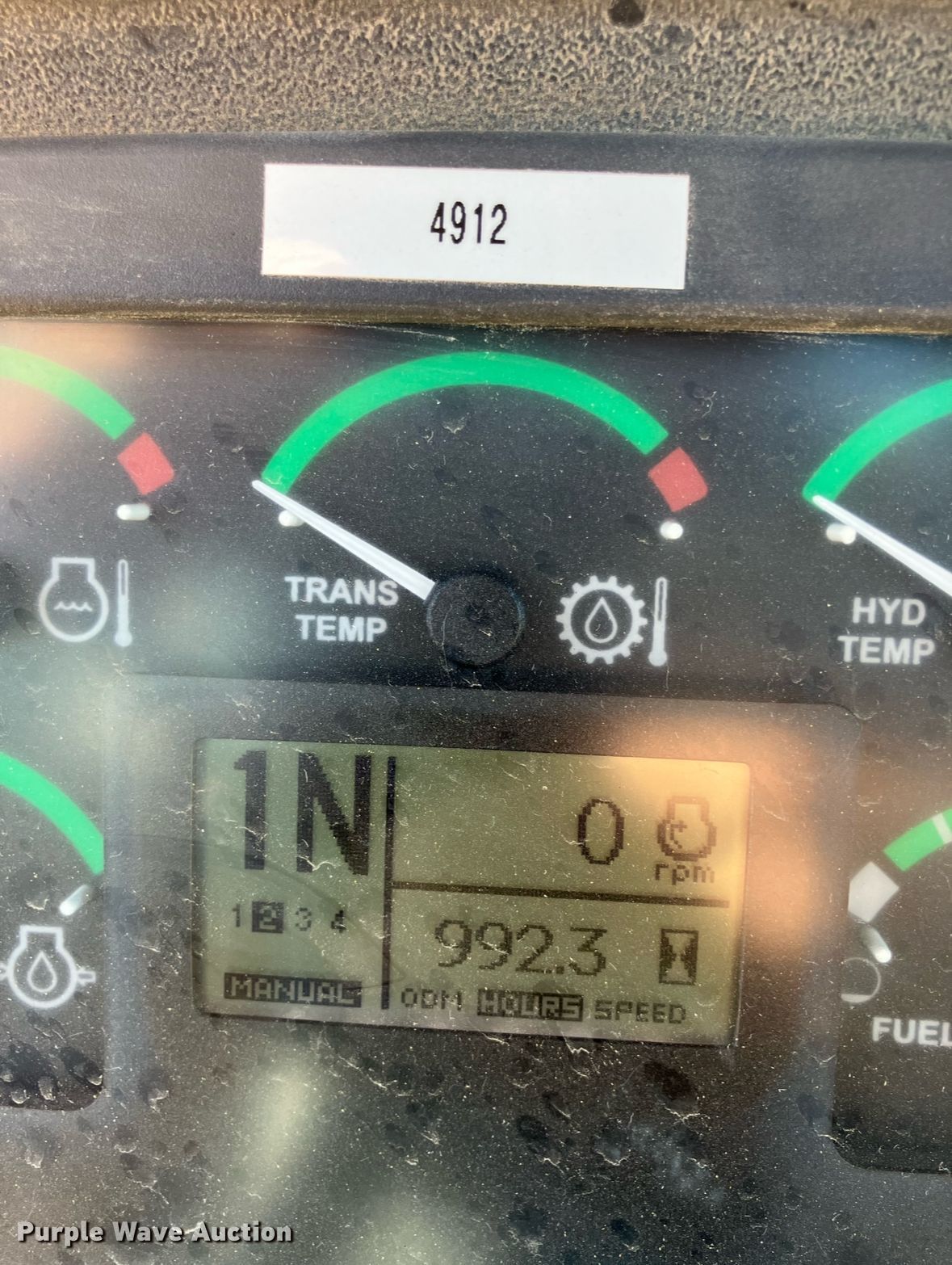 2006 John Deere 444J wheel loader. Hours: 992 on meter, Serial: DW444JZ608184, KDOT ID: 365-5046. Engine John Deere 4045HDW52, Serial: PE4045H600727, Displacement: 4.5L, Cylinders: 4, Fuel type: Diesel. Transmission Hydrostatic, 4F - 3R. Chassis Differential lock. Operators station Enclosed cab, AC, Heat, Bucket controls: Joystick, Ride control. Features Bucket JRB 444J, Capacity: 2 cu.yd., Width: 100", Four-in-one, Cutting edge: Bolt-on, Forks Length: 46". Tires Size: 17.5R25. Notes Possible AC issues, may need recharged, Low power, Hour meter replaced at 4,912 hours. Kansas Department of Transportation - Hutchinson. Hutchinson, KS 67501