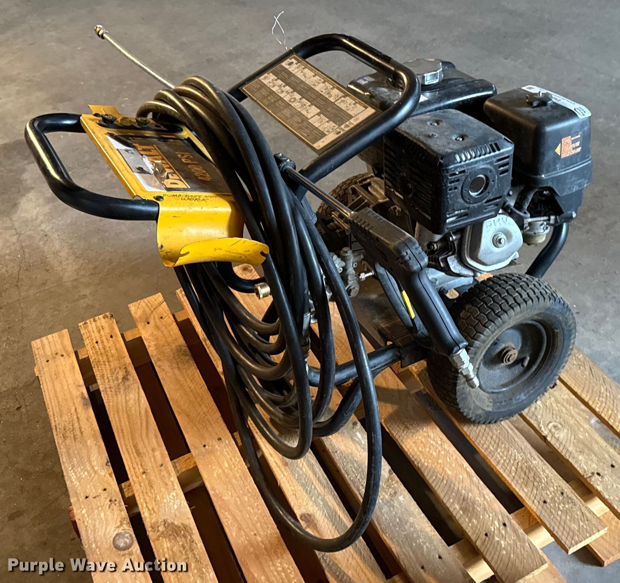 Purple Wave is selling a used Pressure Washer in Kansas. This item is a DeWalt DXPW4240 pressure washer with the following: Serial: 03181937545, KDOT ID: 50663