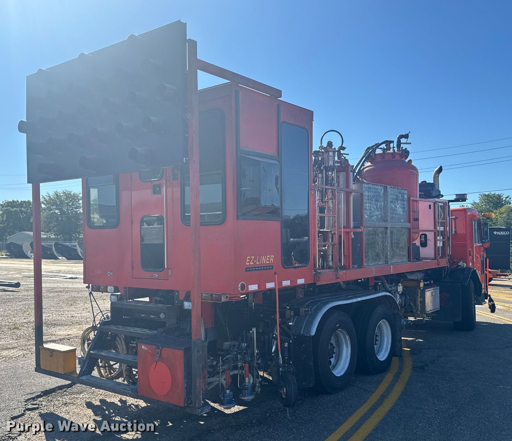 2005 Peterbilt 320 paint striper truck. Miles: 173,251 on odometer, VIN: 1NPZLD0X85D715961, KDOT ID: 446-3014. Engine Caterpillar C7, Displacement: 7.2L, Cylinders: 6, Fuel type: Diesel. Transmission Automatic. Chassis Four wheel drive, Suspension: Air, Brakes: Air, GVWR: 60,000 lbs. Interior AC, Heat, Heated mirrors, Cruise control. Features Bed Paint striper bed, Ez-Liner, Serial: 1E05105TS, Length: 16', Width: 96", (2) 500 gallon agitator tanks, (2) 4,000 lbs bead tanks, (2) Arrow low pressure pumps, (2) Arrow high pressure pumps, (4) Graco paint guns, (6) Potters Visiguns sphere dispensers, (2) heat exchangers, 30 gallon solvent tank, Boss 210 air compressor, Rear operators station Dimensions: 5' x 96", Arrow board, DL12 skipline logging, David Clark intercom system. Tires Front: 425/65R22.5, Rear: 11R22.52. Notes Engine oil leak at main seal and valve covers. Titles will be distributed after confirmation of payment and removal. Kansas title. Title distribution may be delayed up to 30 days from verification of funds. Kansas Department of Transportation - Norton. Norton, KS 67654
